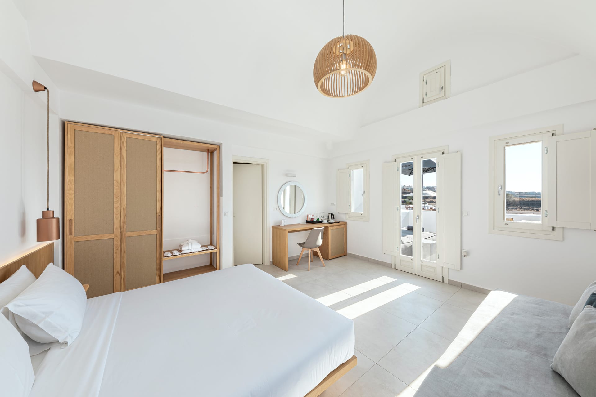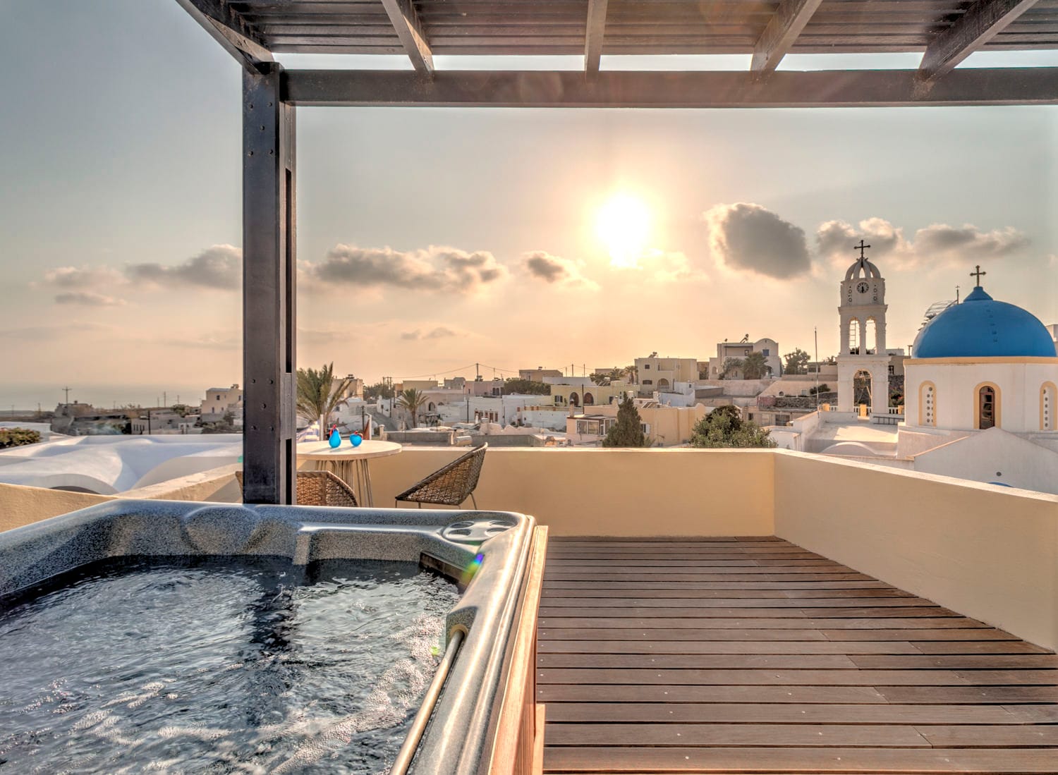 Many do — especially in Oia, Fira, and Imerovigli. Others offer peaceful countryside settings.