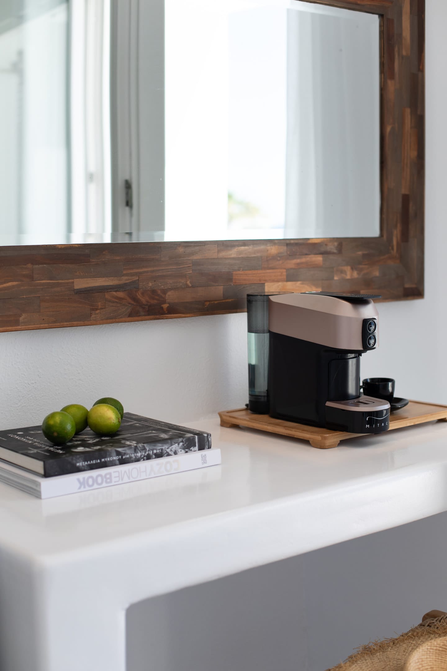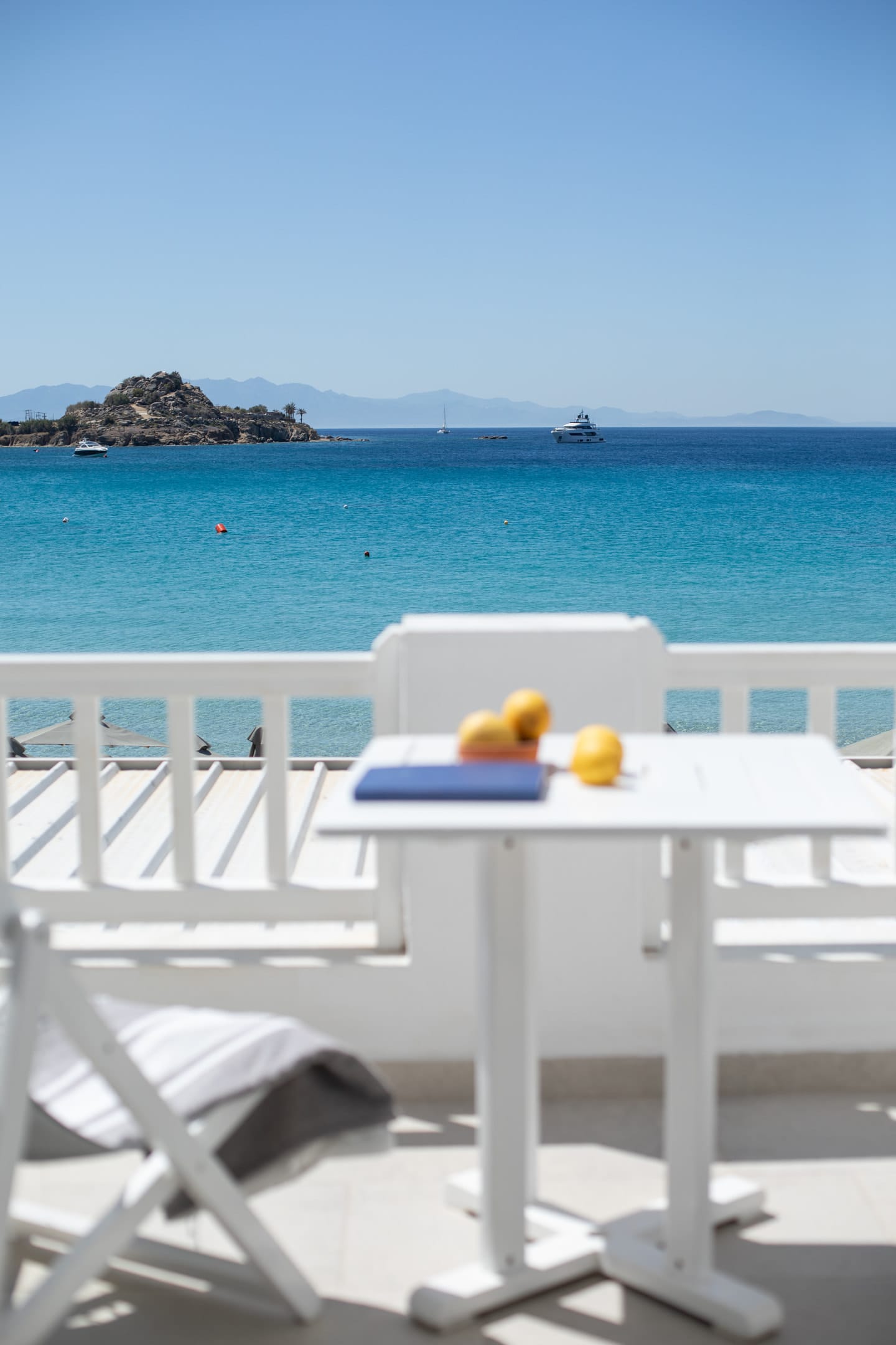 Elegantly decorated and fully renovated 2018 , featuring a king-size bed, a bathroom with all the amenities and a rainfall-shower ,individually air-conditioning (hot & cold),safety box, free Wi fi access,hairdryer,iron board and iron, satellite radio, 32" satellite TV, refrigerator and private balcony with direct views of the Aegean Sea. Ideal for two people.located at the first floor.