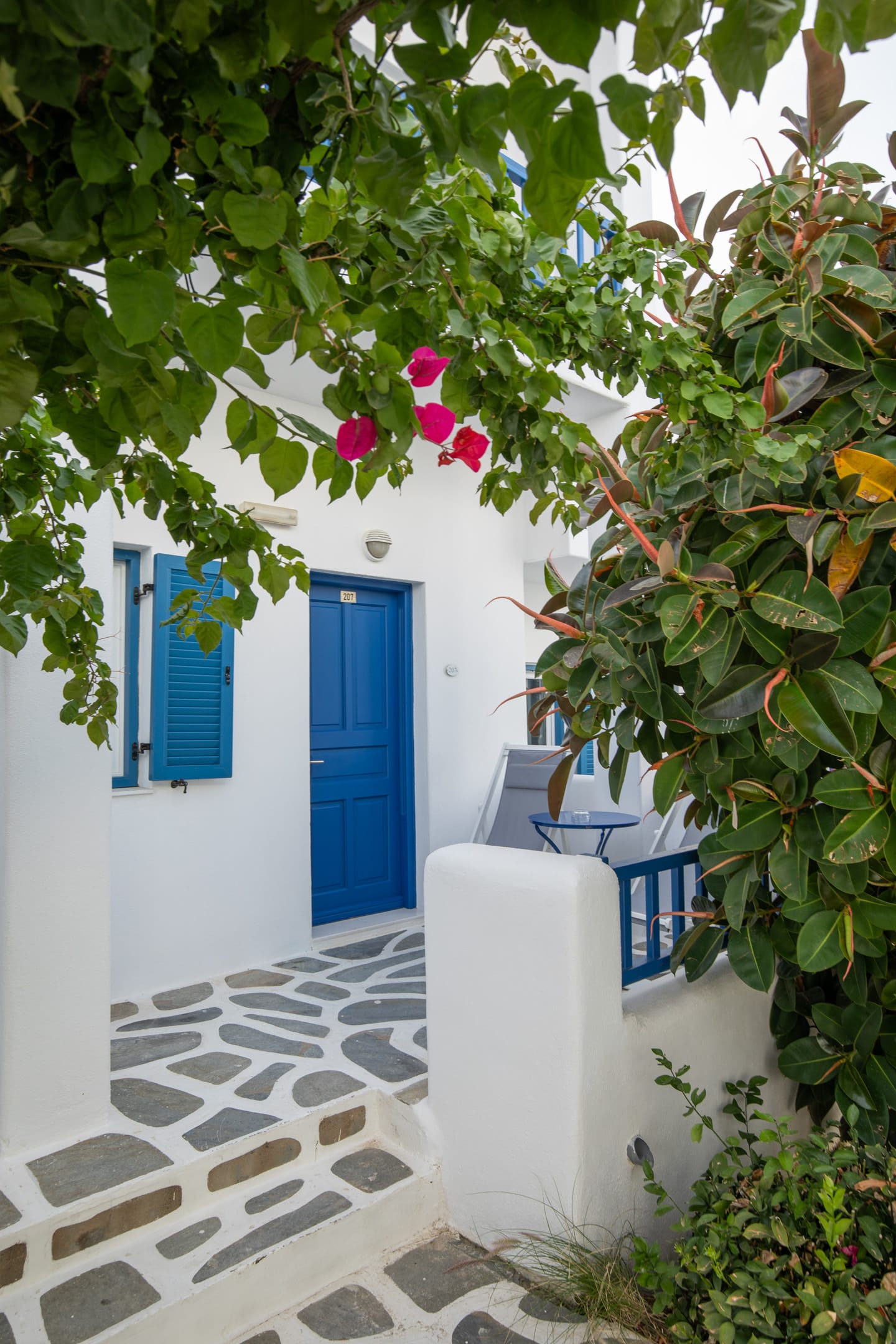 Elegantly decorated and fully renovated 2018, featuring a king-size and a single bed or 3 single beds,individually run air-conditioning ,safety box, free Wi fi access,hairdryer,iron board and iron, satellite radio, 32" satellite TV, refrigerator and private balcony / terrace with garden view . Ideal for three people.