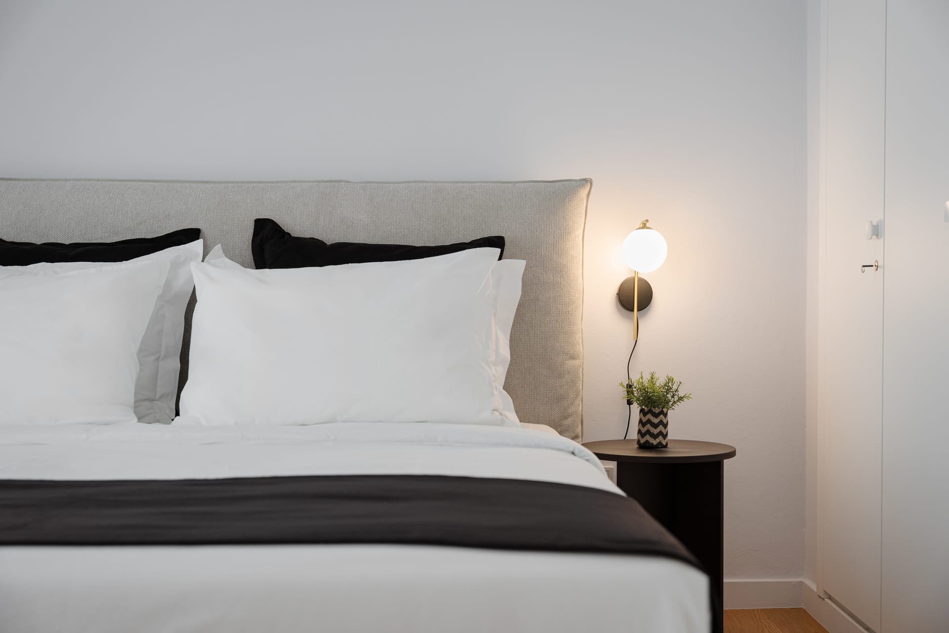 The interior features a spacious and inviting living room, tastefully furnished to create a warm and relaxing ambiance. The apartment includes two thoughtfully designed bedrooms: one with a comfortable queen-size bed and the other with a luxurious king-size bed, both providing a restful sanctuary after a day of exploring the city.