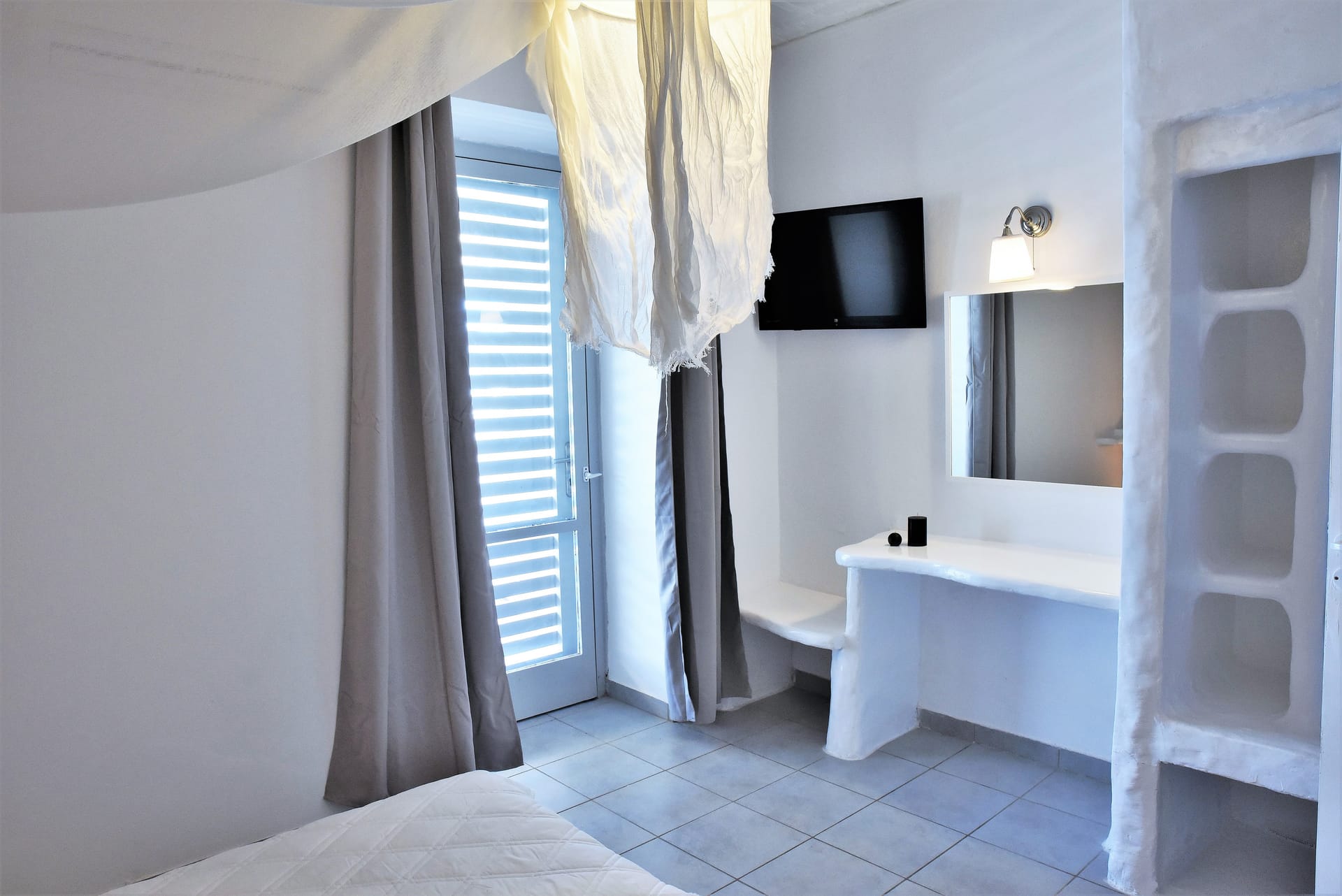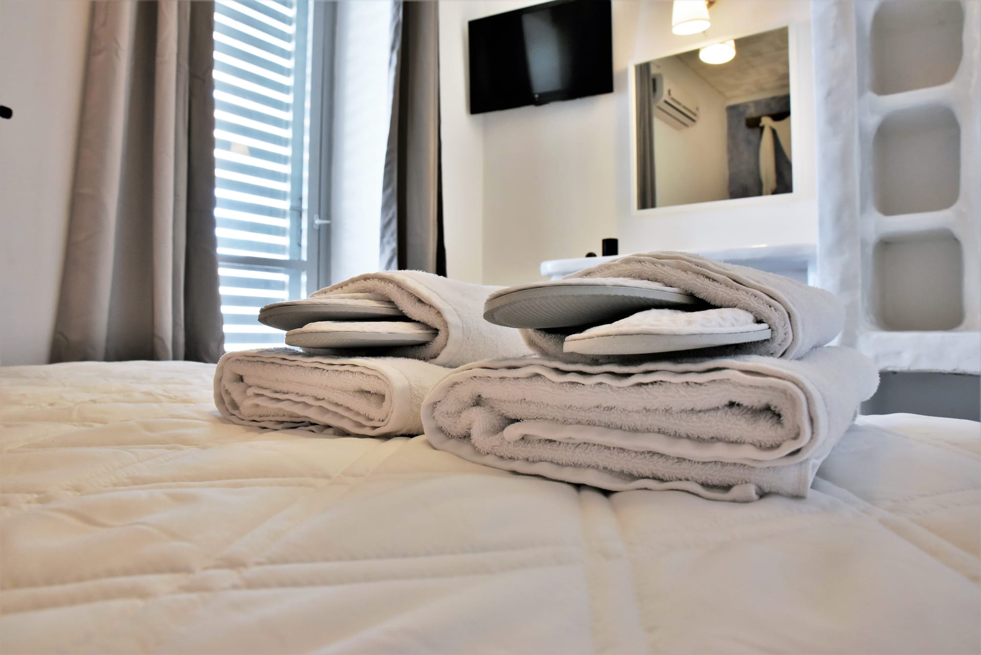 Balcony or Veranda with sea view, Air Conditioning, Refrigerator, Flat Screen TV, Brand name anatomic mattresses, Sofa, Bath cosmetics, Hairdryer