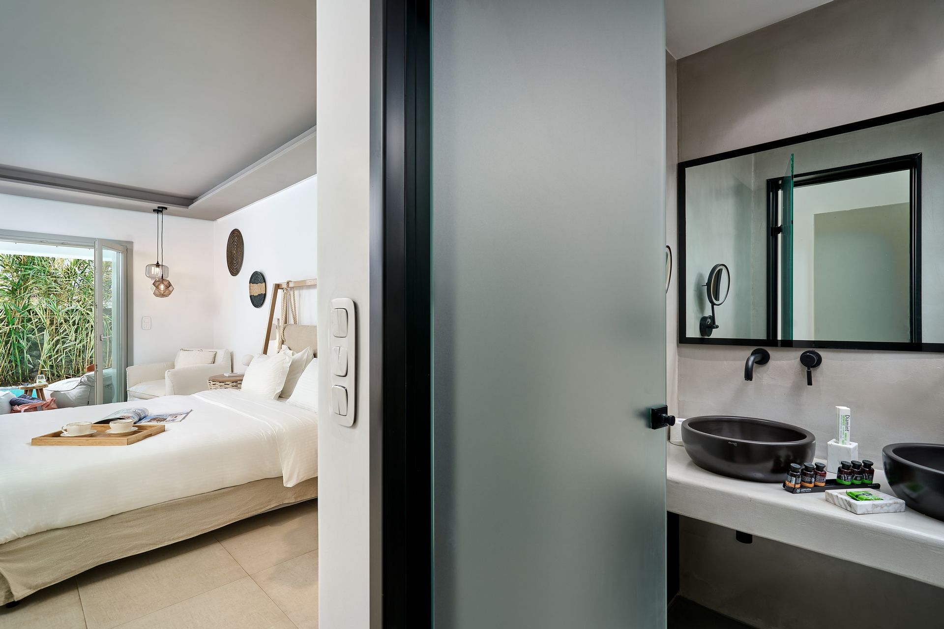 With boho-chic décor and an elegant Cycladic touch, guests are treated to luxury accommodation paired with all modern comforts. Room amenities include 2 desks, 2 mini bars, 2 satellite TVs, sitting areas, free Wi-Fi, bathrobes and slippers and luxury toiletries by Apivita. On the large veranda, the guests can enjoy swimming in their private pool and relaxing on their very own sun beds.