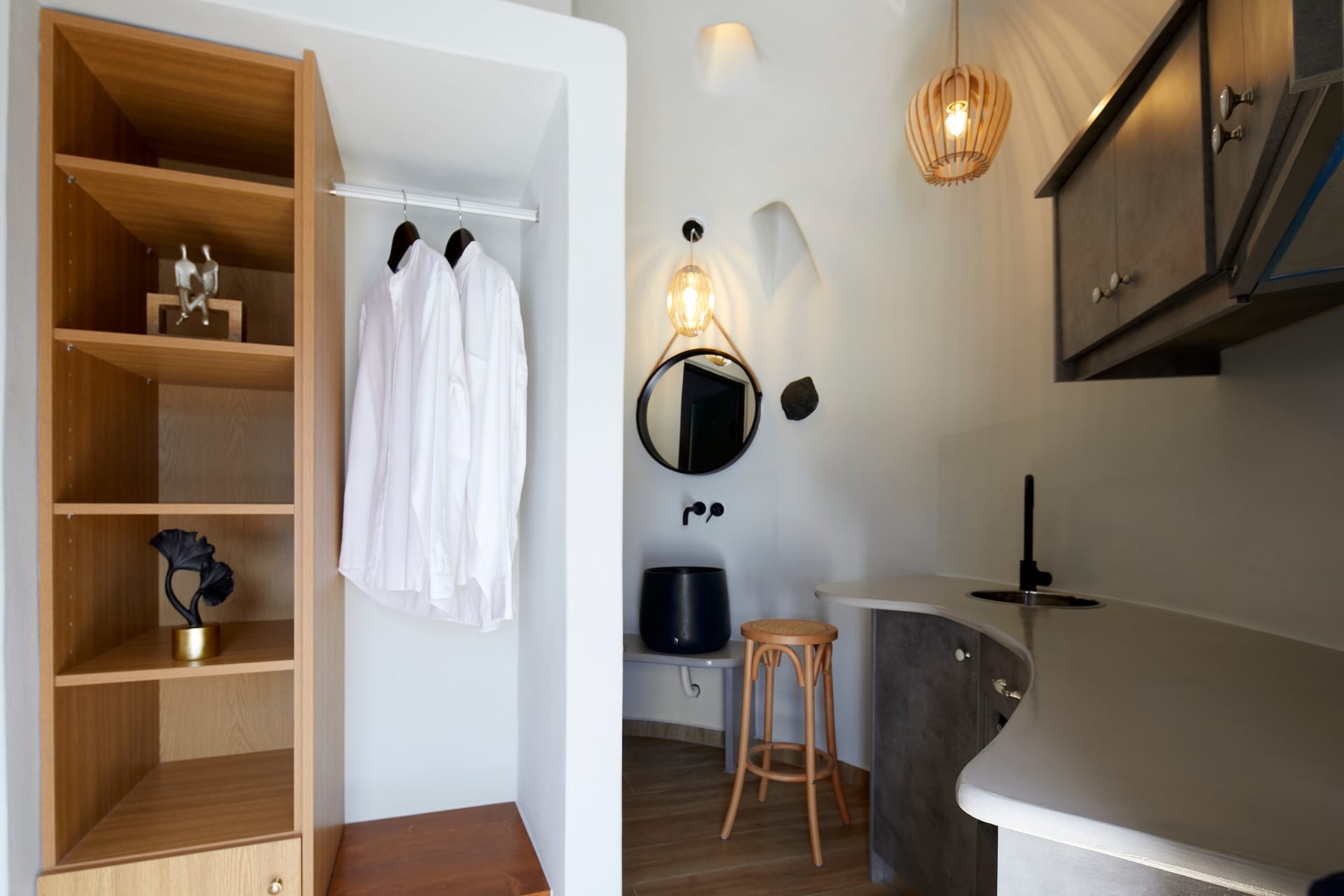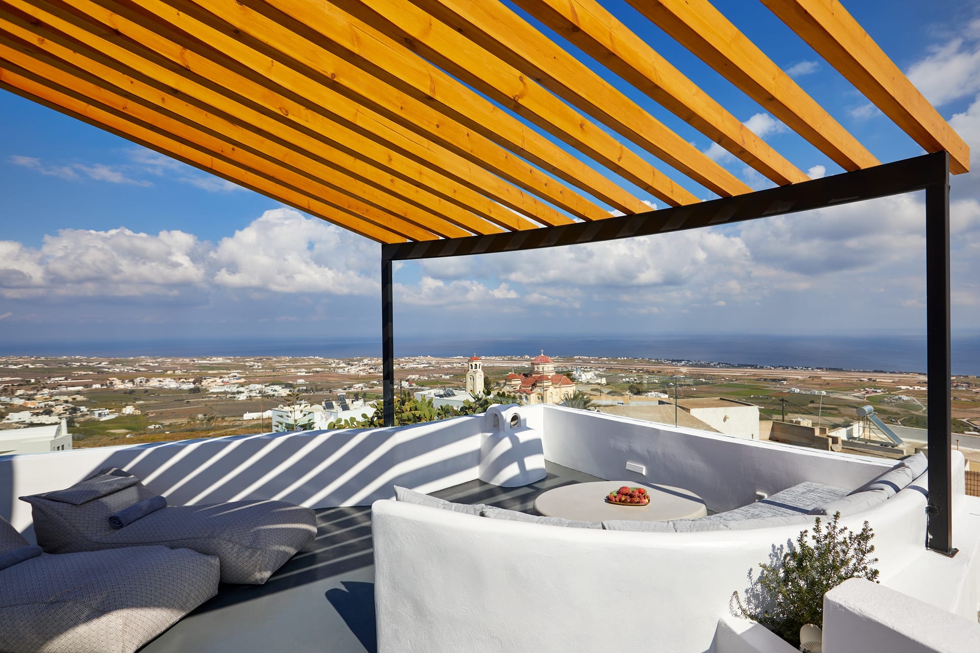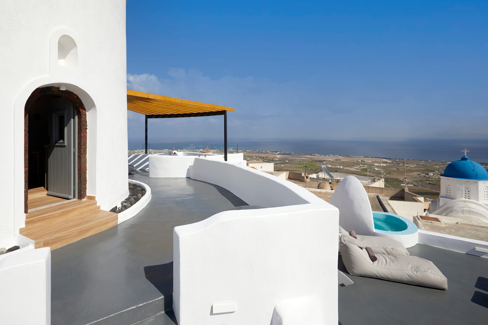 Chill out in the outdoor seating area and plan your next expedition to discover the island. Admire a panoramic view to the azure waters of the Aegean Sea while drinking your morning coffee at your balcony or relish a nice meal with a view to the picturesque surrounding villages. The suite has a private heated jetted tub that will help you relax and rejuvenate your spirit.