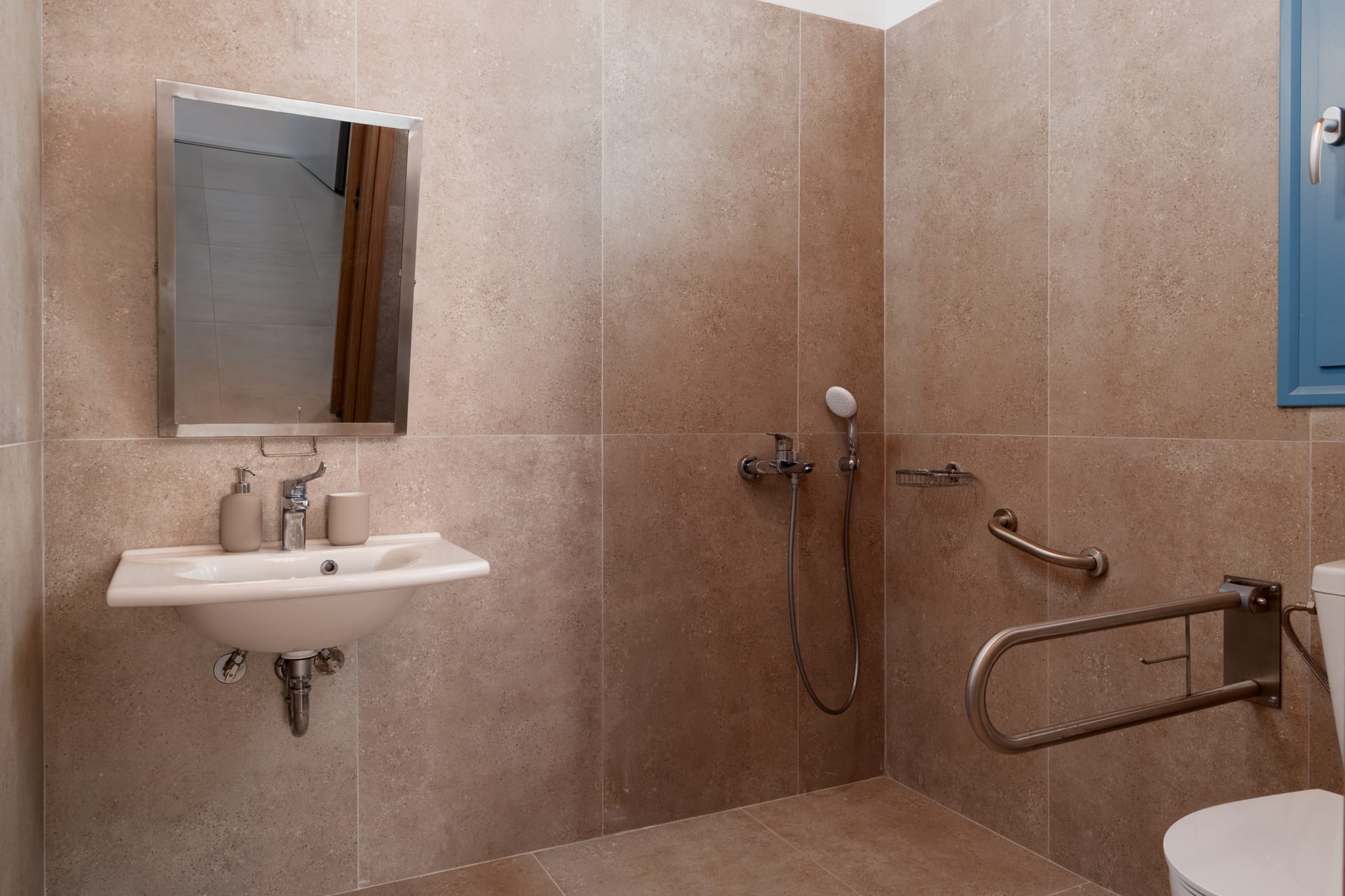 The bathroom is fully equipped (designed for people with disabilities) with all necessities.