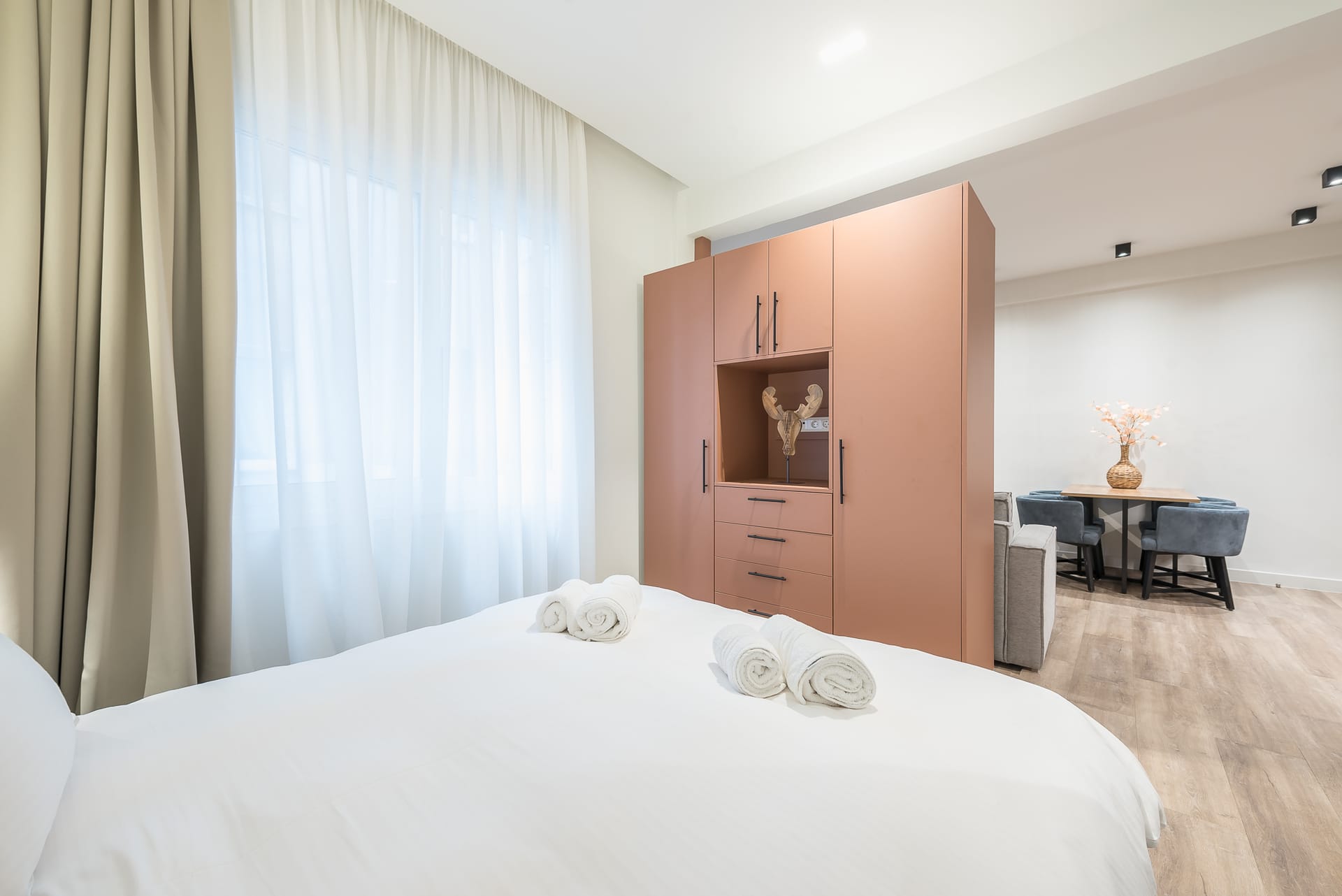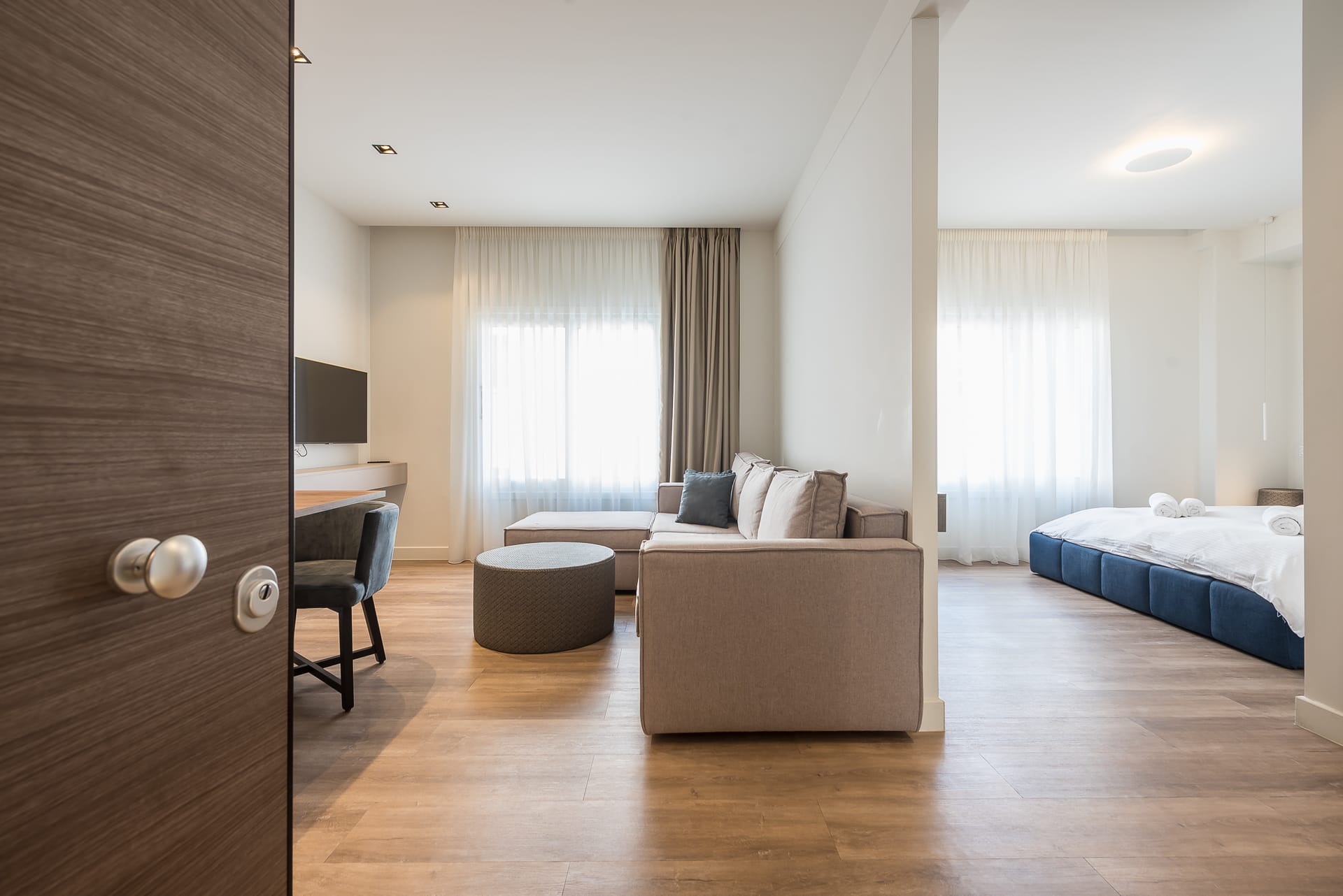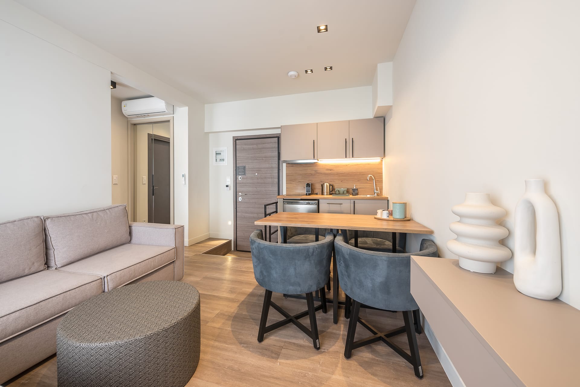 Embark on a journey of indulgence within our Deluxe Suite, a sanctuary of style and refinement nestled in the heart of Sofokleous street. The regal king-size bed, adorned with sumptuous linens, promises nights of unparalleled comfort and serenity. Entertain guests in the chic living area, where a plush sofa and state-of-the-art smart TV await. Delight your senses in the sleek bathroom, where a lavish rain shower and deluxe amenities beckon for moments of relaxation. With its unparalleled attention to detail and sophisticated ambiance, this suite sets the stage for an unforgettable stay in the heart of the city.