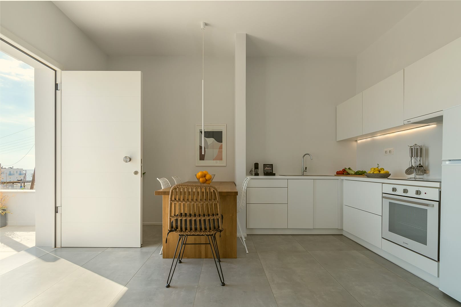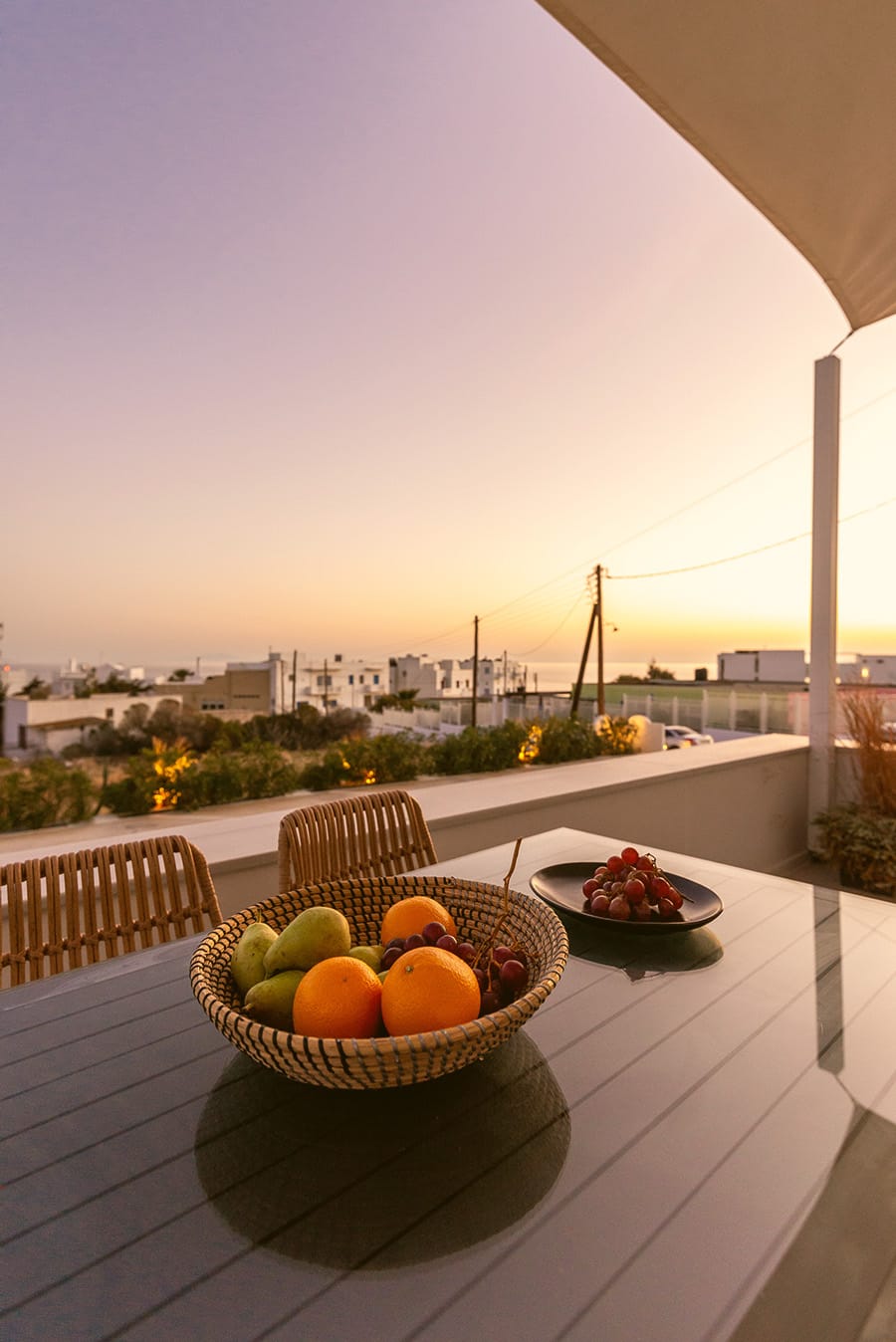 This unique suite decorated in a minimalist style has an ultra-modern kitchen and a modern living room, with a flat-screen satellite TV. The bedroom can be closed off from the living room, offering privacy and independence. The private bathroom with its spacious shower and complimentary personal care products will help you relax. Each room has its own air-conditioning controls. The view of the sunset from the balcony is spectacular.