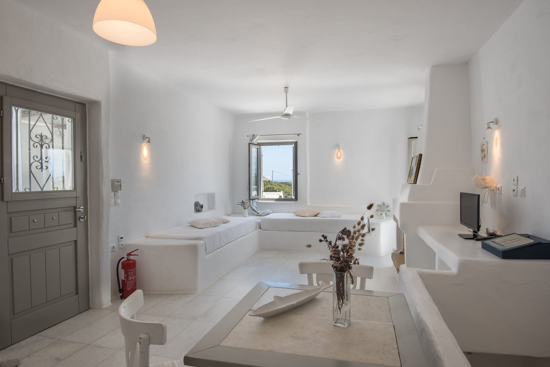 Residence with Sea View (90 m2) are designed for families & groups of friends. Developed in two levels, with big verandas and yards : a sitting room with a fireplace, kitchen and bathroom on upper level and two bedrooms with a bathroom on the lower level. Decorated in the same minimal style and colors.