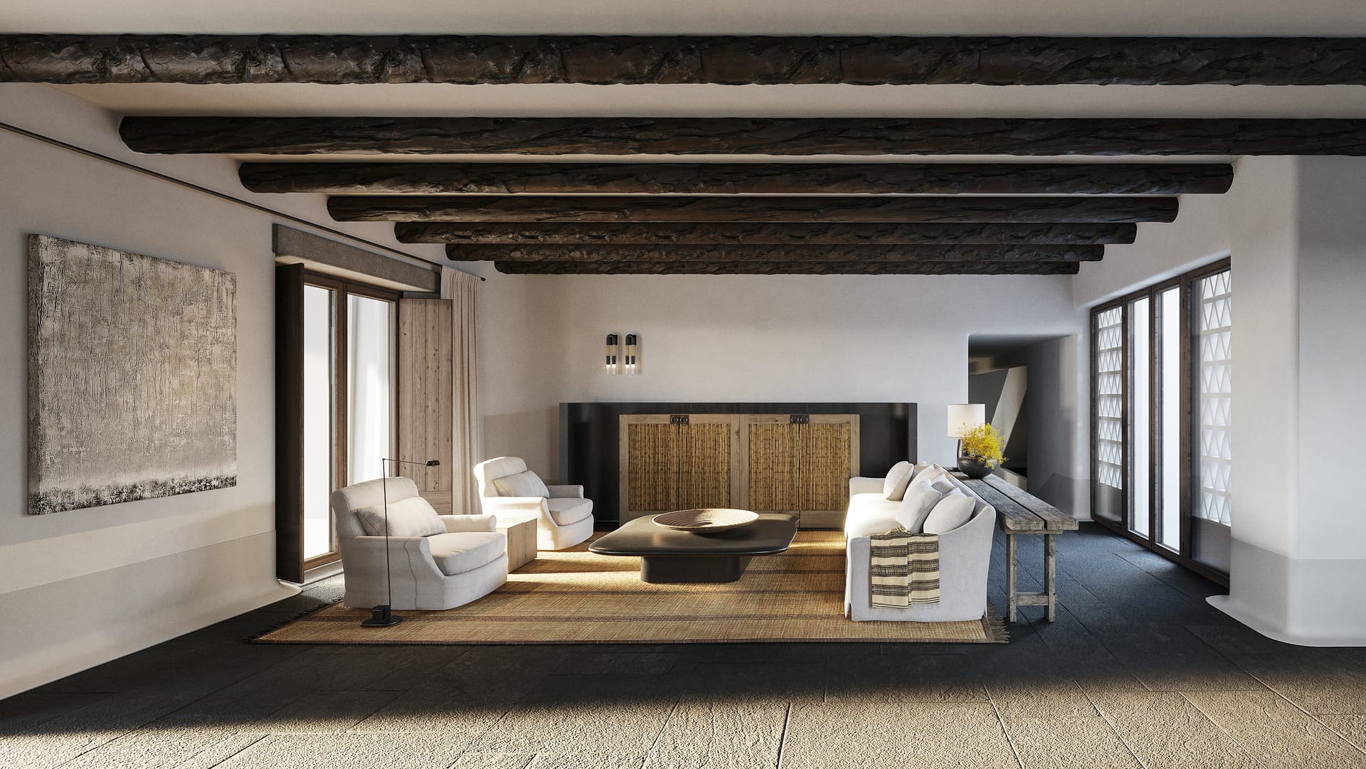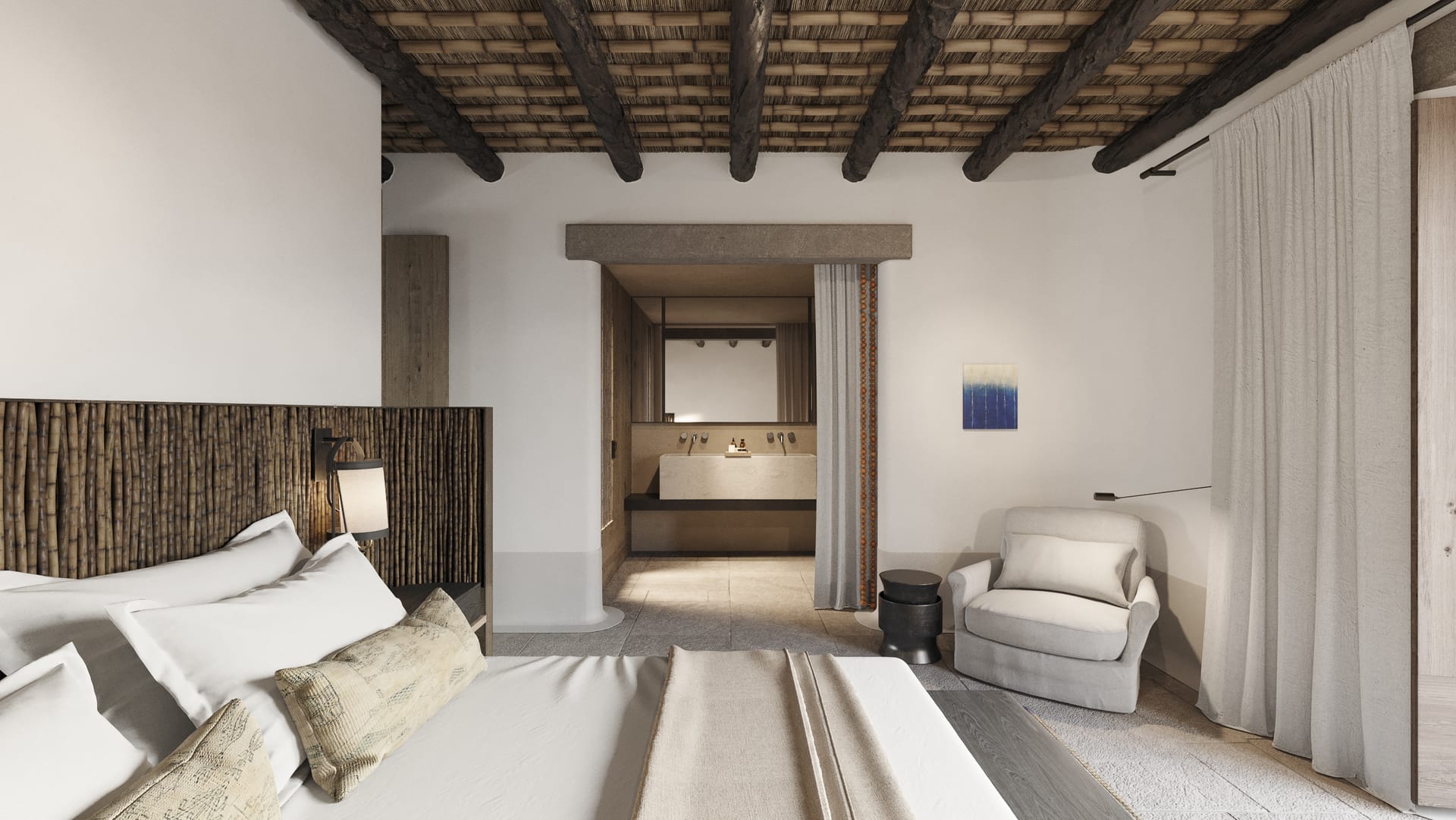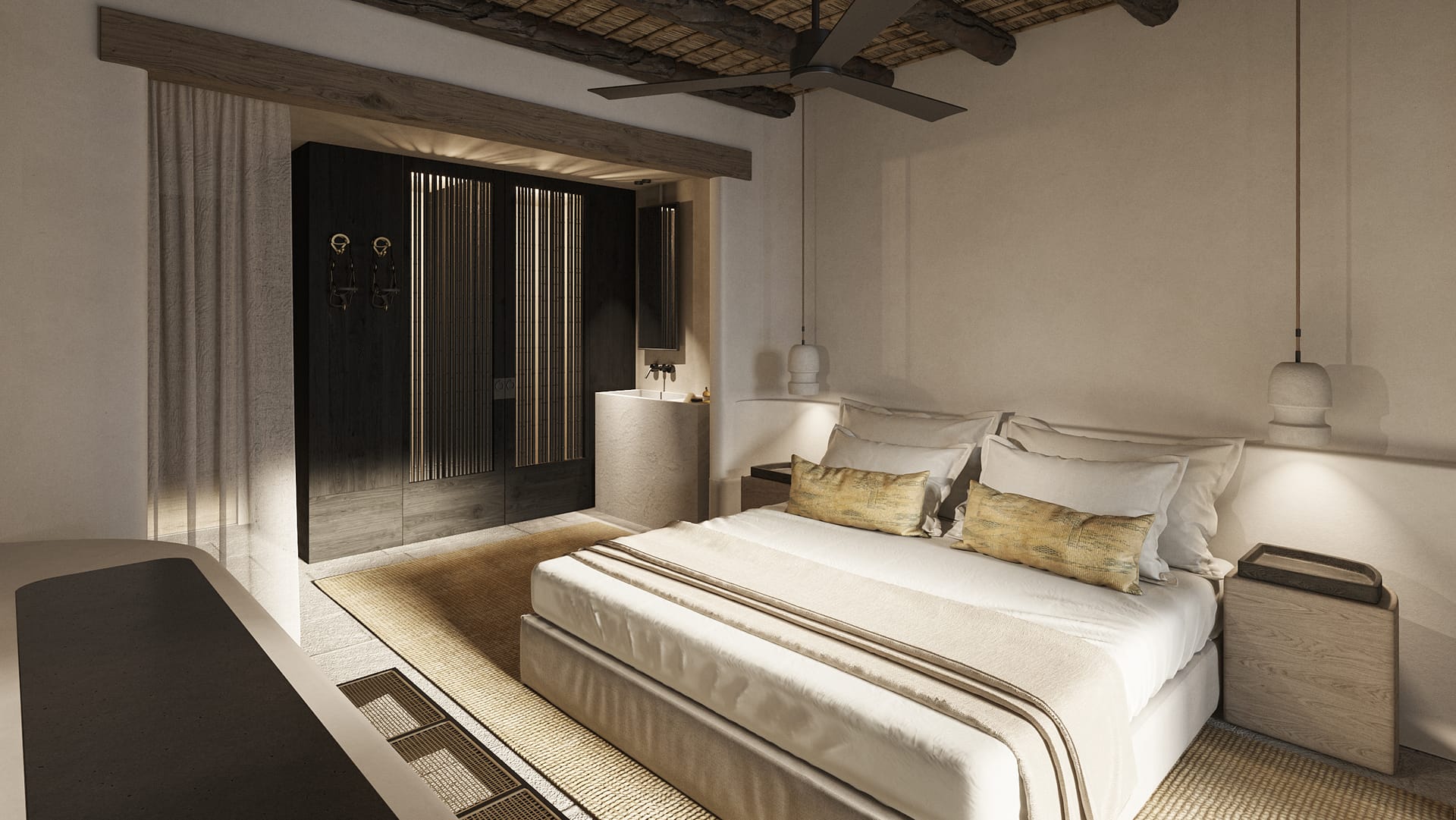 The villa features an outdoor BBQ and dining area, as well as a spacious lounging area that overlooks the 75m2 infinity pool, perfect for enjoying the beautiful Mykonos sunset. And if you feel like taking a dip in the sea, it's just a two-minute walk away, still within the resort.