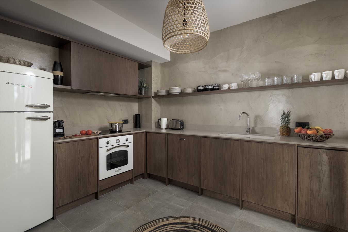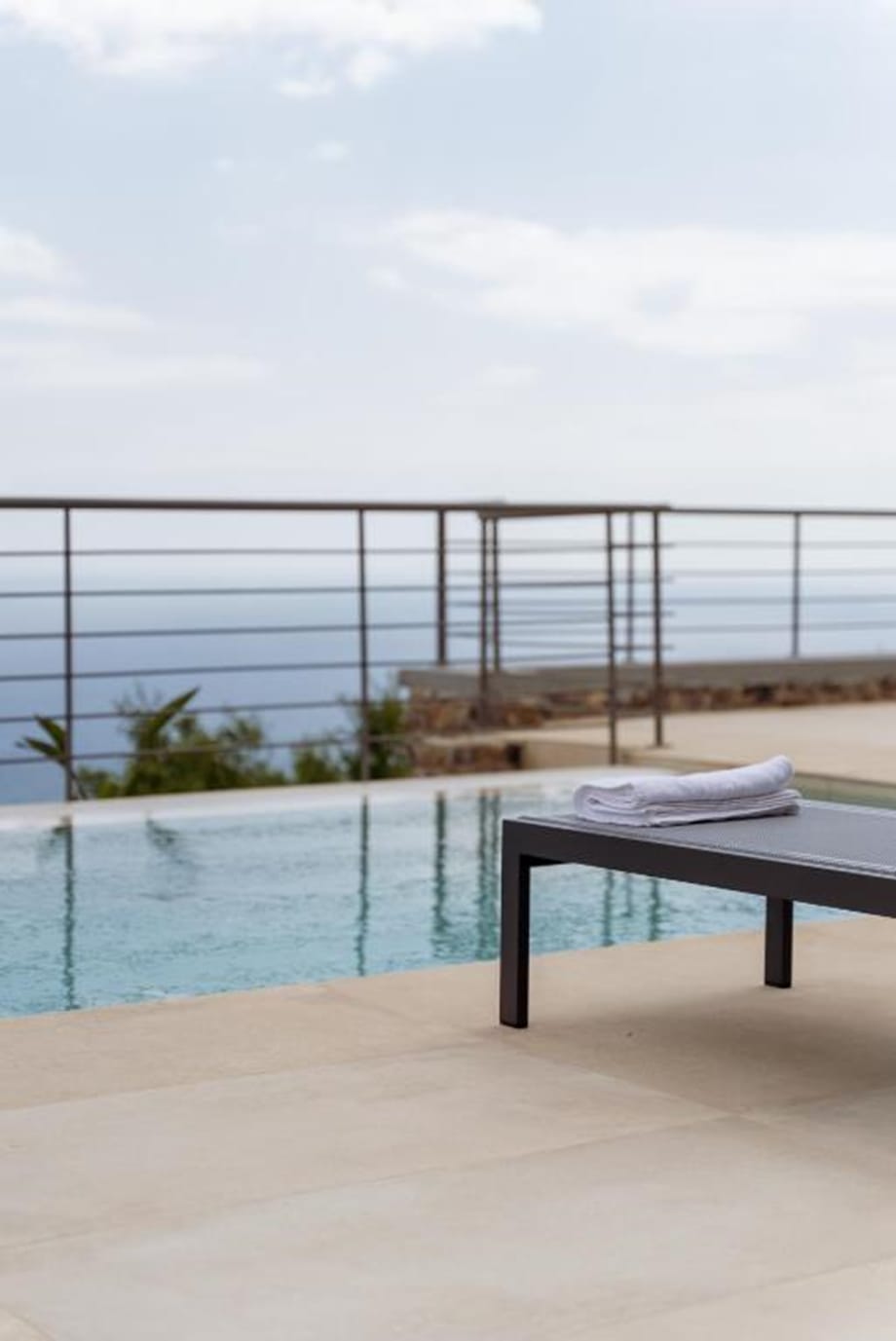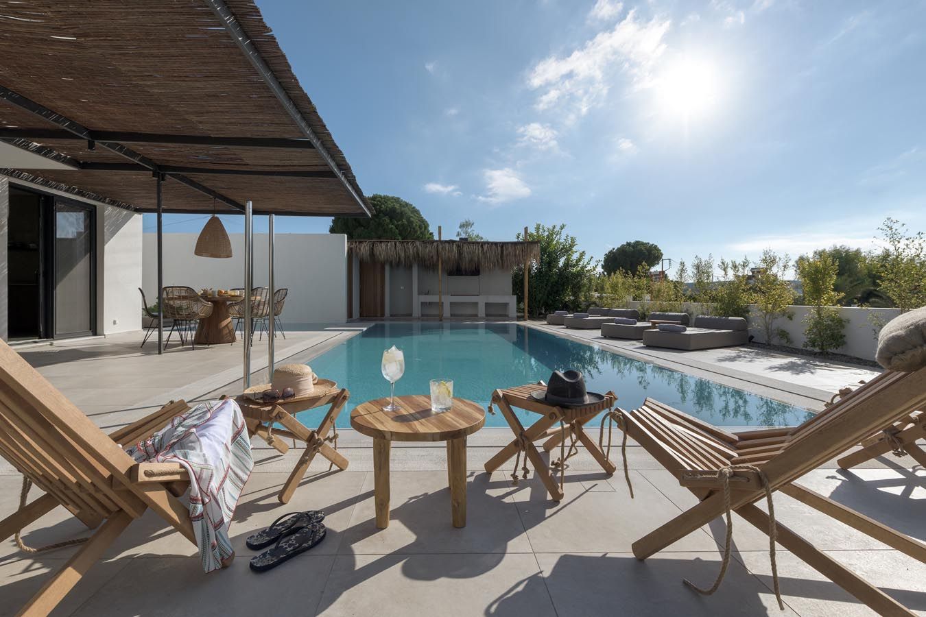 The villa boasts an outdoor BBQ and dining area tucked up against the rich vegetation of the pergolas with a magnificent sea view. There are sunny and shady areas in front of the 135m2 infinity pool that flows off into the Aegean horizon, and you are less than a two-minute walk to the sea, still within the estate.