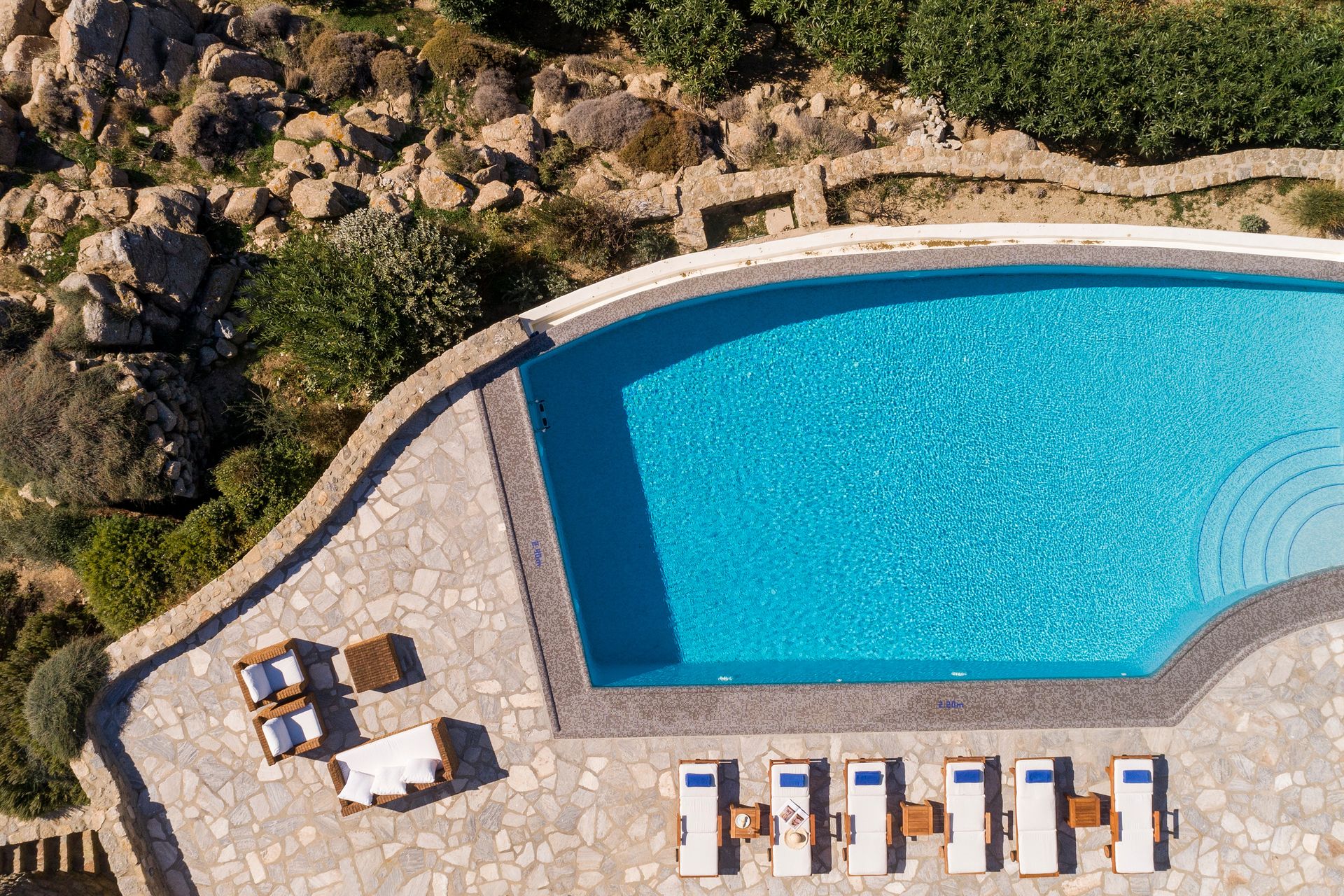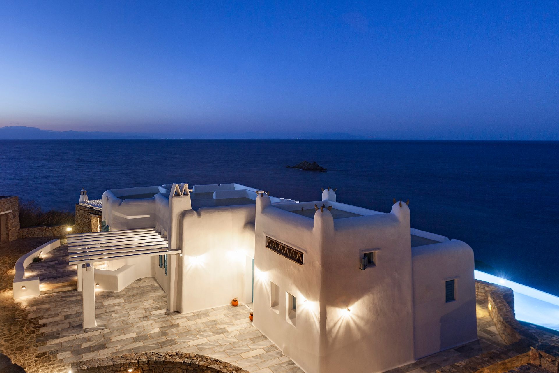 AGL Luxury Villas Poseidonia is the ultimate retreat for those seeking luxury and serenity on the island of Mykonos. Named after Poseidon, God of the Seas, this stunning villa perched at the edge of the Agios Lazaros Mykonos private 10-Villa estate, offers an uninterrupted view of Delos and Rhenea islands over a majestic drop to the sea, creating the perfect backdrop for the picture-perfect Mykonos sunset.