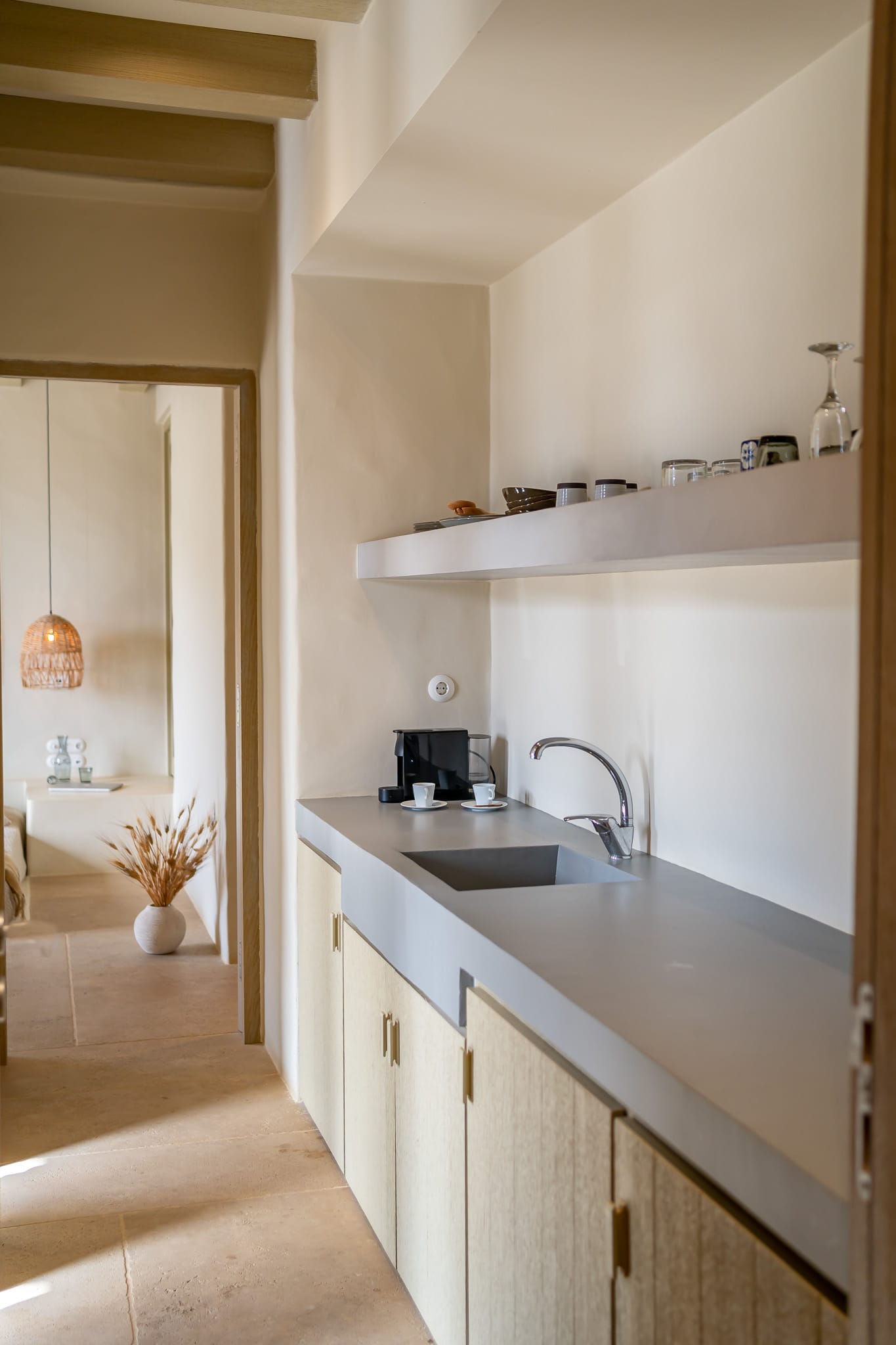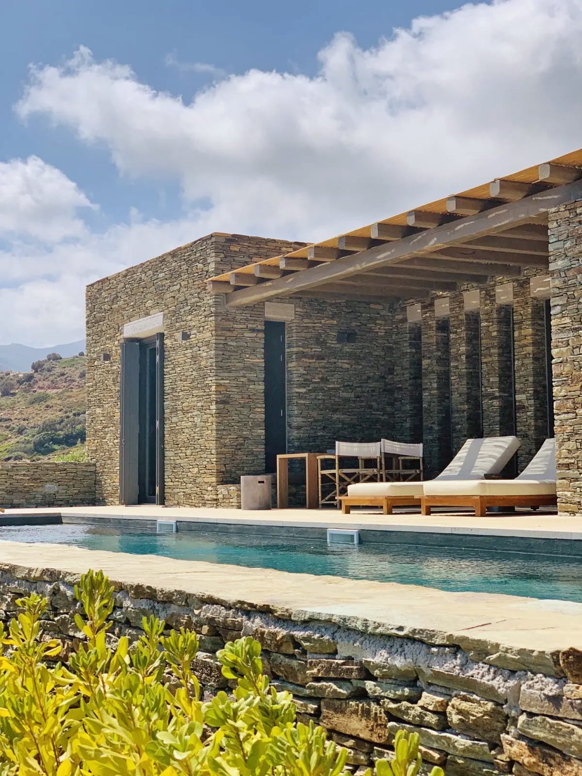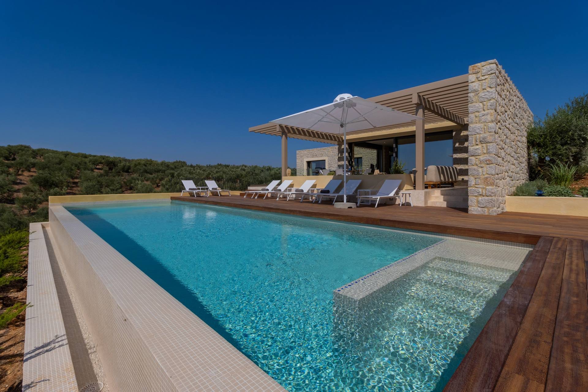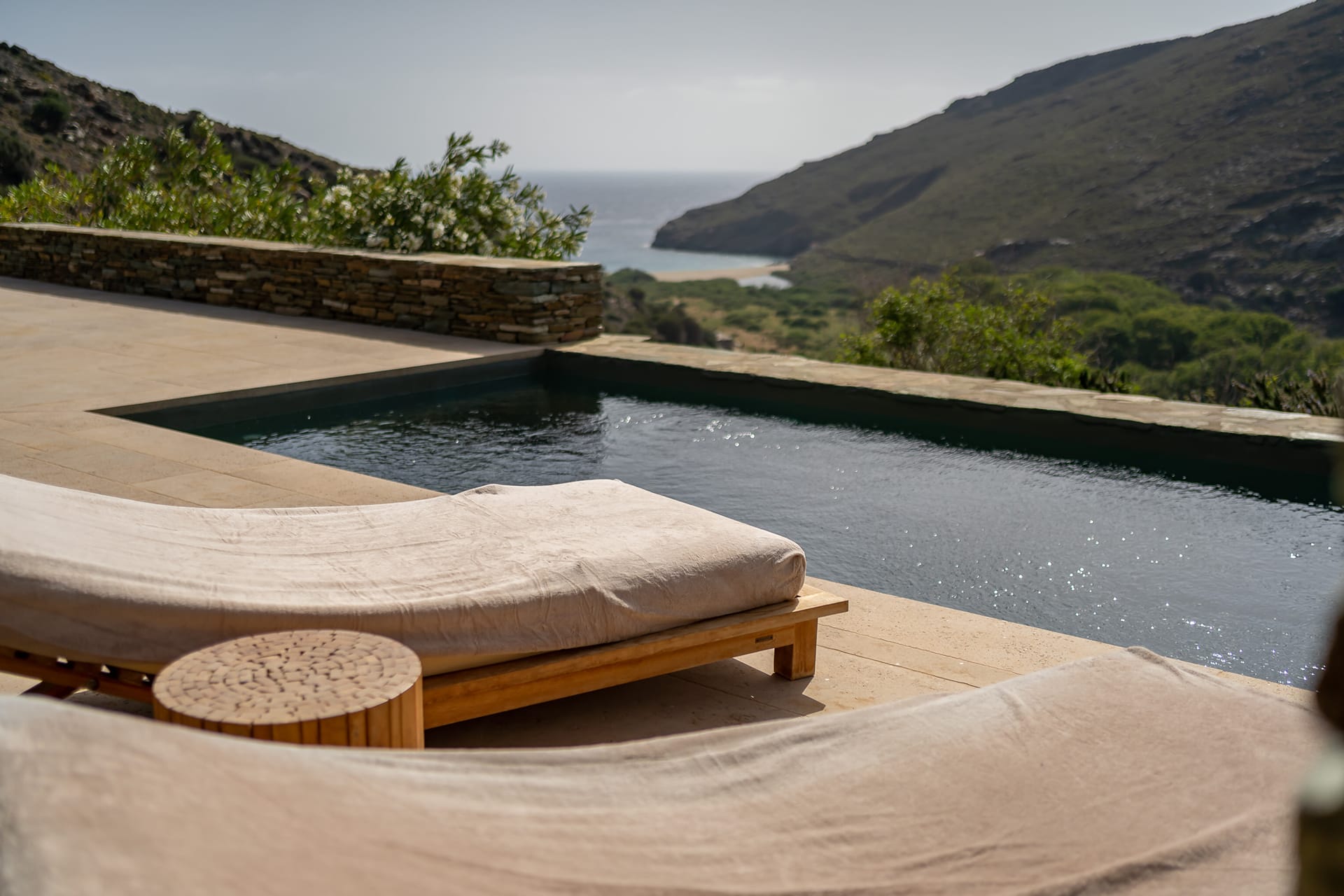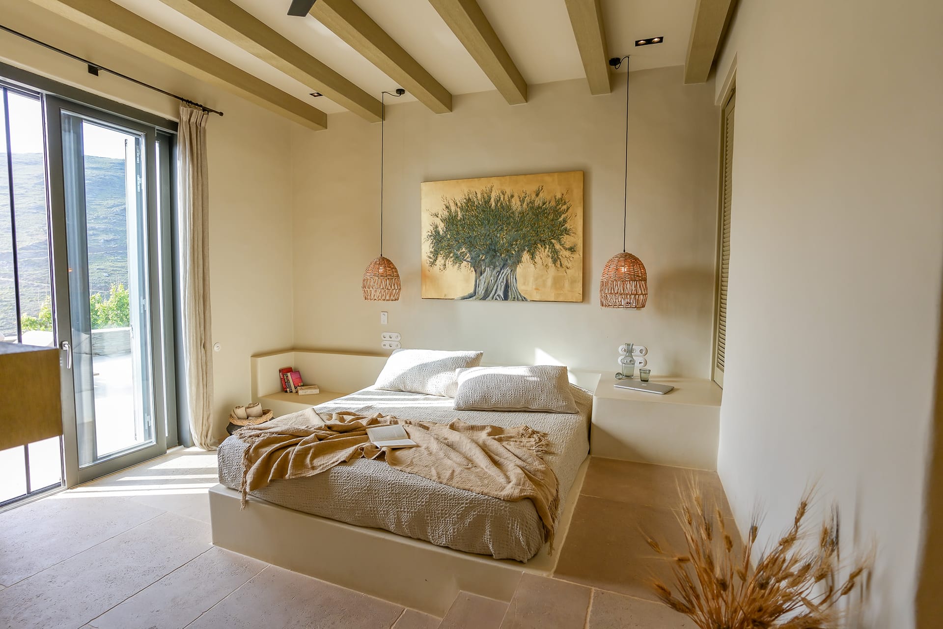The villa features an array of luxurious amenities, including an outdoor BBQ and an outdoor dining area overlooking the sea, as well as another dining and lounging area in front of the 118m2 infinity pool that flows off into the Aegean horizon. With less than a two-minute walk to the sea (still within the estate), you can indulge in the tranquility of the surrounding landscape.