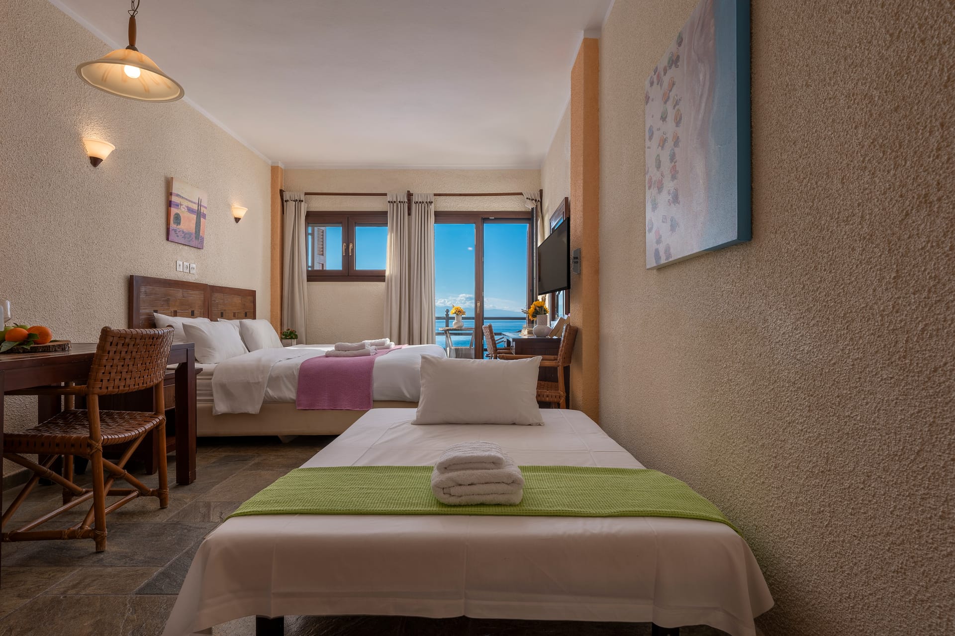 The Double Room Sea View is suitable for 2-3 persons with 1 double bed and 1 sofa bed.