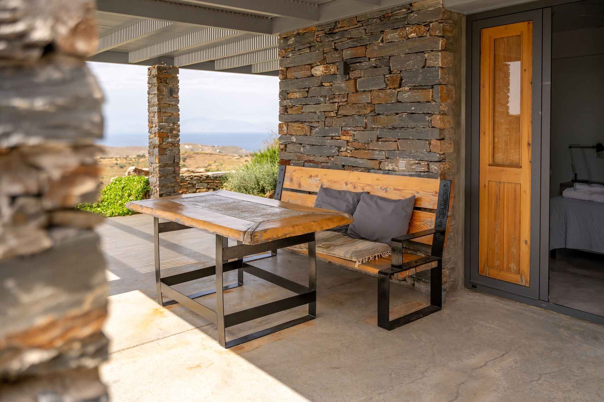 Having a view of the sunset, the sea and the island of Macronisos, the studio has a private courtyard shaded with a pergola. The courtyard extends toward a unique rock garden with aloe and other succulent species. Ideal for peace and privacy. The studio is 20 sqm.
