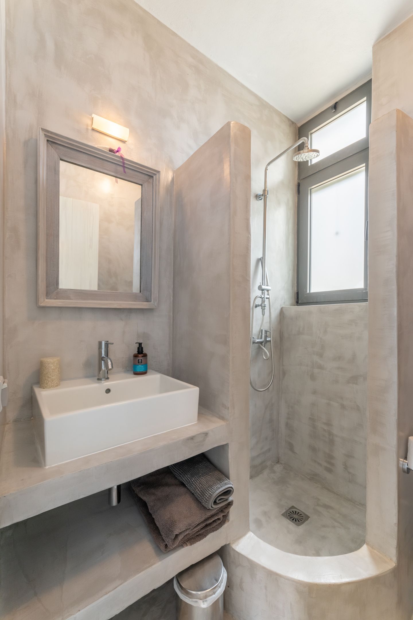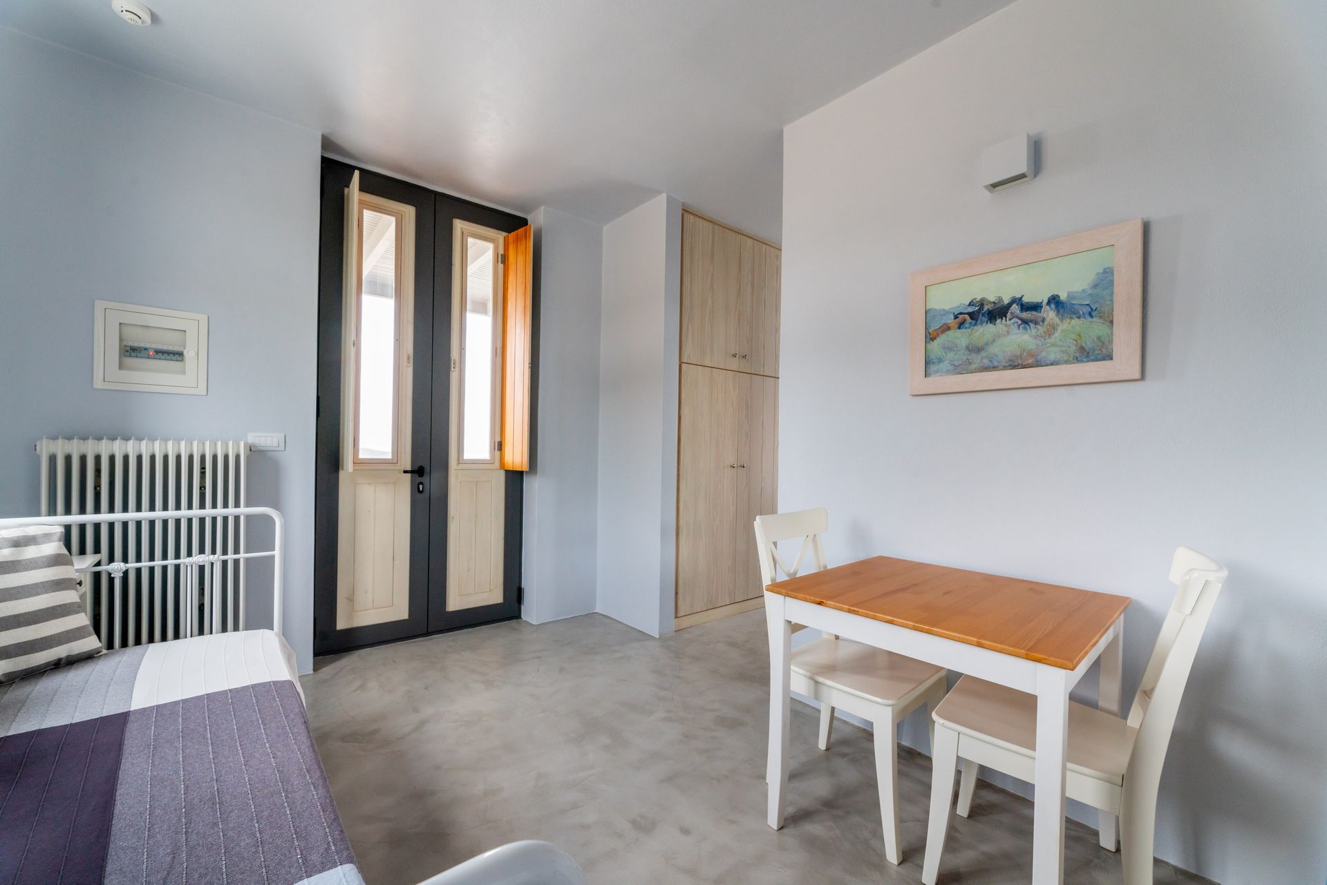 With undisturbed view towards the main village on one side, the sunset on the other side, towards the pool and the farm from its two private well sized terraces, the suite can accommodate up to 3 people in 28 sqm.