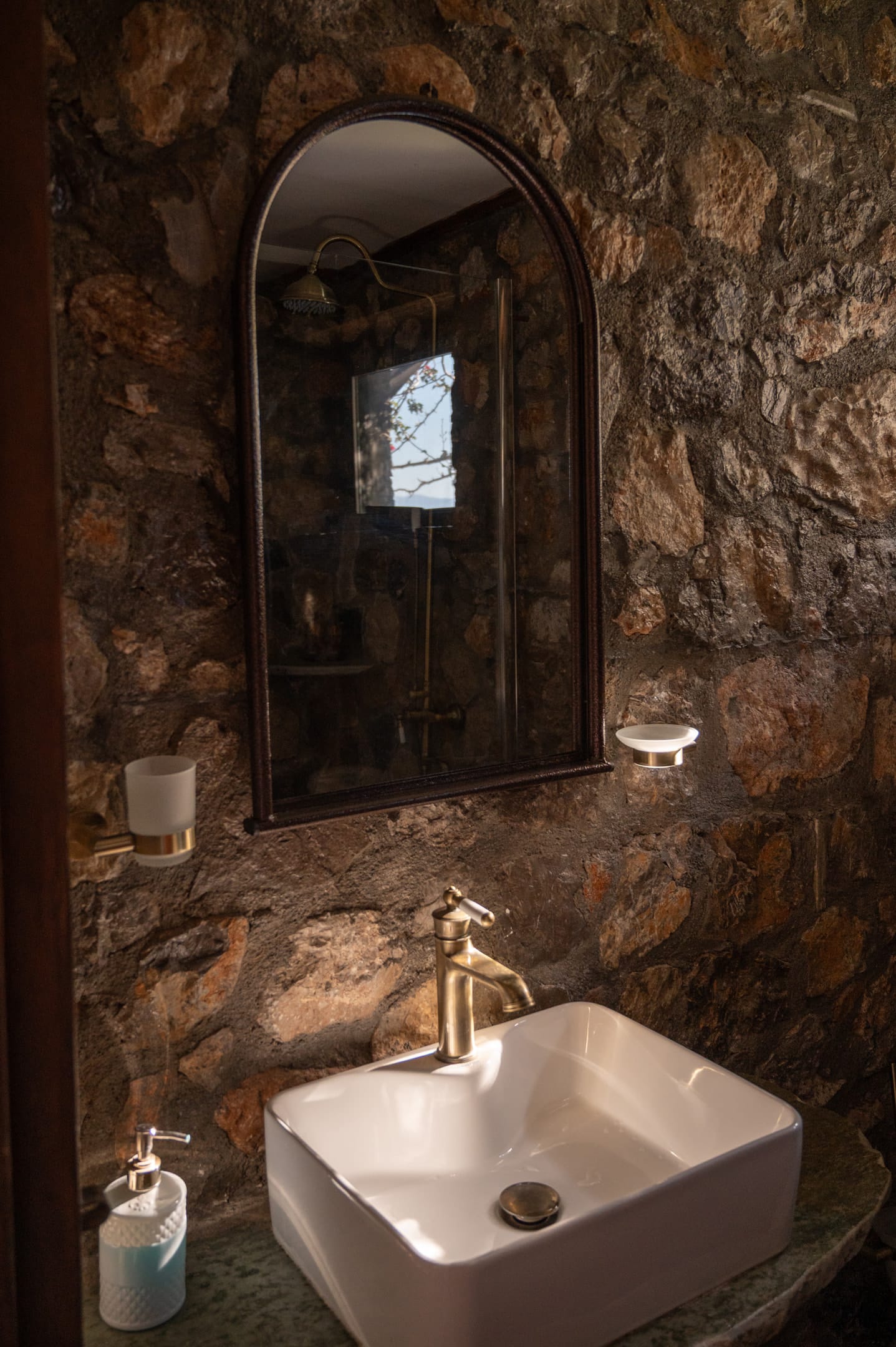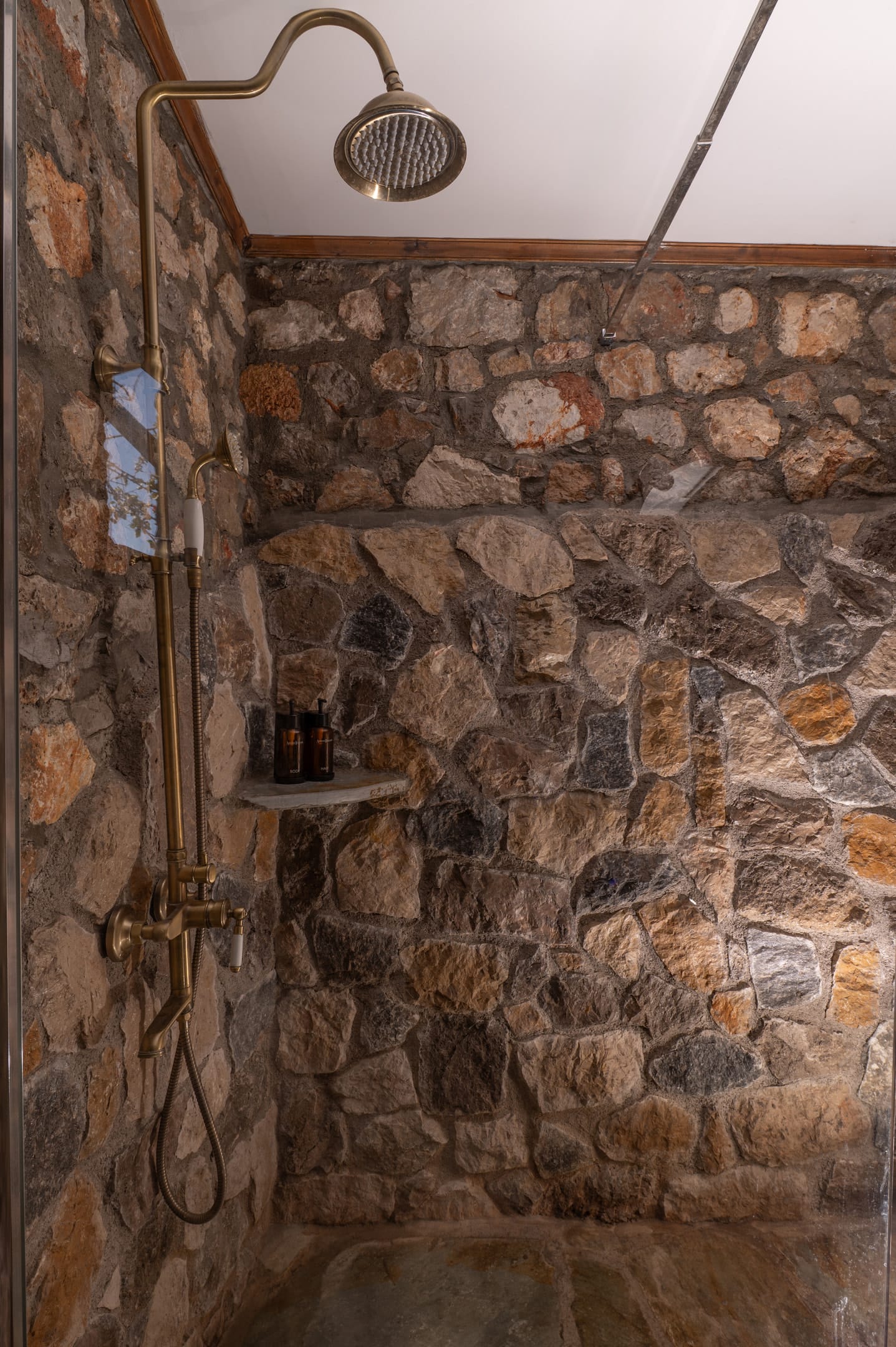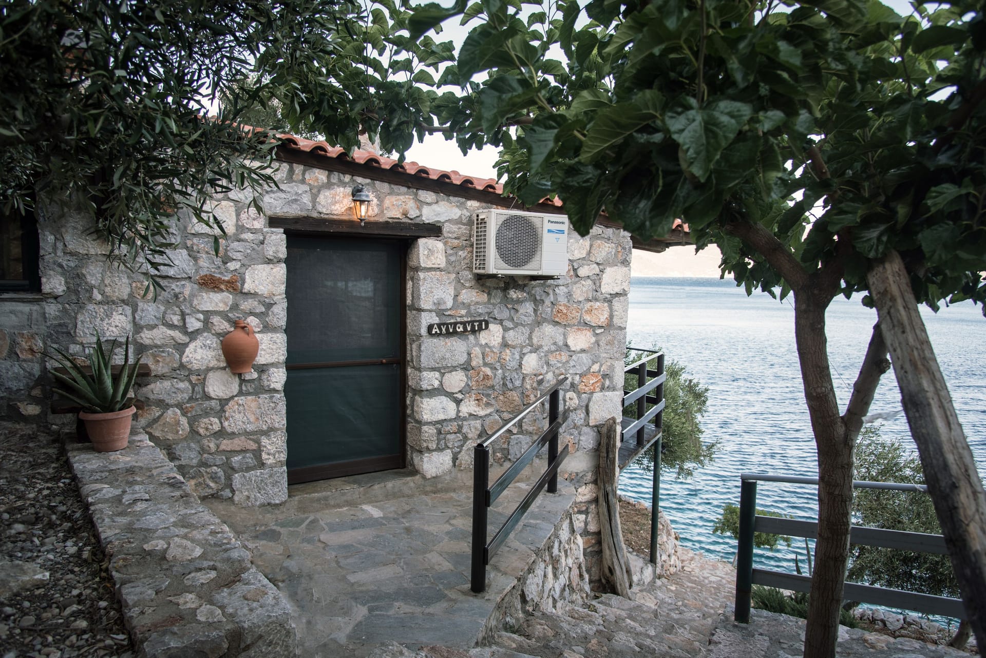It has a single space, with wooden furniture and a double metal bed. Enjoy the view and the sound of the sea from every corner of the room. Equipped kitchen in the open space with fireplace, which includes a comfortable dining area. Big balcony in the endless blue horizon. The apartment has impressive stone walls with handmade wooden constructions as well as a luxurious bathroom with a shower.