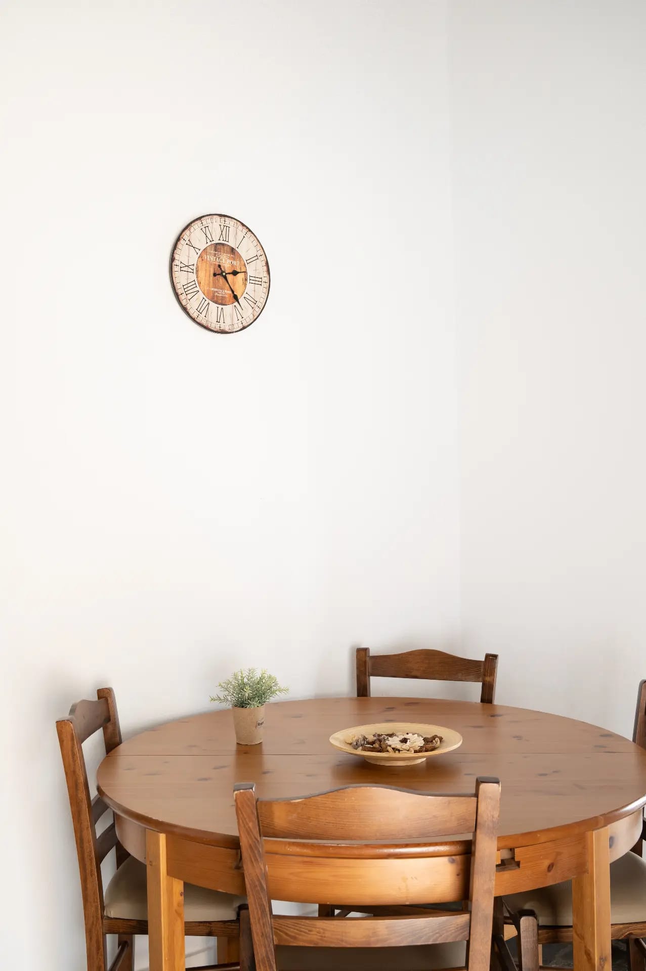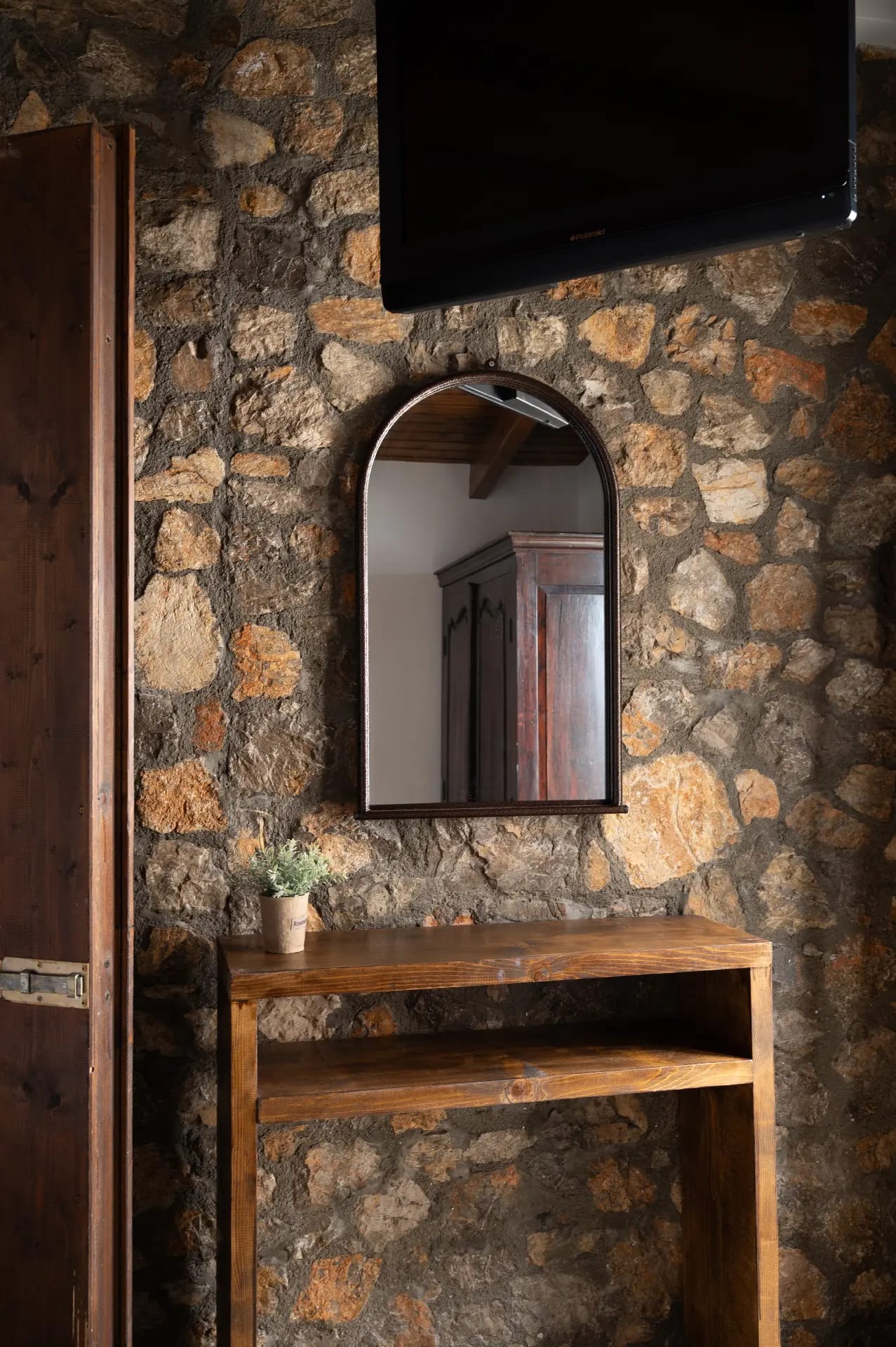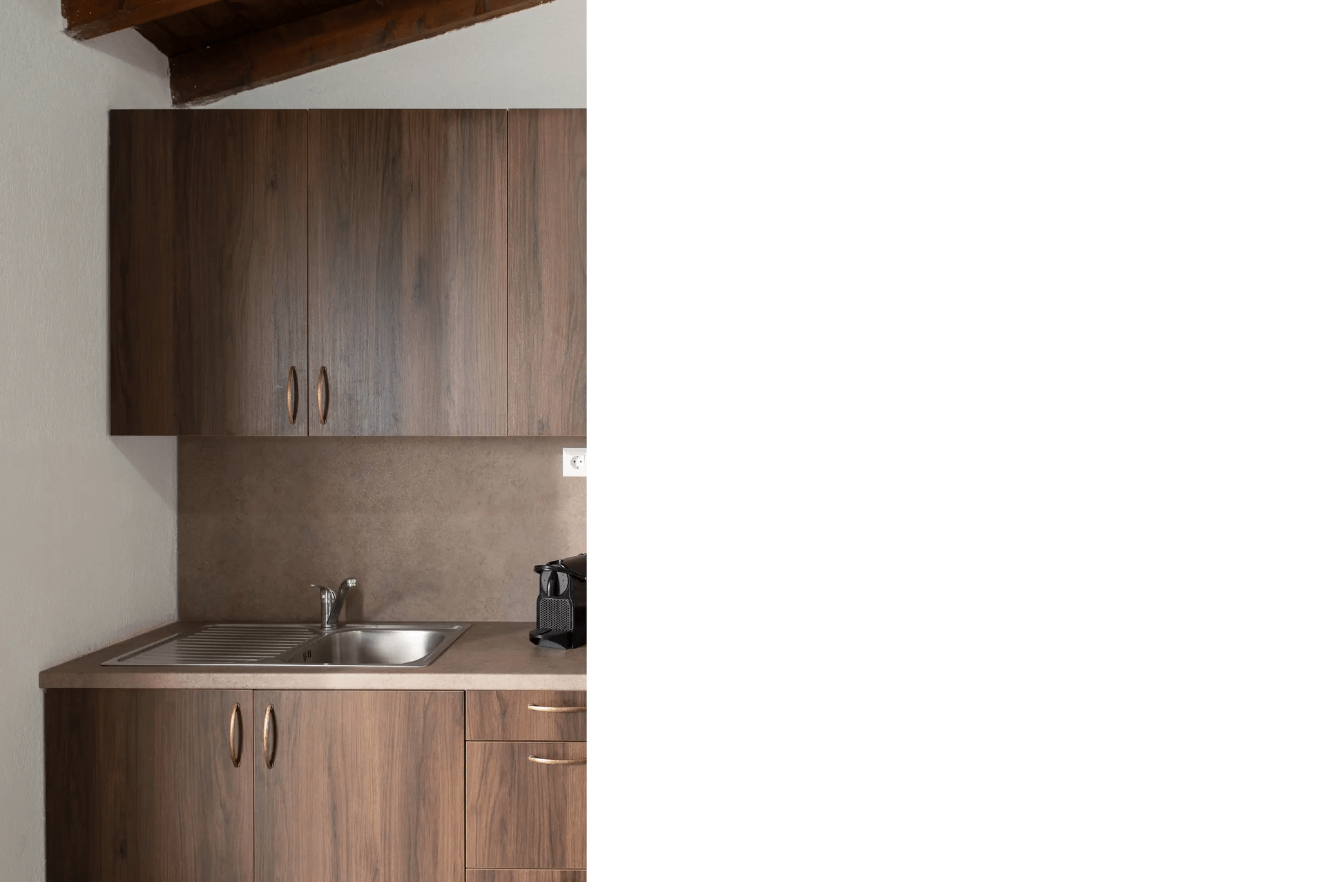 The apartment features impressive stone walls and handmade wooden constructions. It has a really huge veranda overlooking the colors of the sunset.