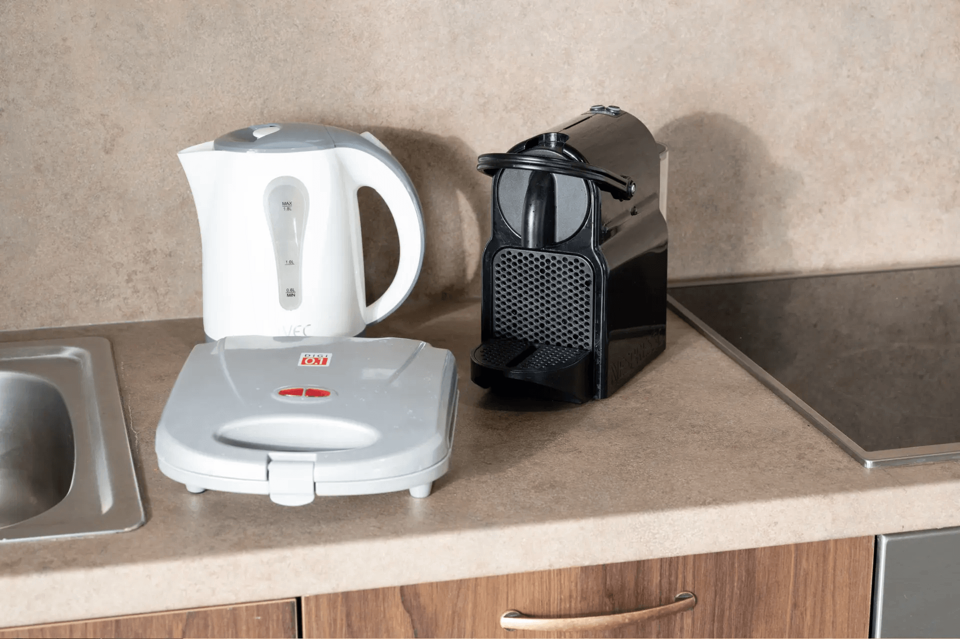 The fully equipped kitchen is a single space, which includes a cozy dining room. In the living room, there are two double sofa beds. There is also the ability to add one more bed upon request.