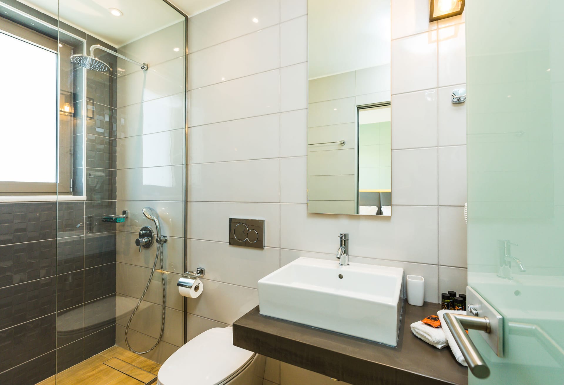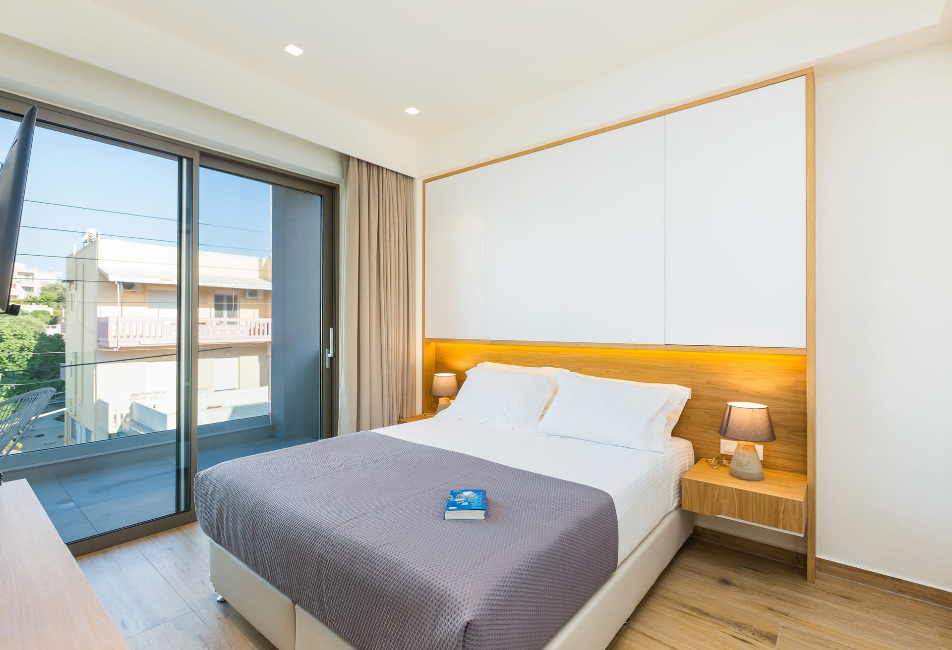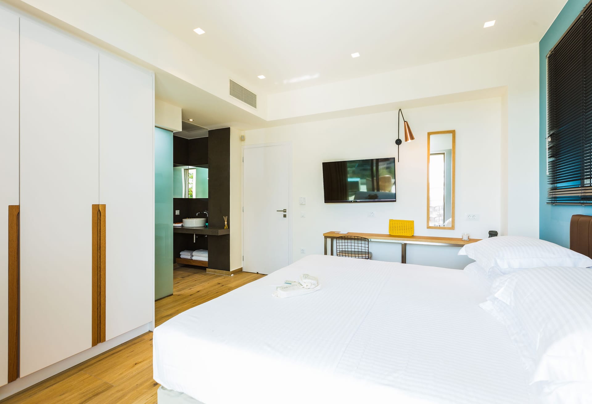 Outdoors, descend the stairs from the ground floor to discover a swimming pool of 27 sqm, a child pool of 6.4sqm with sun loungers to relax under the sun. A wooden pergola offers shade to the dining area and the BBQ with direct access to the pool area. High in the roof garden, a comfortable living area with sofas create the ideal spot to enjoy the awesome sea view. A memorable holiday experience waits for you in Villa Adeline.