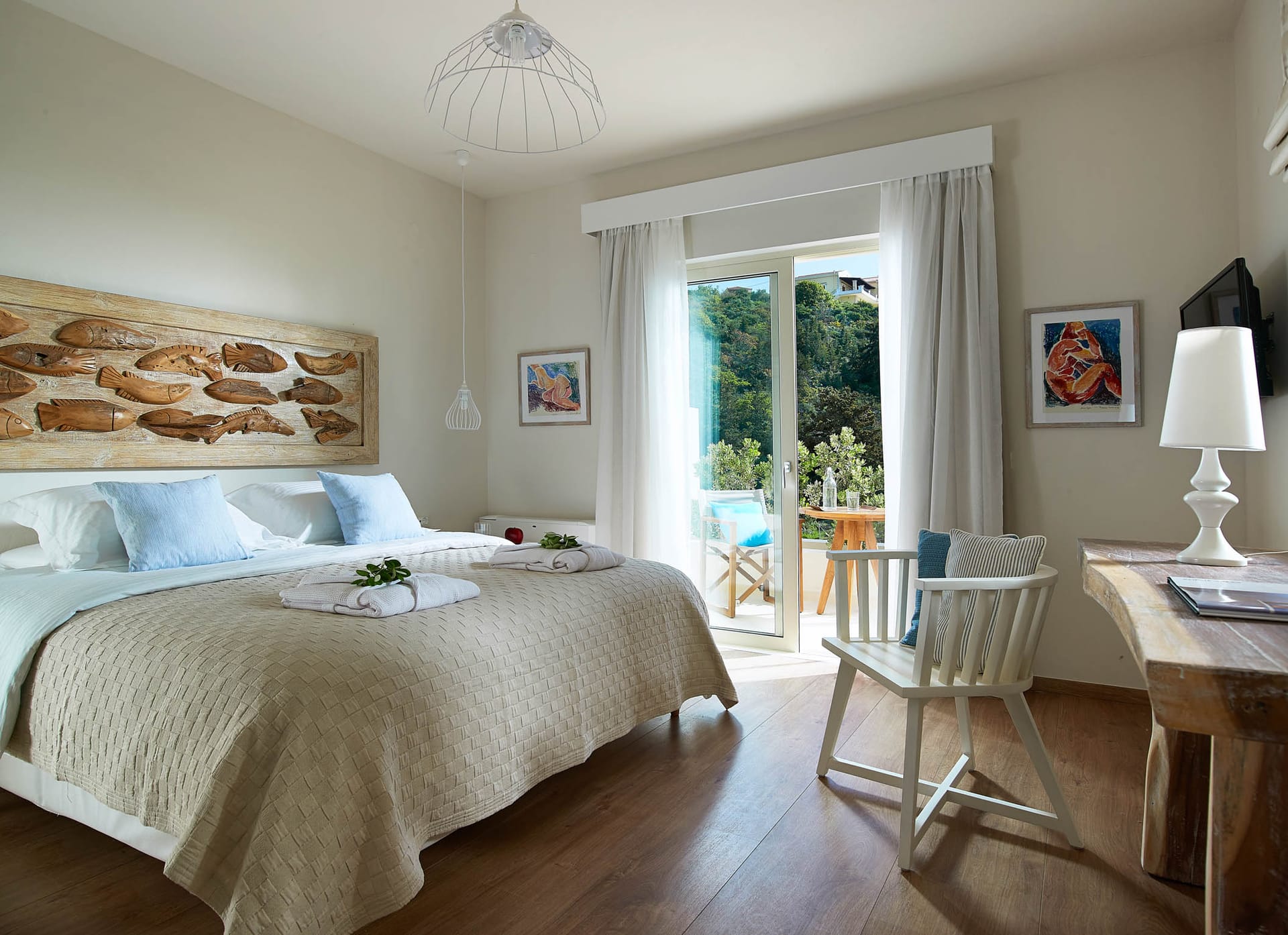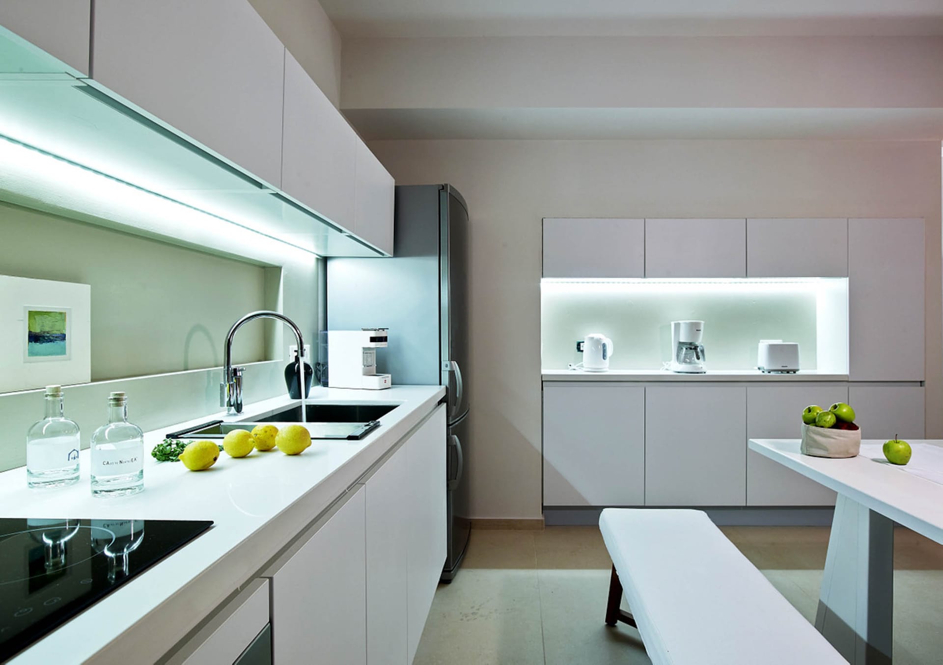 With a living space of 160 sqm and set on a 500 sqm plot, Amaya 2 offers ample room for guests to unwind and immerse themselves in the beauty of Crete. The ground level features an open-plan living area with an energy fireplace, a satellite LED TV with Apple TV, and a docking station. The fully equipped kitchen and dining area accommodate up to eight guests, while a laundry room with a washer, dryer, and ironing facilities adds to the convenience. The first-floor bedrooms open onto private balconies or terraces, offering stunning views, comfortable seating, and sun loungers.