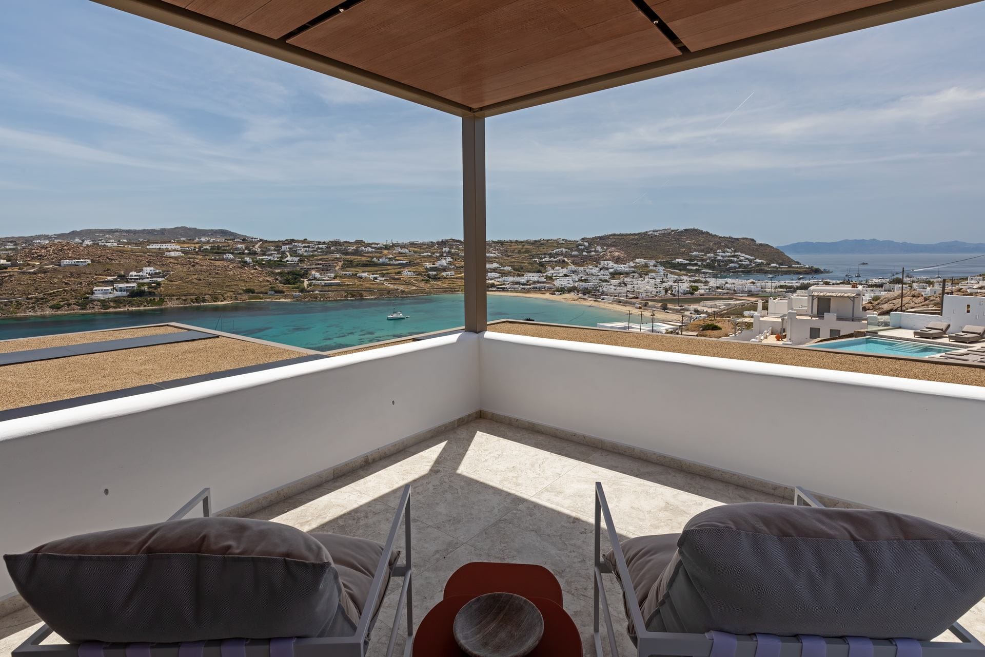 The villa spans two levels and features three beautifully designed bedrooms. On the upper floor, one bedroom has twin beds with a sea view, while the second boasts a king-size canopy bed. The ground floor hosts the third bedroom with a king-size bed, also offering a mesmerizing sea view. The villa includes a communal WC and three en-suite bathrooms—one on the ground floor and two on the upper floor each crafted with high-end materials and modern fixtures. Every space within the villa has been thoughtfully designed to enhance comfort and style, with contemporary architecture and premium furnishings elevating the overall experience.