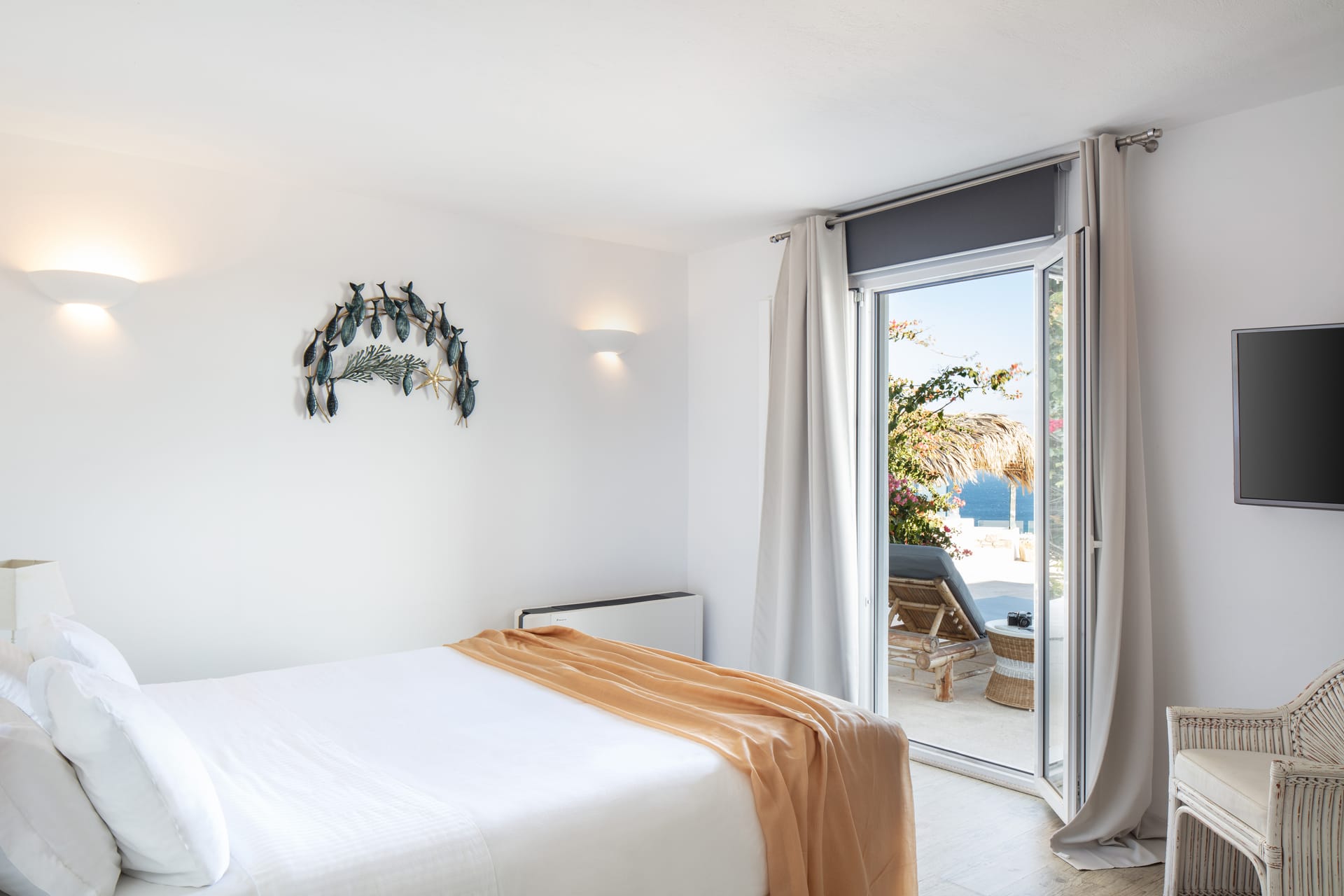 Outside, the villa’s private pool area is an oasis of tranquility, ideal for unwinding under the Cretan sun. Whether lounging on the sunbeds, enjoying a refreshing swim, or taking in the stunning sunset, the outdoor space promises moments of pure relaxation. A spacious lounge area with plush seating, a dining table, and a gas BBQ sets the scene for alfresco dining and social gatherings. The swimming pool can be heated upon request during specific months, ensuring year-round enjoyment. Additionally, the villa provides convenient access to the sea and a secure parking area for guests’ peace of mind.