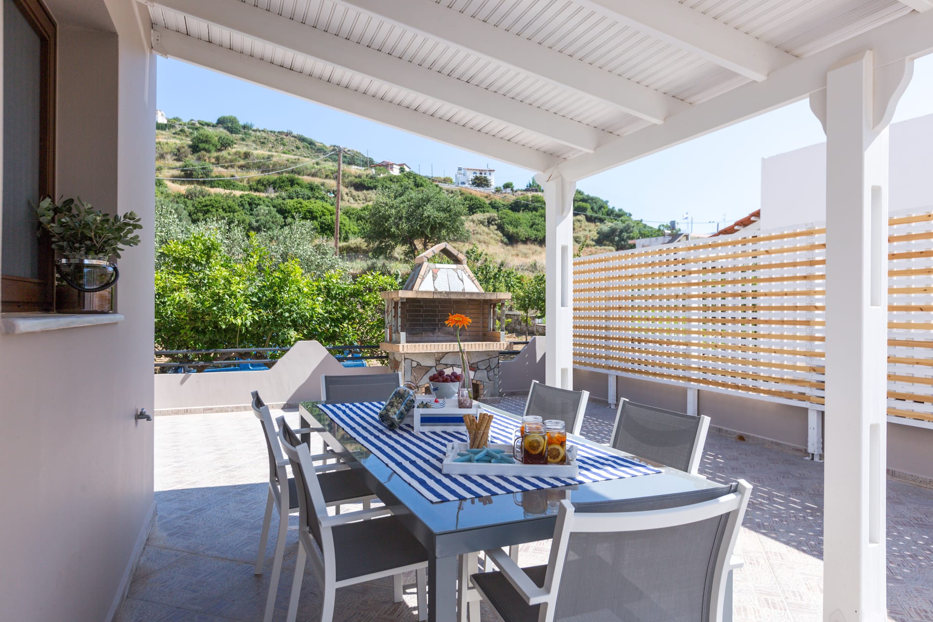 Pergola-protected dining area