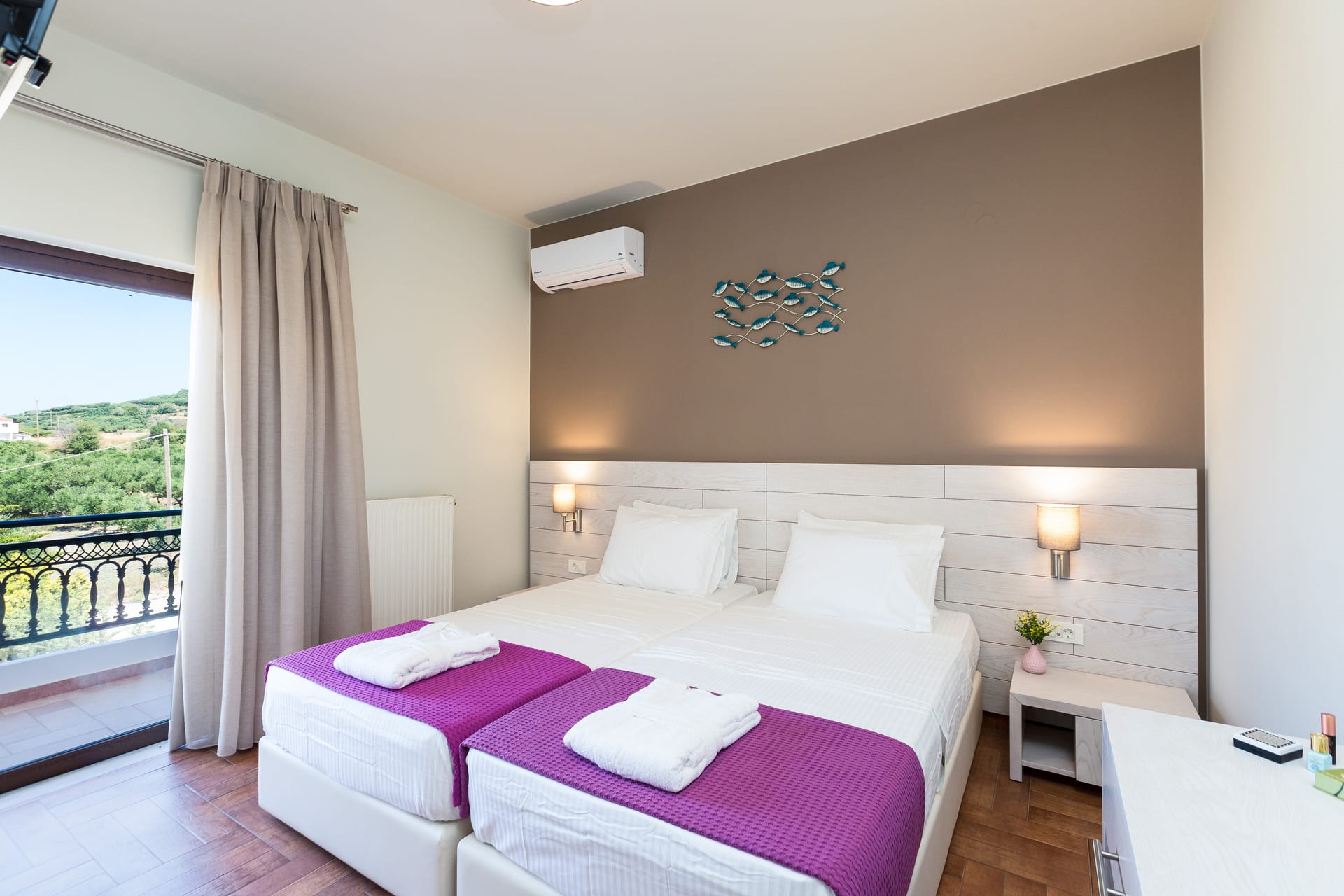 Bedroom 2: Twin size beds (0.80x2.00), A/C, 32’’ Satellite TV, balcony