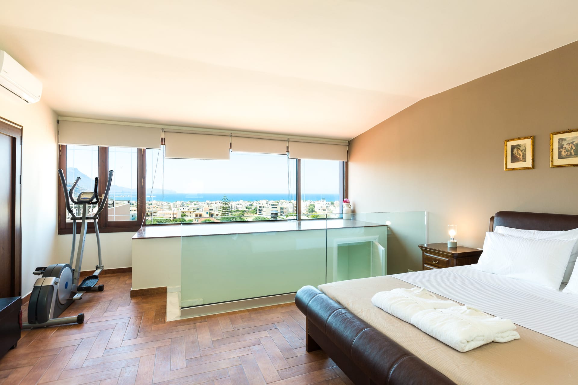 Bedroom 5: Double size bed (1.60x2.00) A/C, 32’’Satellite TV, ensuite bathroom with shower, sea view & an elliptical cross trainer