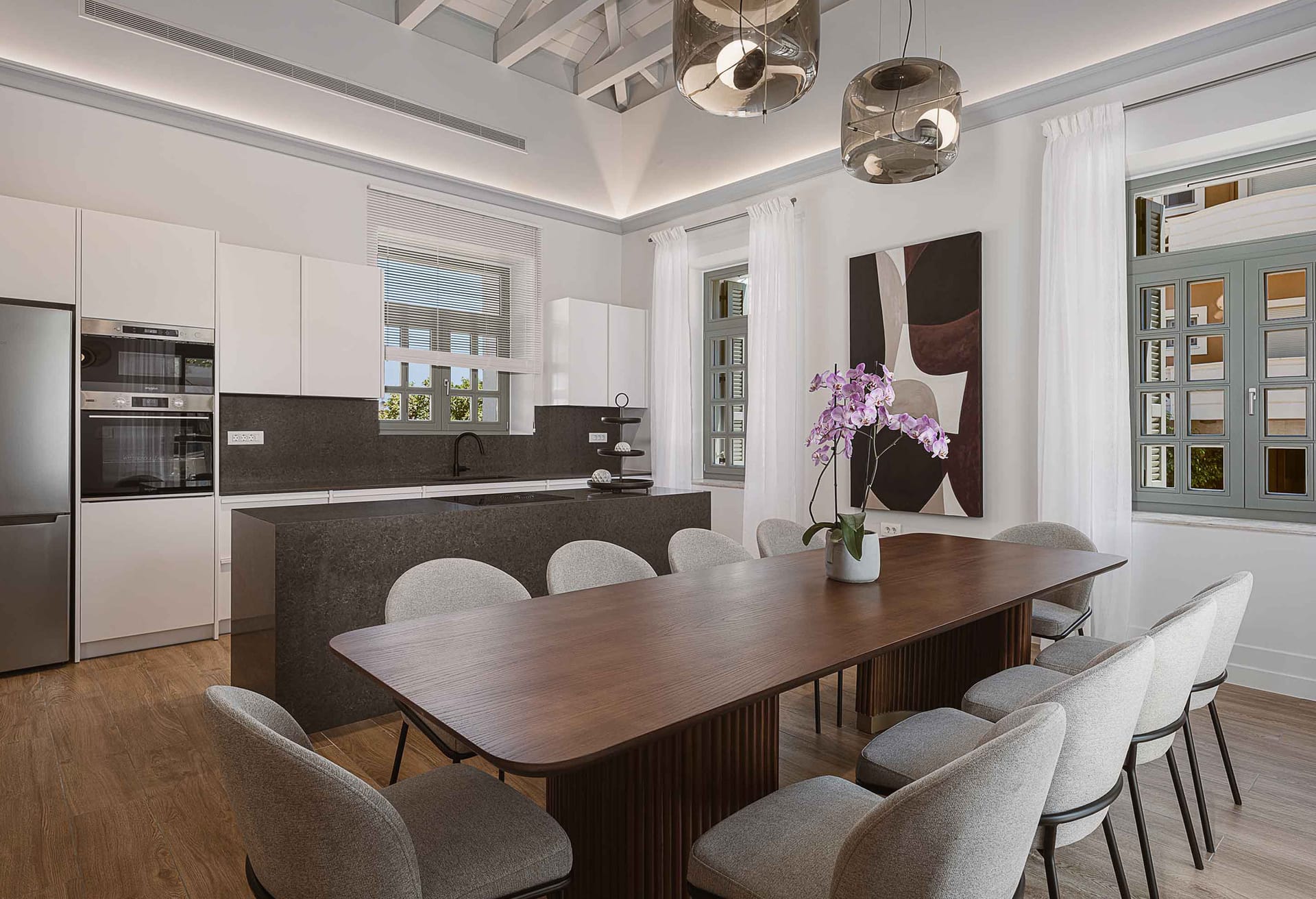 - Fully equipped kitchen with all necessary amenities and dining area for 12 guests