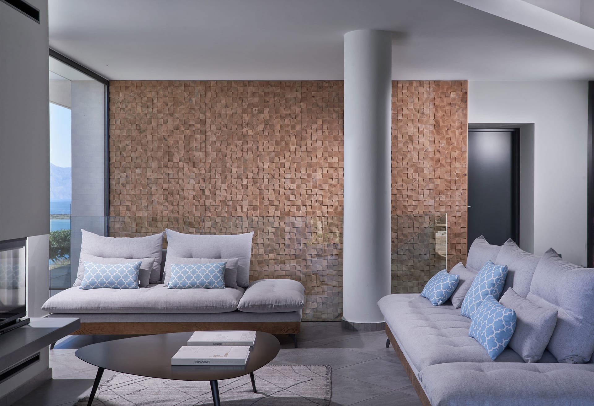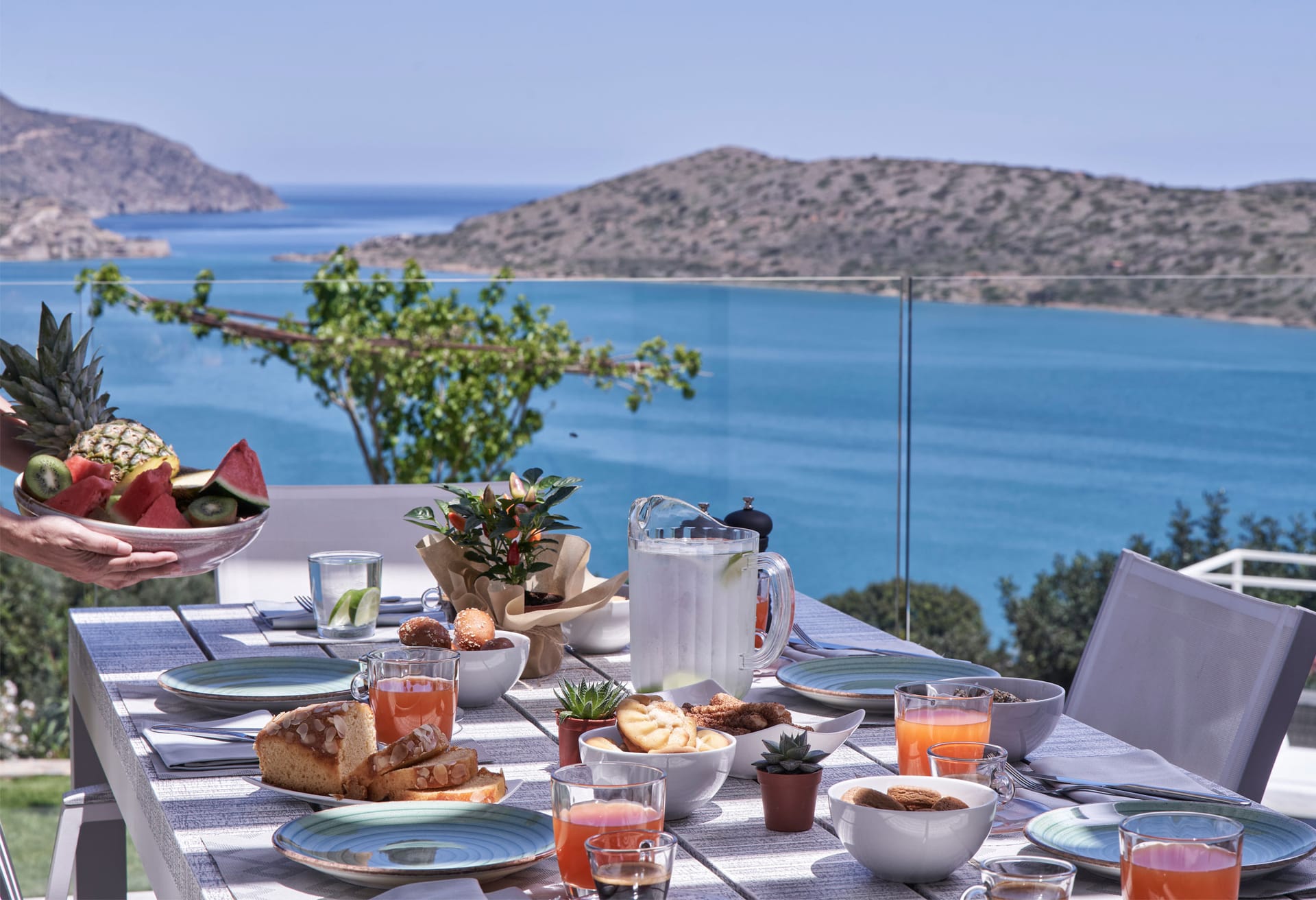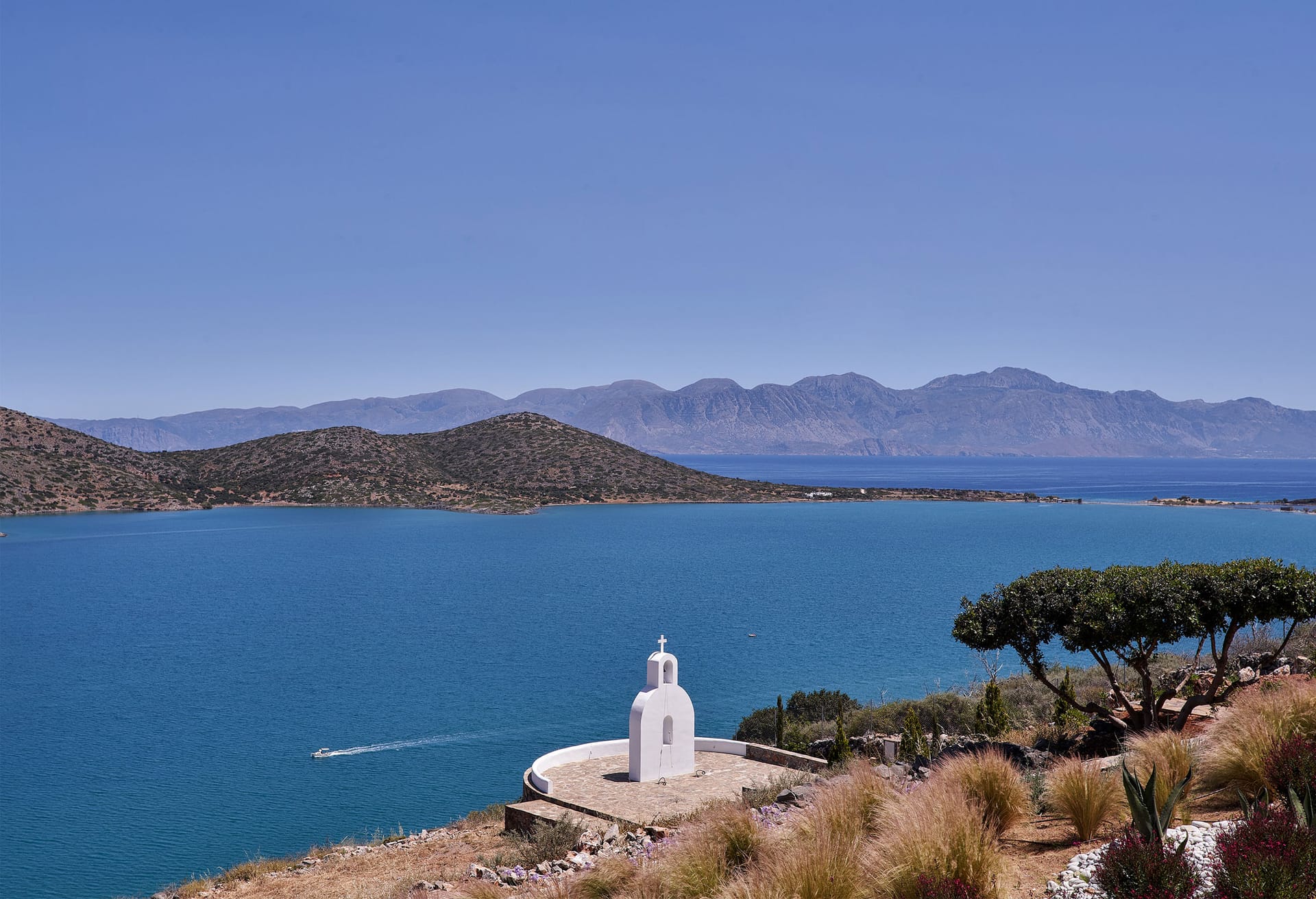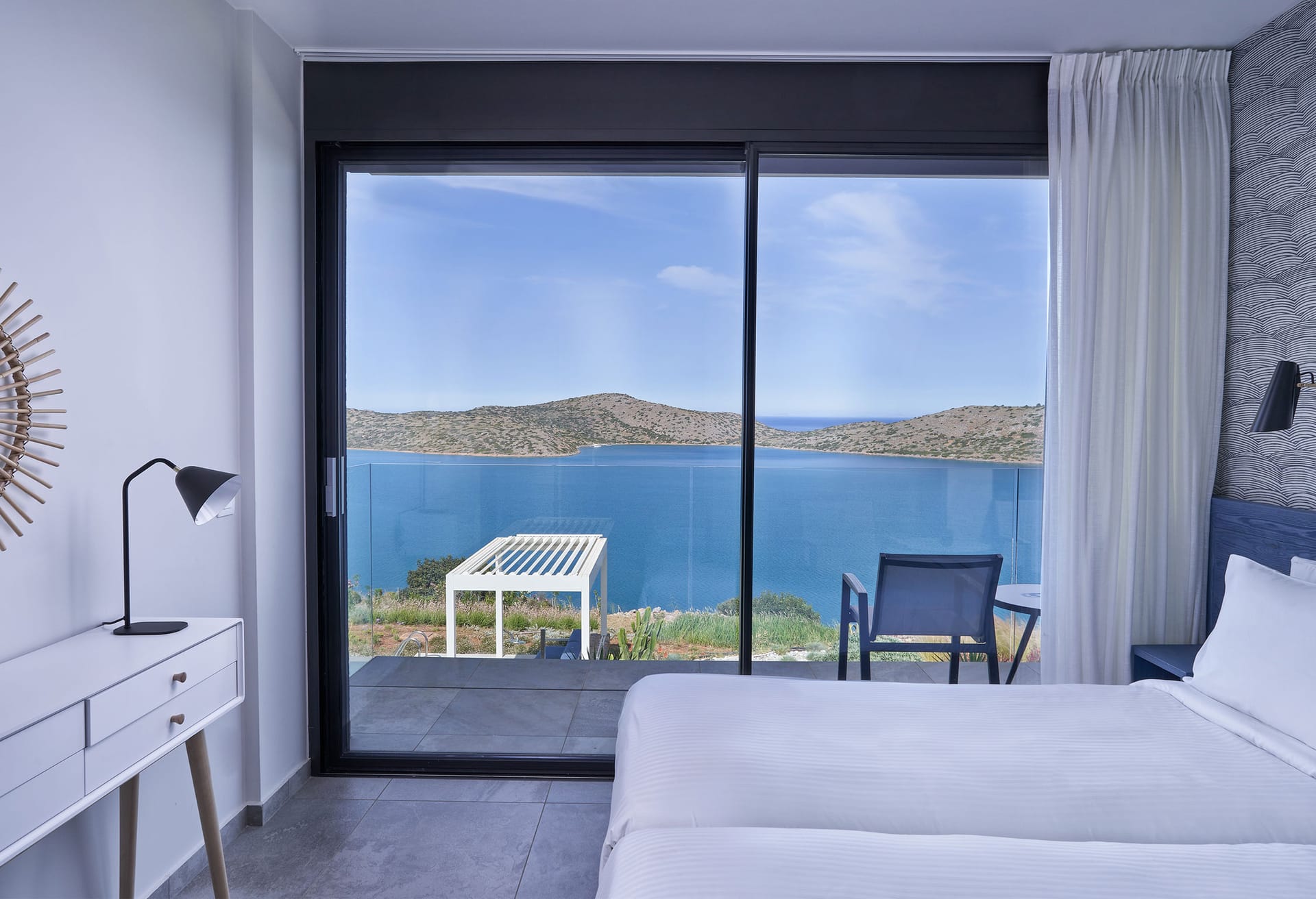 Step into this refined six-bedroom villa seamlessly integrated into the Cretan landscape, and be mesmerized by the awe-inspiring vistas of Mirabello Bay, visible from your infinity private heated pool as well as through the expansive floor-to-ceiling glass windows both inside and outside the villa.