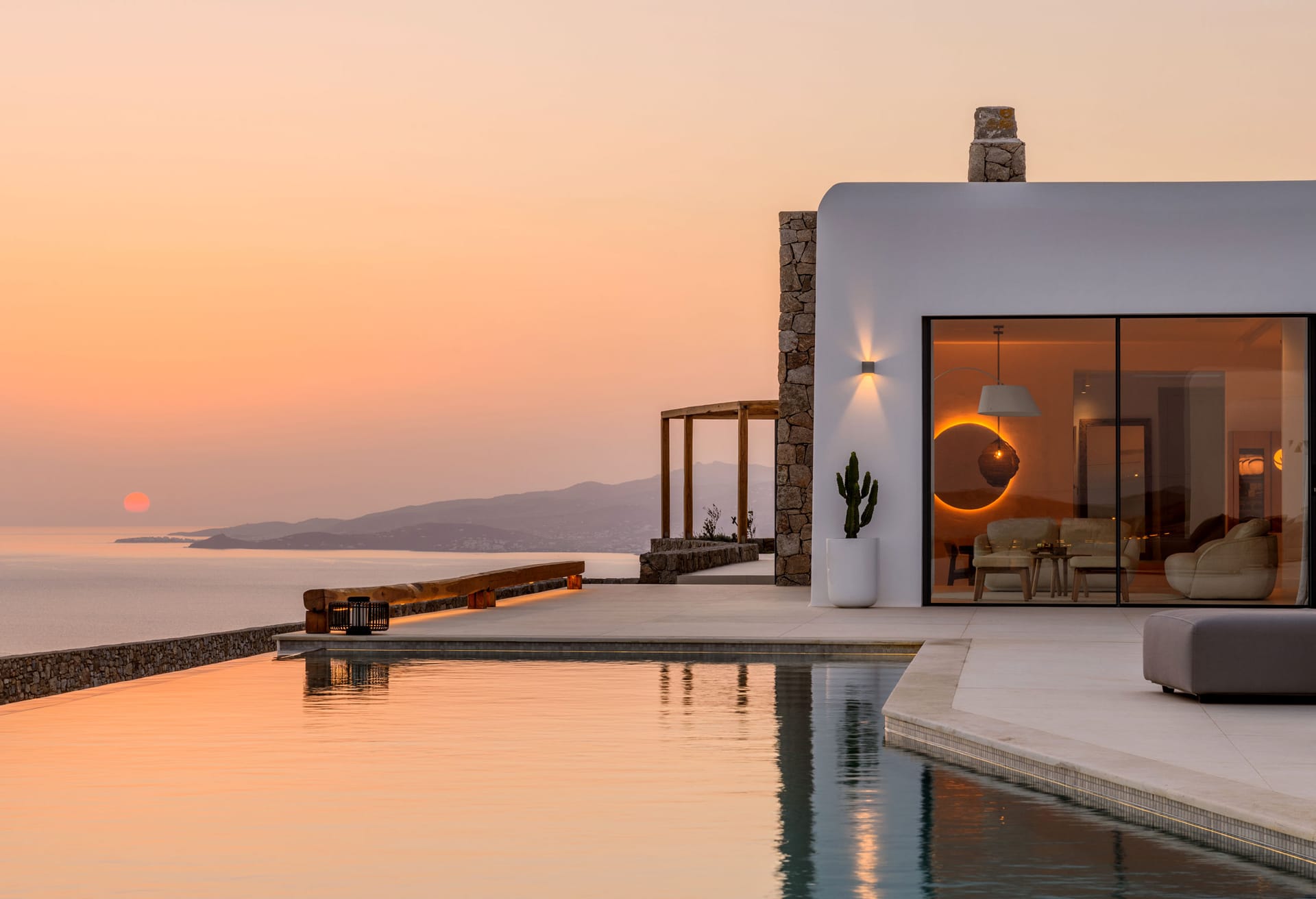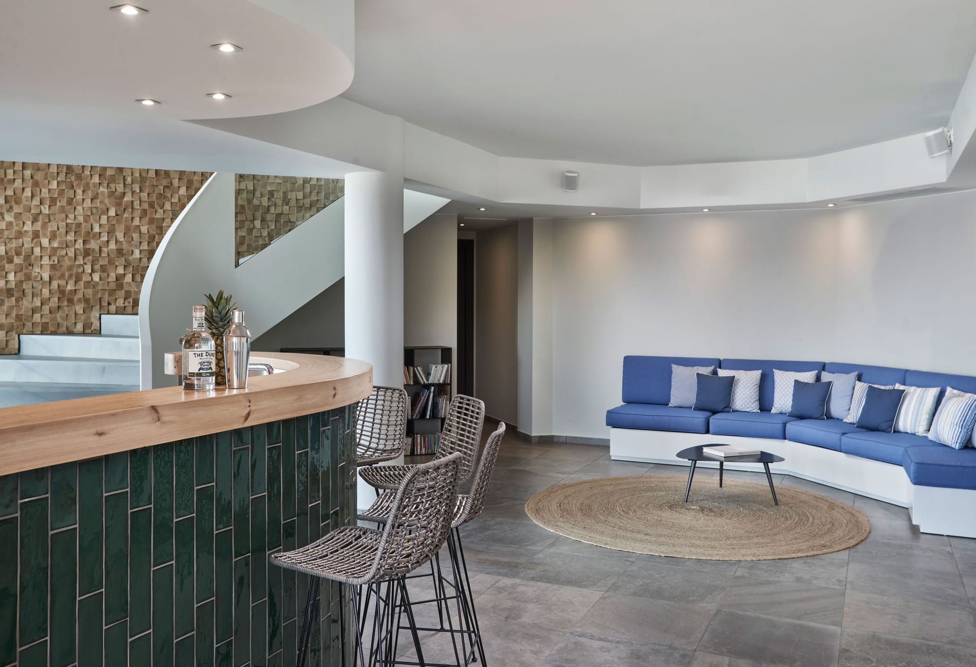 Inspired by the Aegean Sea, Crete Villa Artemis's contemporary design harmonizes with nature, evident in details like the staircase evoking the sensation of navigating a ship set for a voyage, all while offering breathtaking sea views. The interior bar seamlessly transitions to the expansive infinity pool, stretching towards the azure Aegean horizon.
