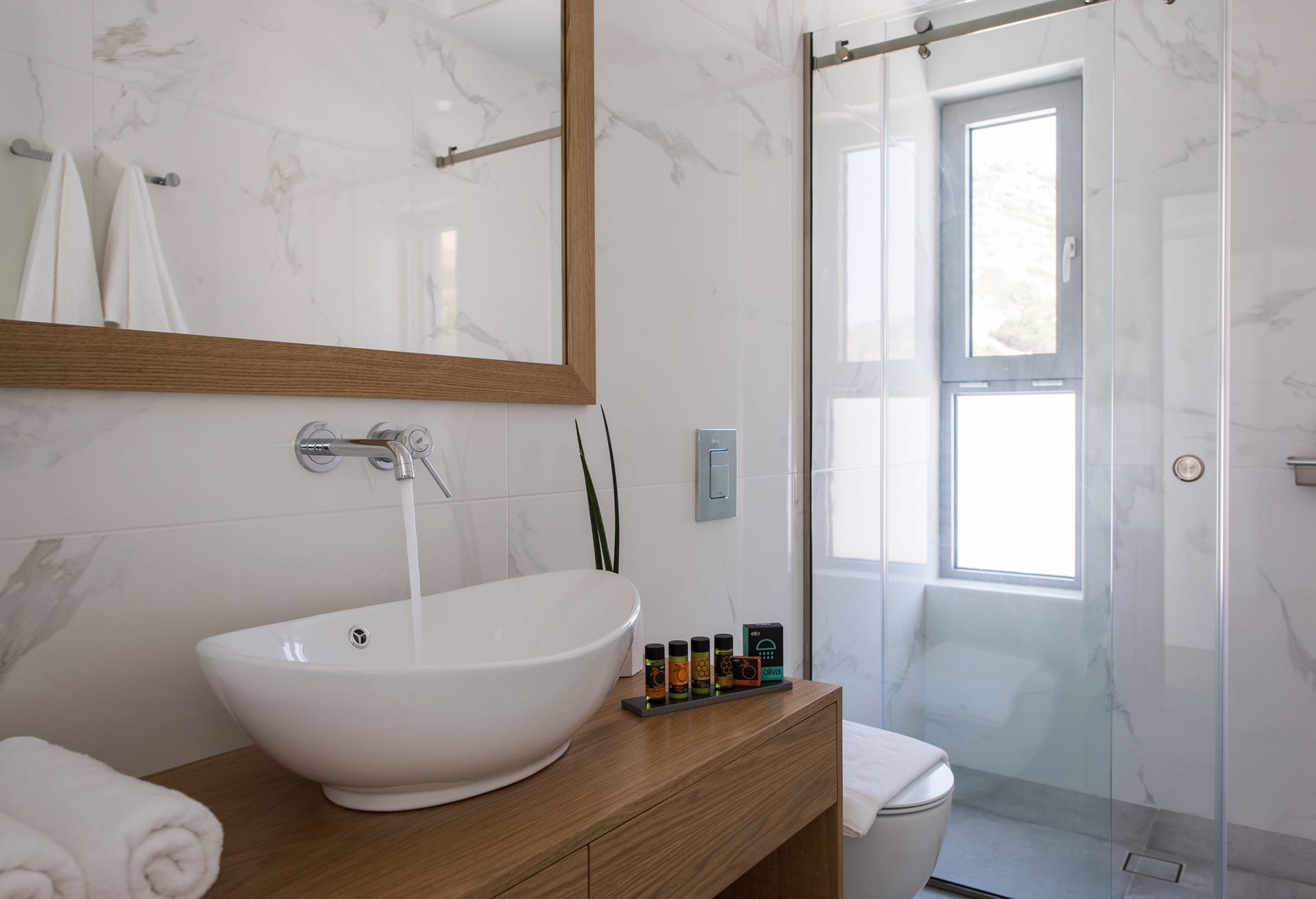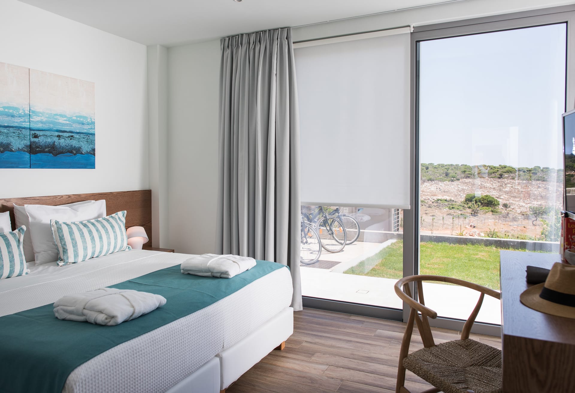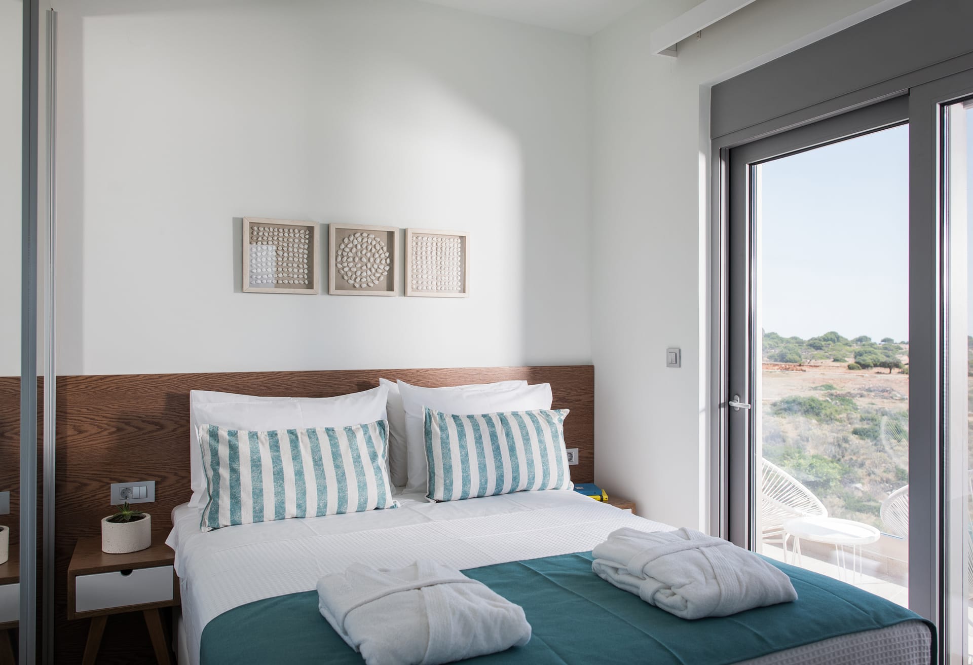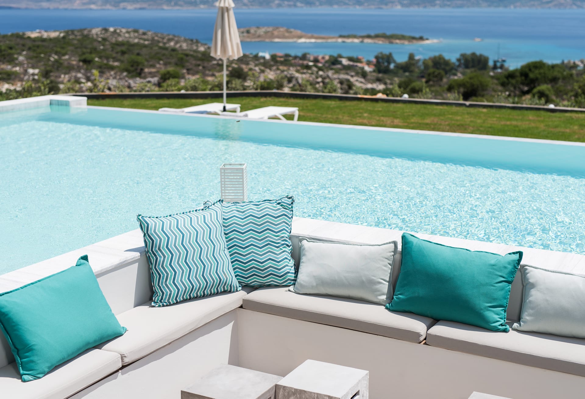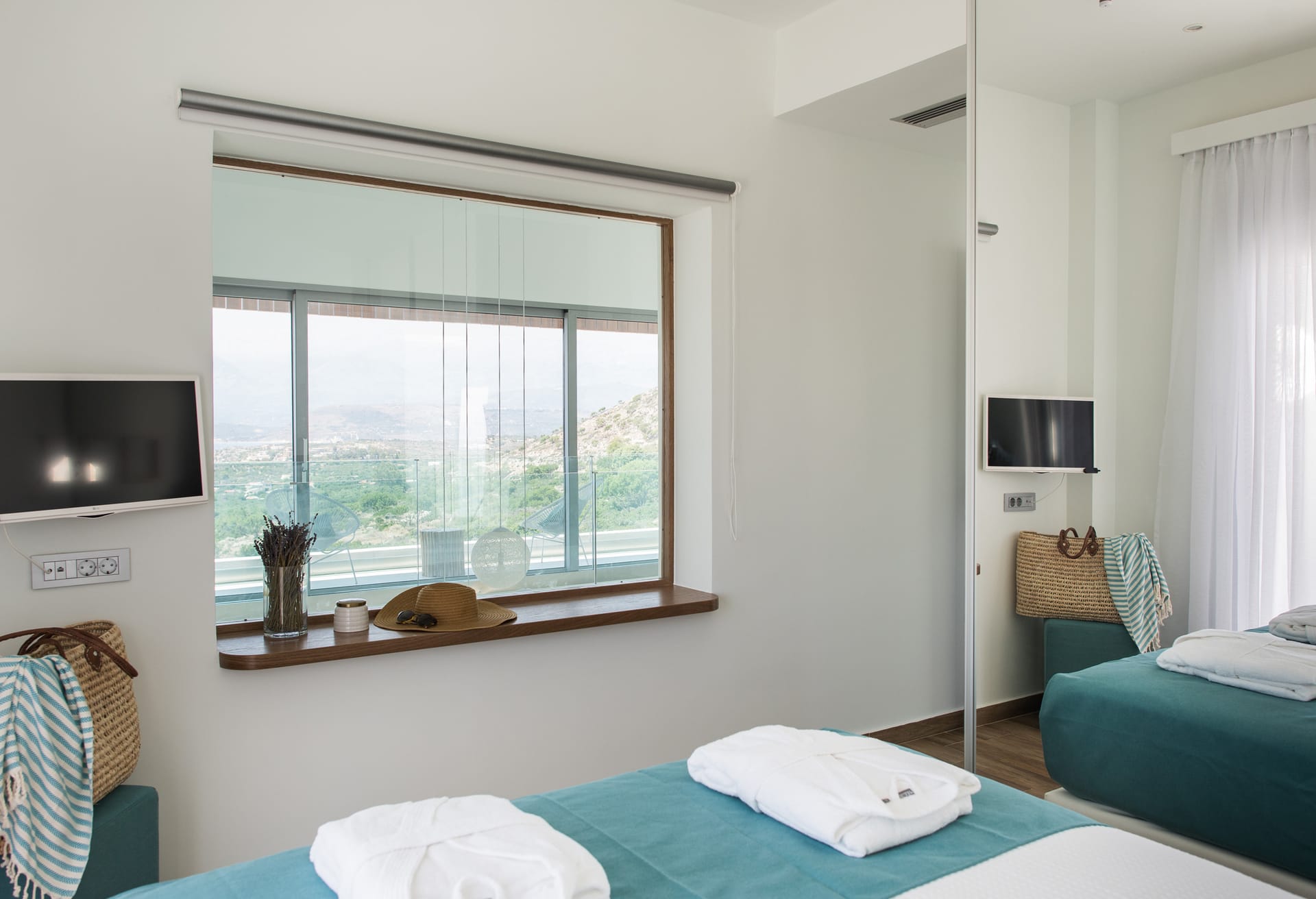 Crete Villa Dalia bathed in natural light and exudes an aura of cool sophistication, this functional haven beckons with its crisp white walls and lofty ceilings, casting a timeless charm complemented by the ever-sparkling sea view. The expansive use of glass throughout captures the calming sea vista, a remedy for urban stress.