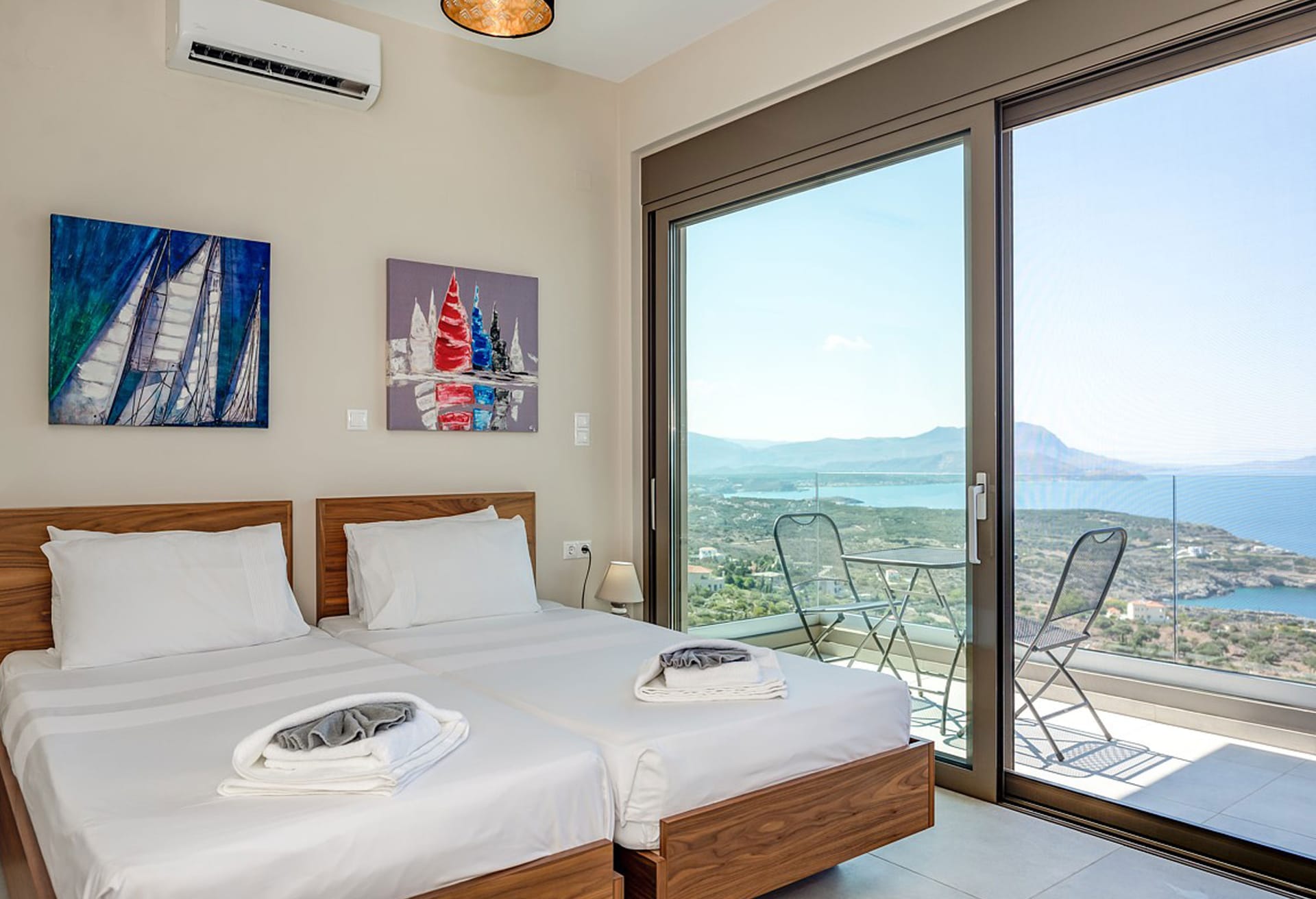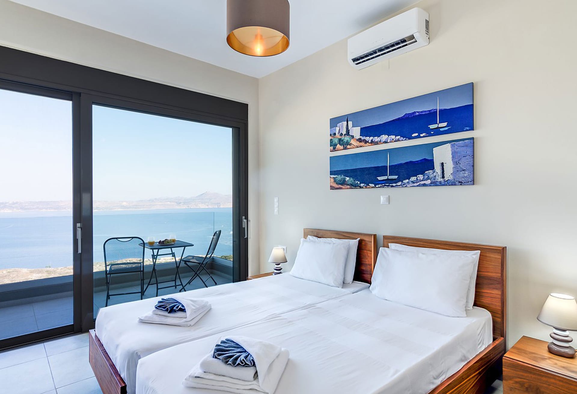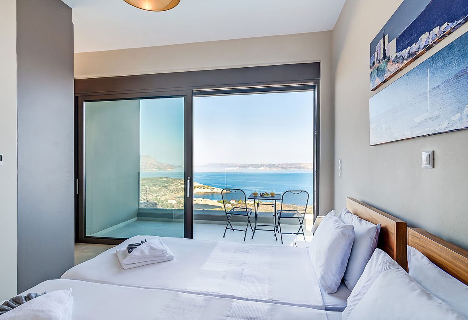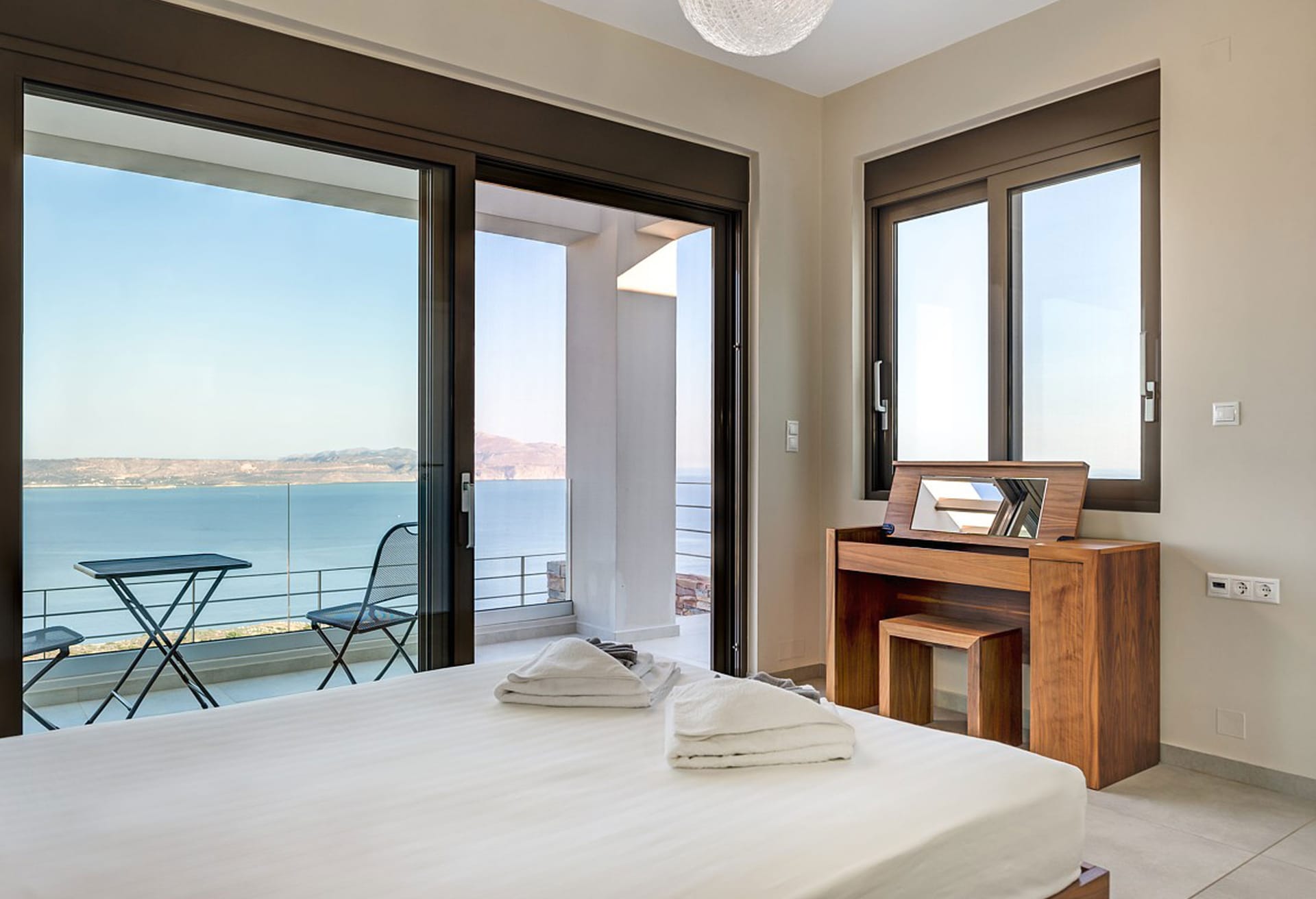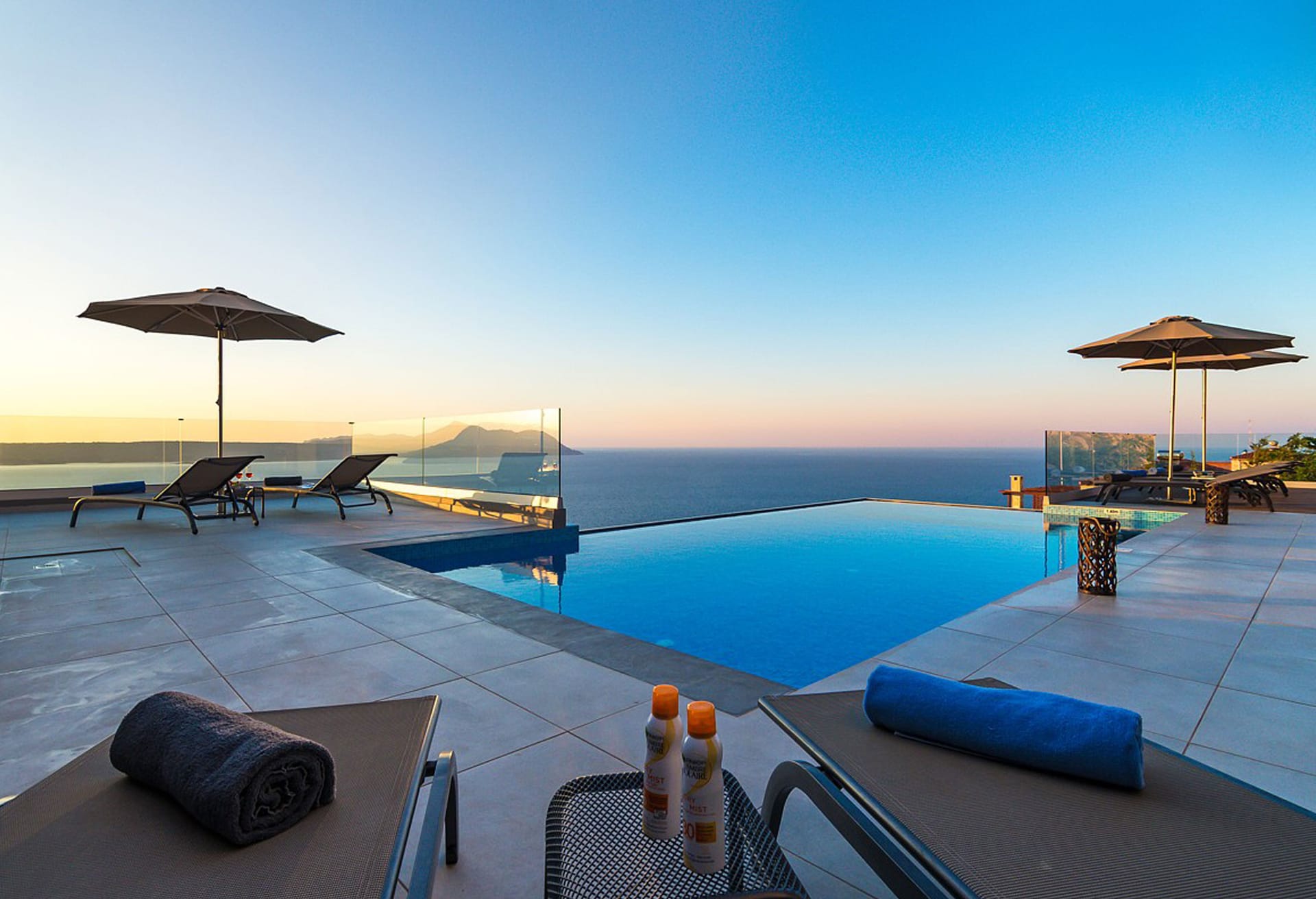Crete Villa Edge ensures comfort with air conditioning, underfloor heating, and heated towel rails in bathrooms. Insect screens and electrically operated roller shutters are featured on all windows. Slippers and towels, including pool towels, are provided for guests.
