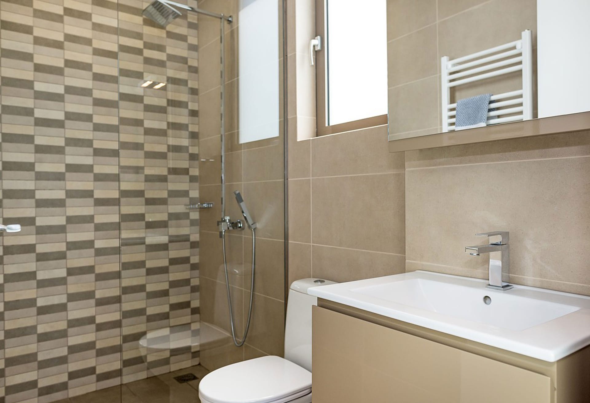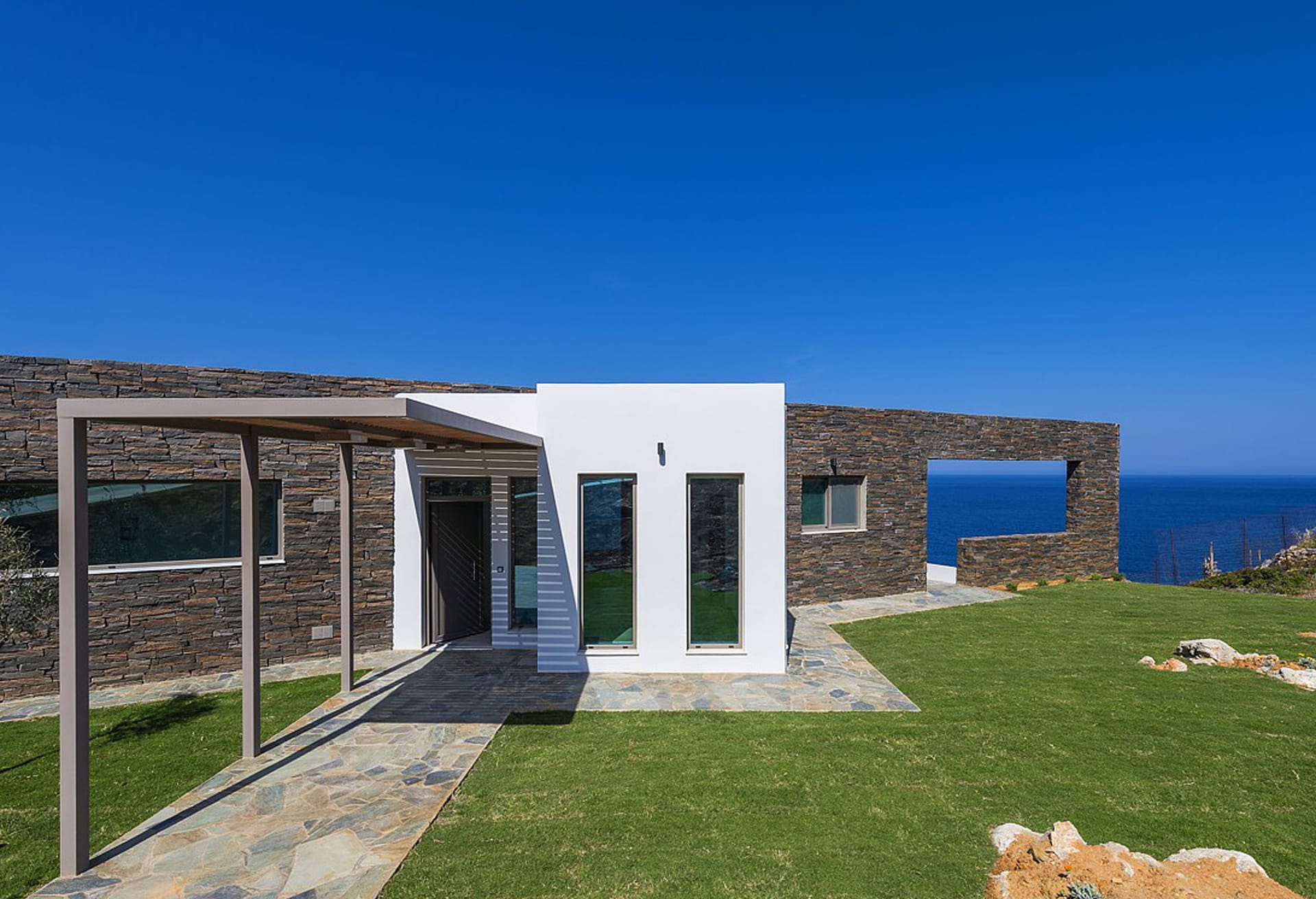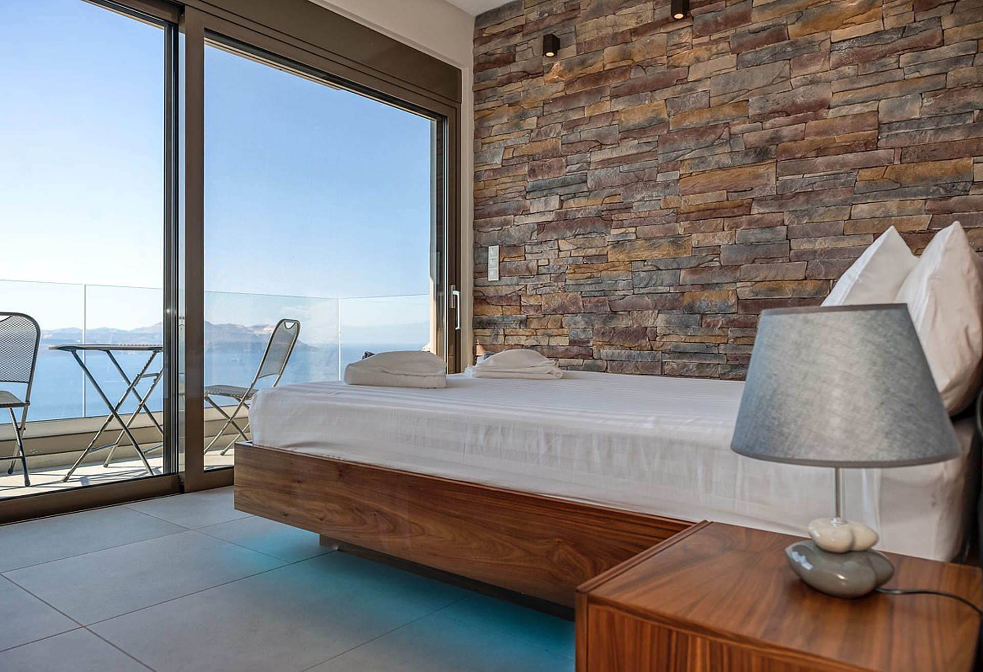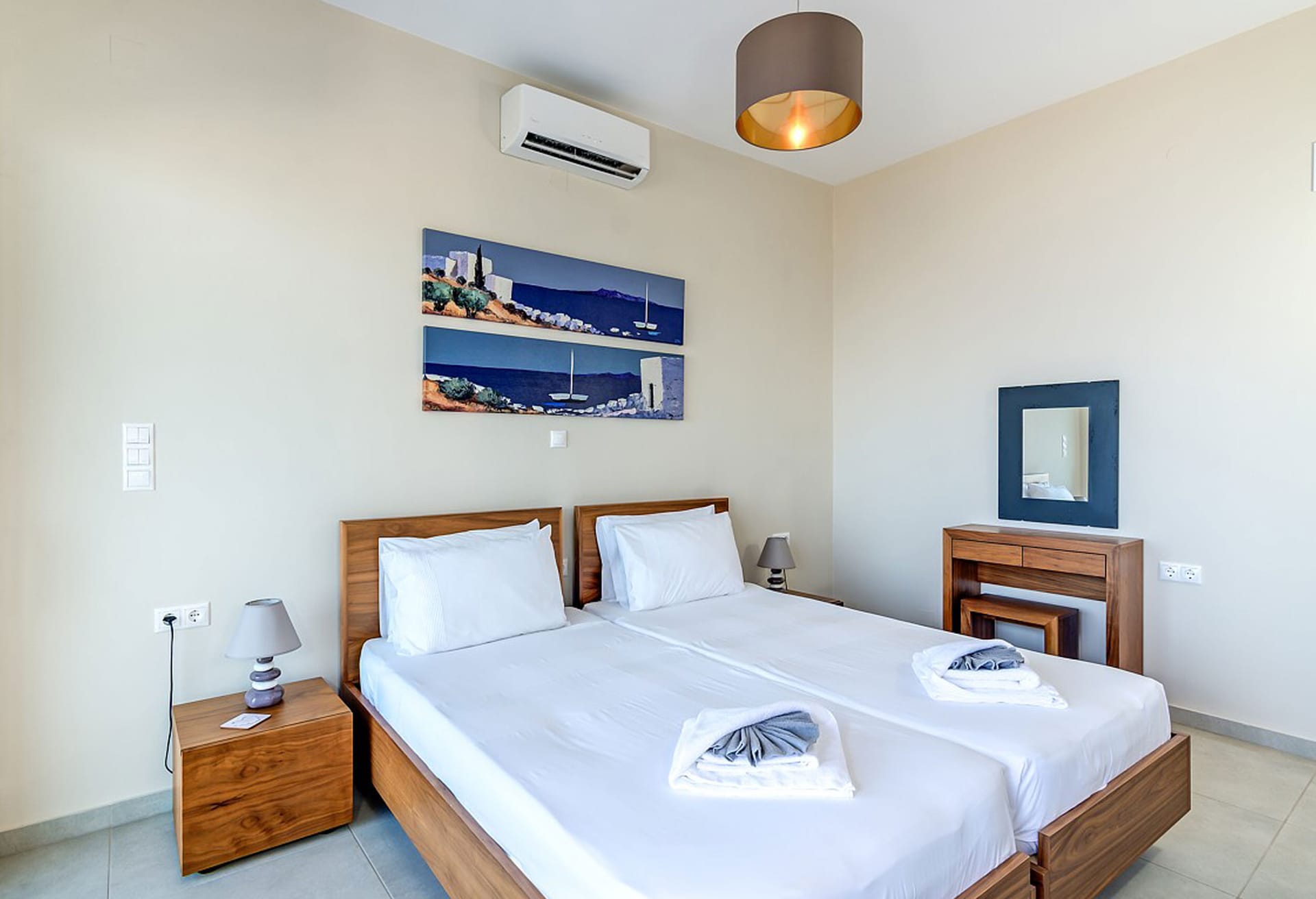 Crete Villa Edge ensures comfort with air conditioning, underfloor heating, and heated towel rails in bathrooms. Insect screens and electrically operated roller shutters are featured on all windows. Slippers and towels, including pool towels, are provided for guests.