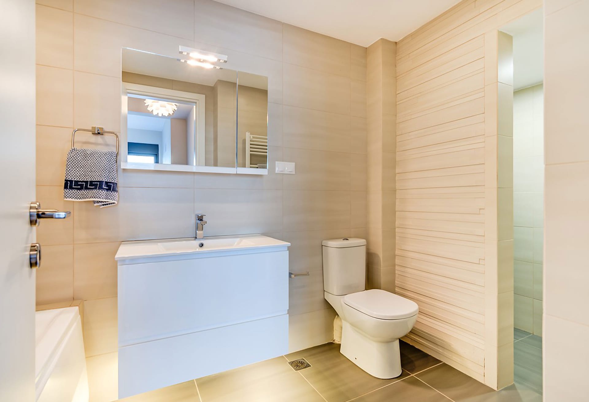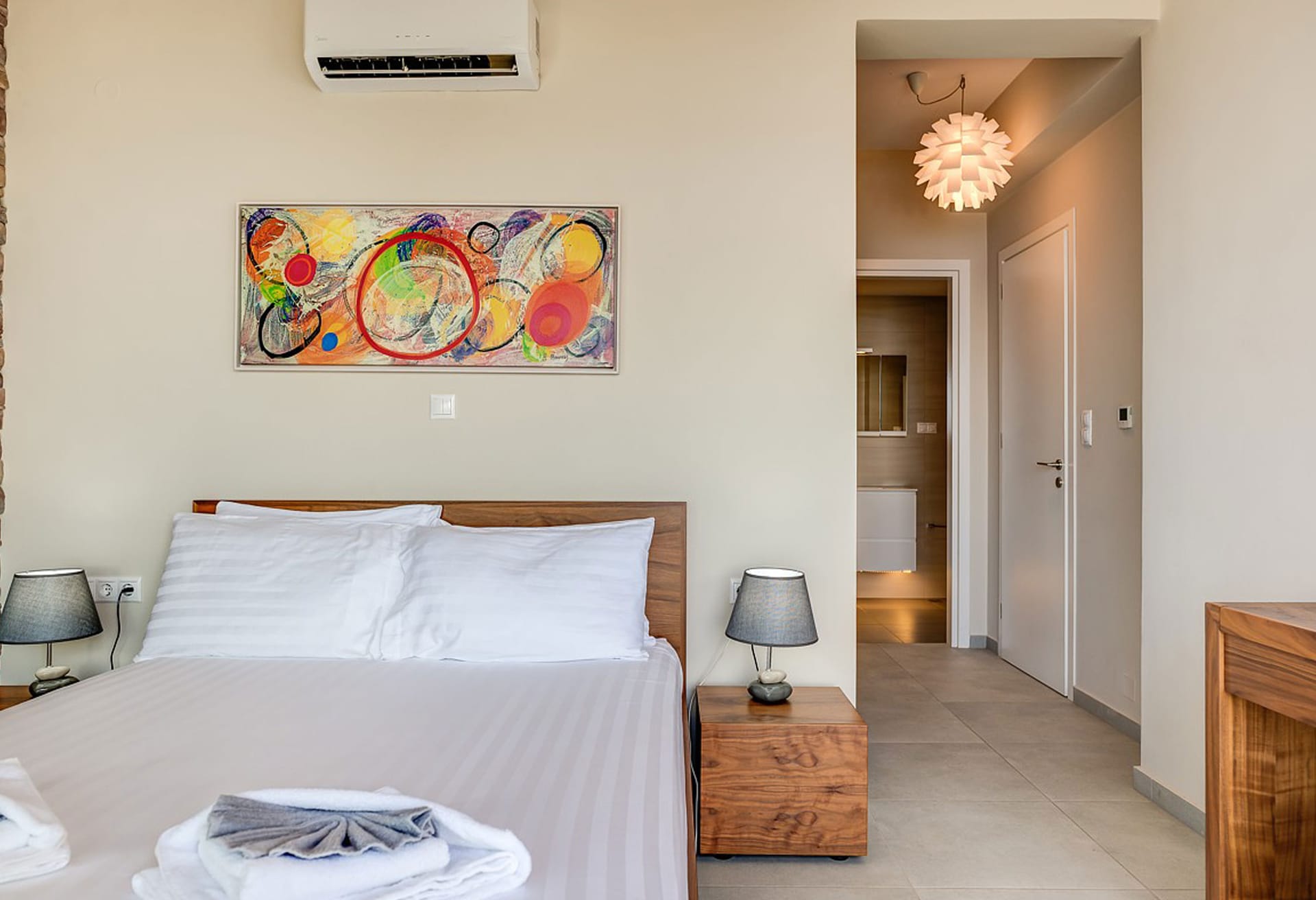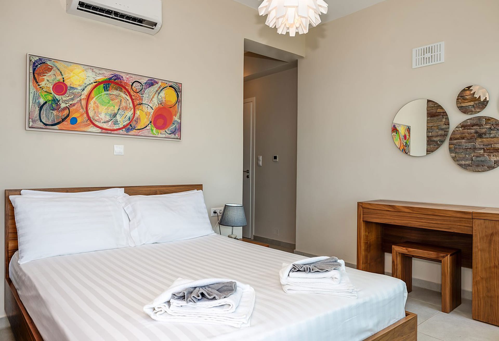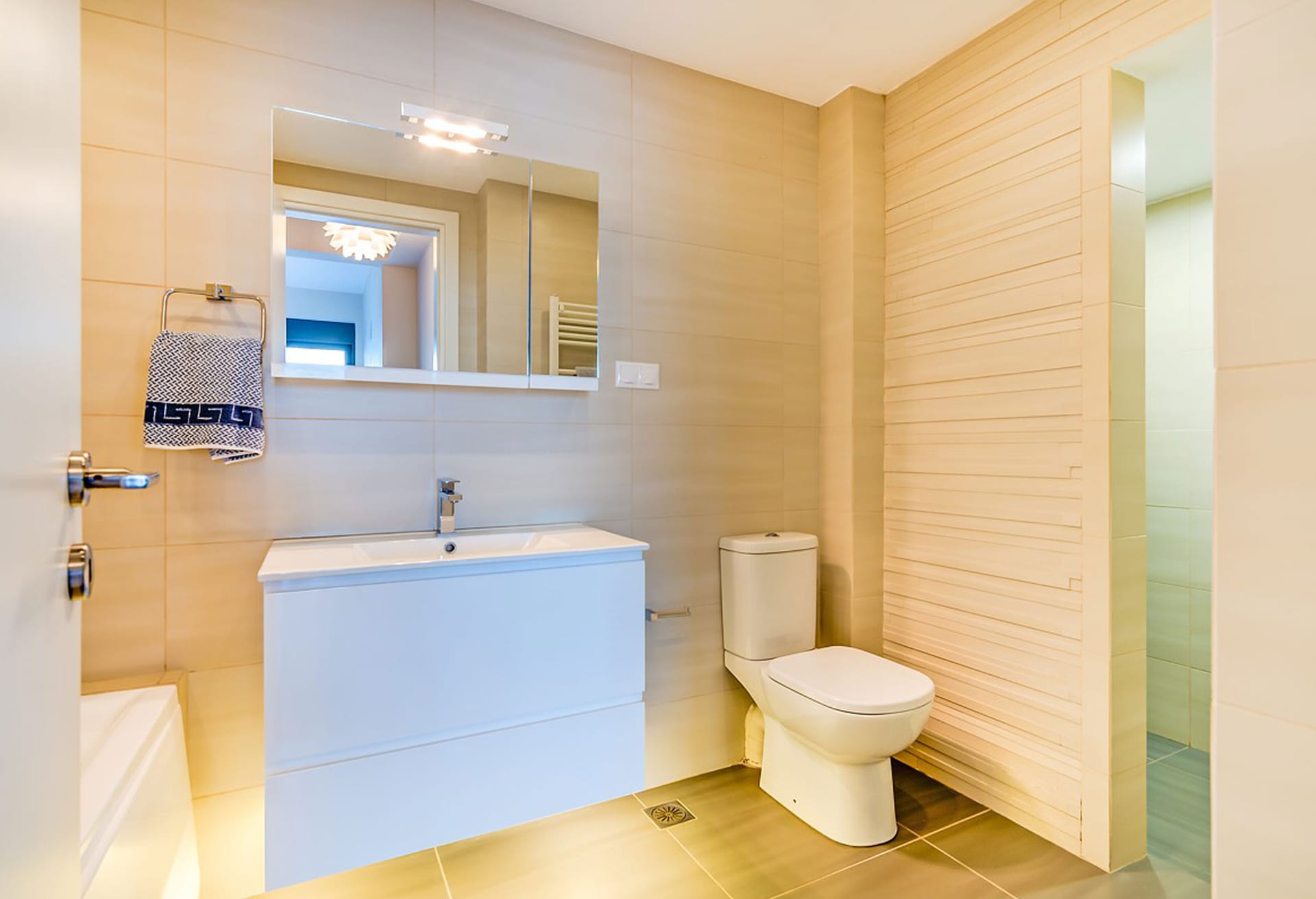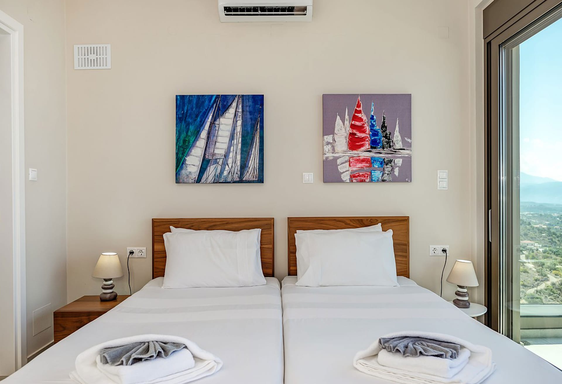 Crete Villa Edge ensures comfort with air conditioning, underfloor heating, and heated towel rails in bathrooms. Insect screens and electrically operated roller shutters are featured on all windows. Slippers and towels, including pool towels, are provided for guests.