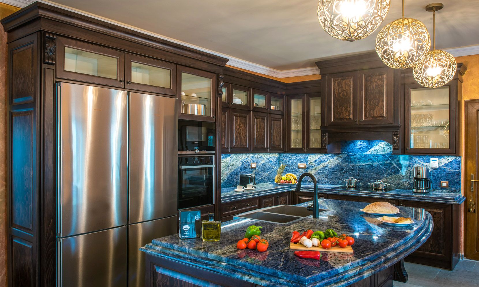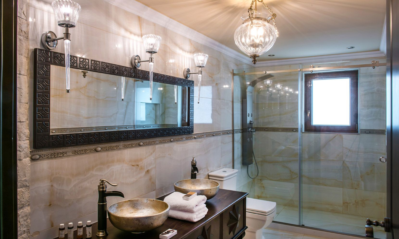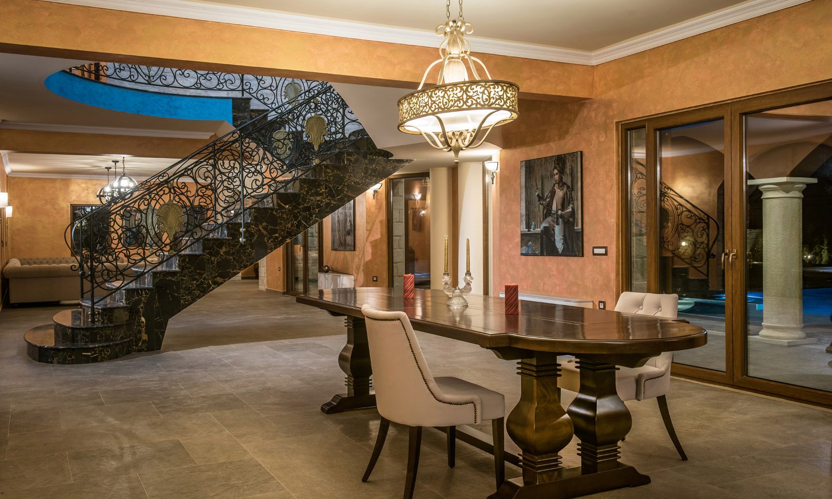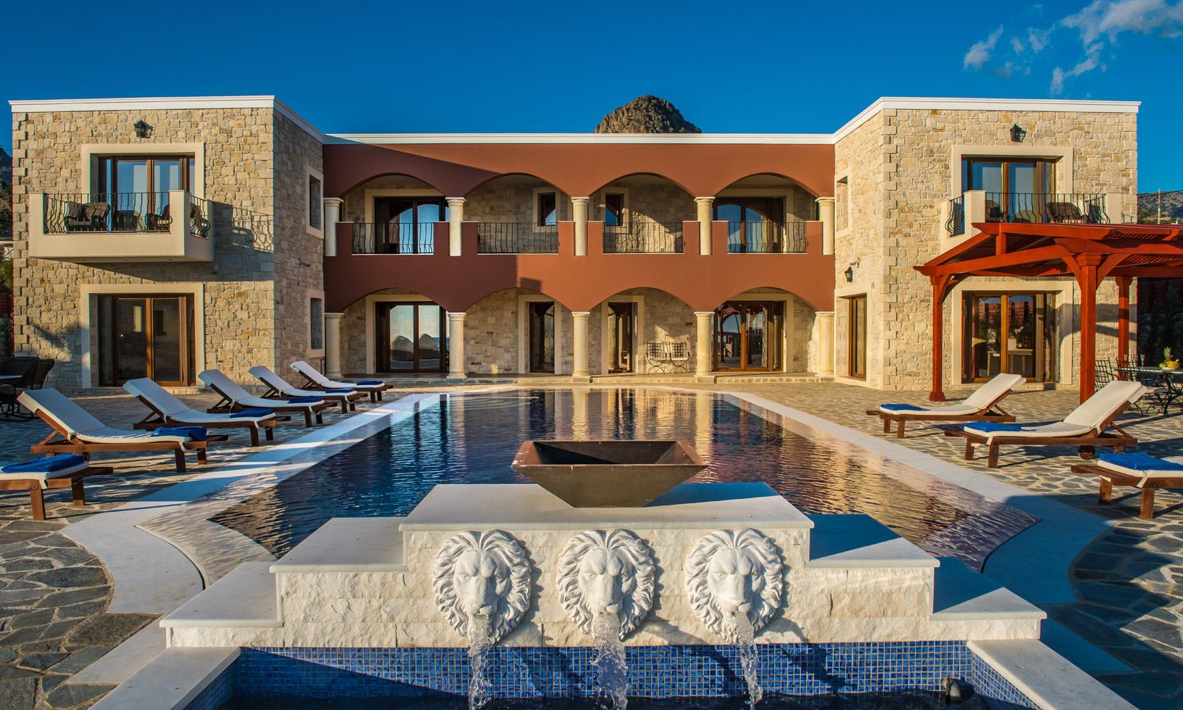 Villa Kalliste is a two-story, seven-bedroom villa with a separate one-bedroom bungalow situated at the edge of an enormous pool. The villa sleeps up to 18 people and has all the amenities you will need for the vacation of a lifetime. The interior of Villa Kalliste is decorated and furnished with select pieces and paintings of prominent Italian artists of the highest caliber.