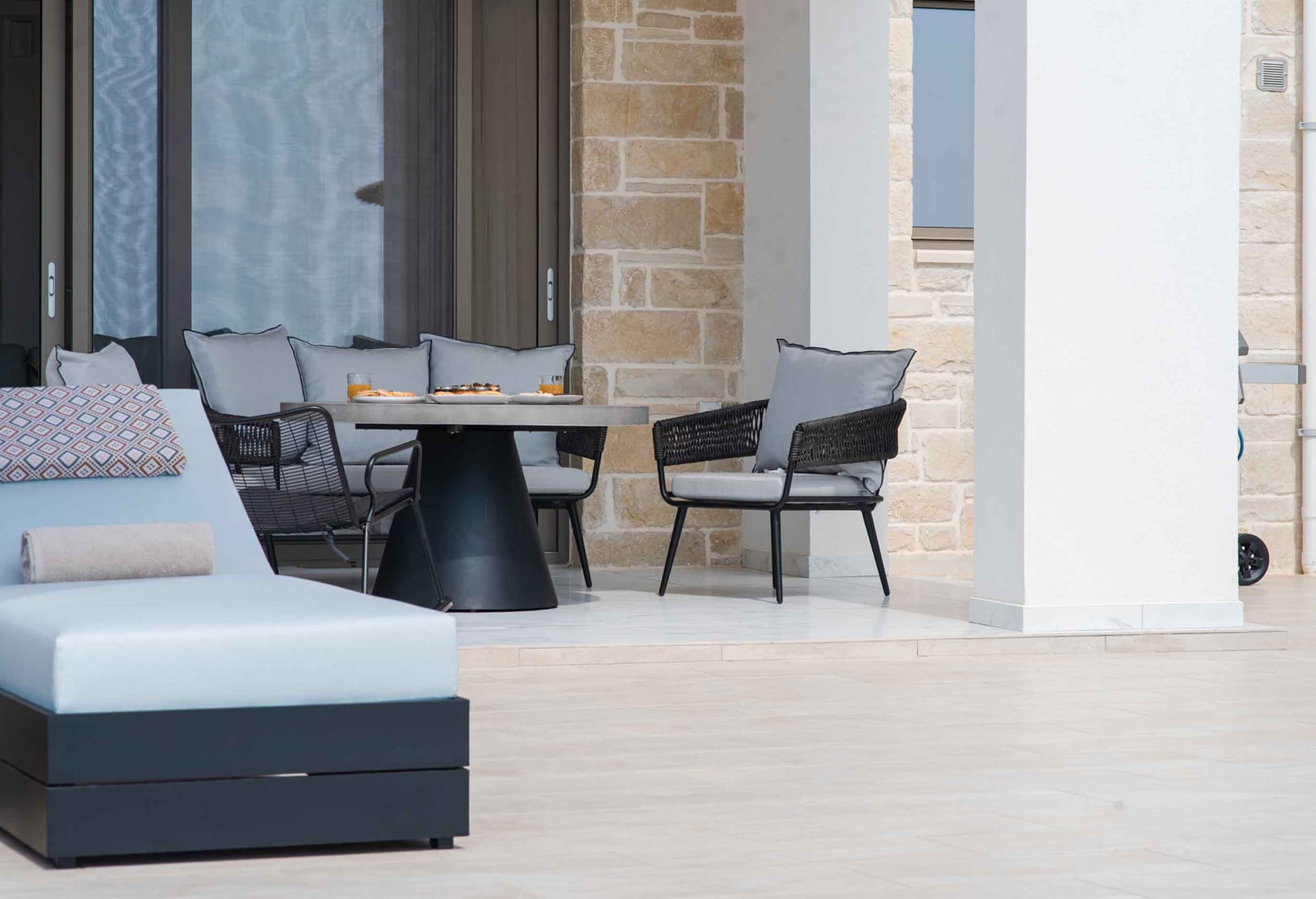 The spacious outdoor area offers panoramic sea views to the early sunrises, offering them beautiful sunsets too. Enjoy the sun and a good book under the sun! Last but not least for lovers of cocktails and drinks you can enjoy one right next to the dining area where you can relax and have some fun moments with your loved ones. Don’t forget that a secure parking area is provided outside the villa.
