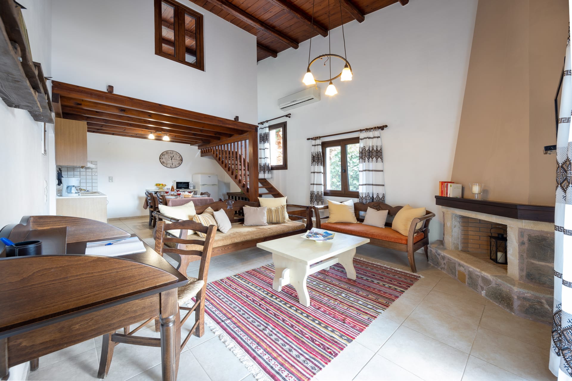 The upper floor offers ultimate relaxation with two bedrooms with gazing sea views, waiting for you to enjoy and kick back after a long day wandering around the area. Actea Seaview Villa is the ideal retreat to relax and refresh yourself through your stay a base from which to explore, be part of the ultimate vacation experience and create lifelong memories. Entering on the lower floor you can find a large living area with a Smart satellite TV with a Playstation 5 console, board games, a bedroom for a queen size bed, a fully equipped kitchen and a communal bathroom with shower. Last but not least you will find a laundry room with a washer-dryer machine.