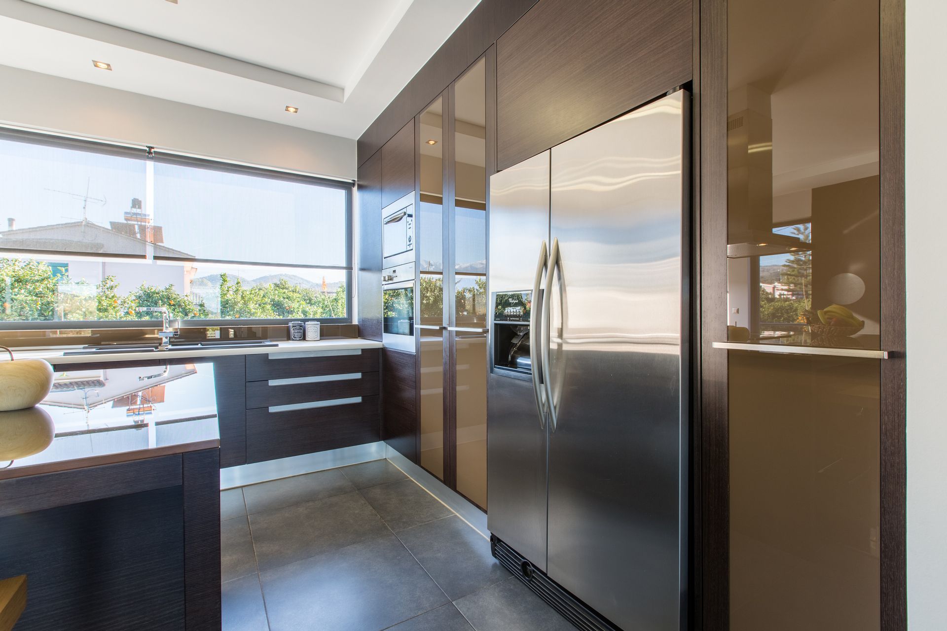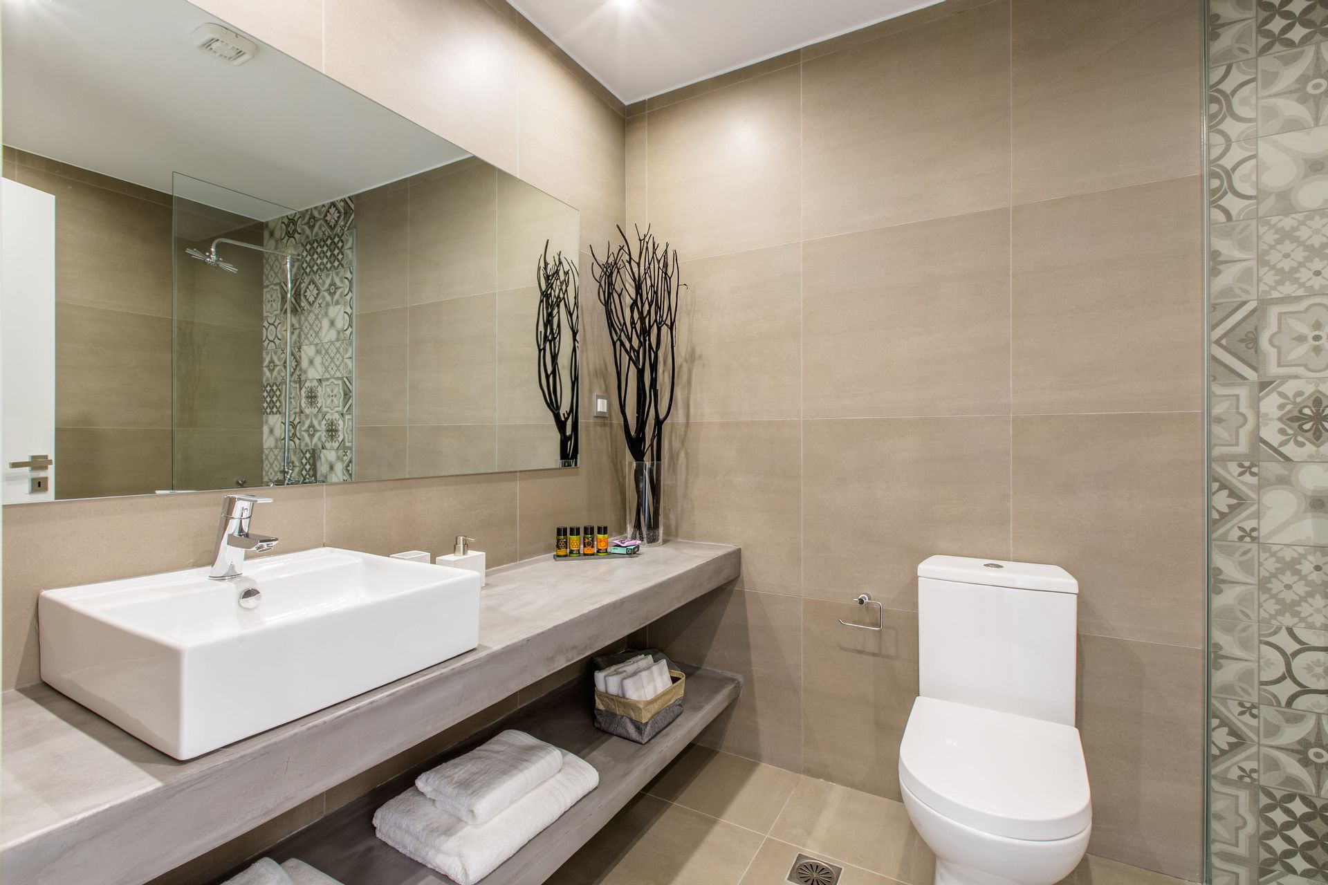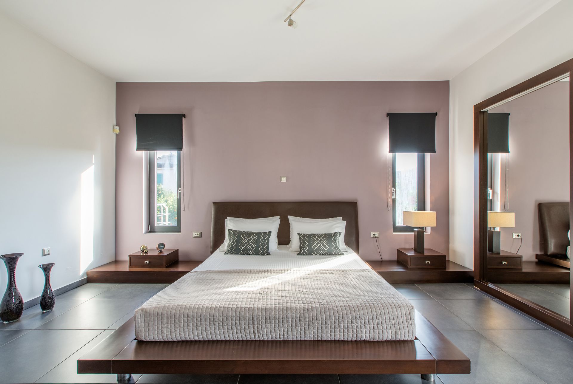 Villa Magda consists of six bedrooms, with double-sized beds and their own smart TV, and five bathrooms. On the first level, there are three bedrooms with en-suite bathrooms and at the second level, there are the rest three bedrooms and two bathrooms. In the same level, there is also the living room with a flat 50’’ satellite TV and a large corner sofa, where 2 more persons can sleep, the dining room with seating for 8 persons and the fully equipped kitchen with an extra dining table and a bar with stools where 8 more persons can sit. In the kitchen, a guest can find a fridge-refrigerator, oven, dishwasher, coffee machine, toaster, kettle, microwave, dishes & utensils. This level has direct access to the pool and the main terrace where you can enjoy sunbathing in the comfortable sun loungers.