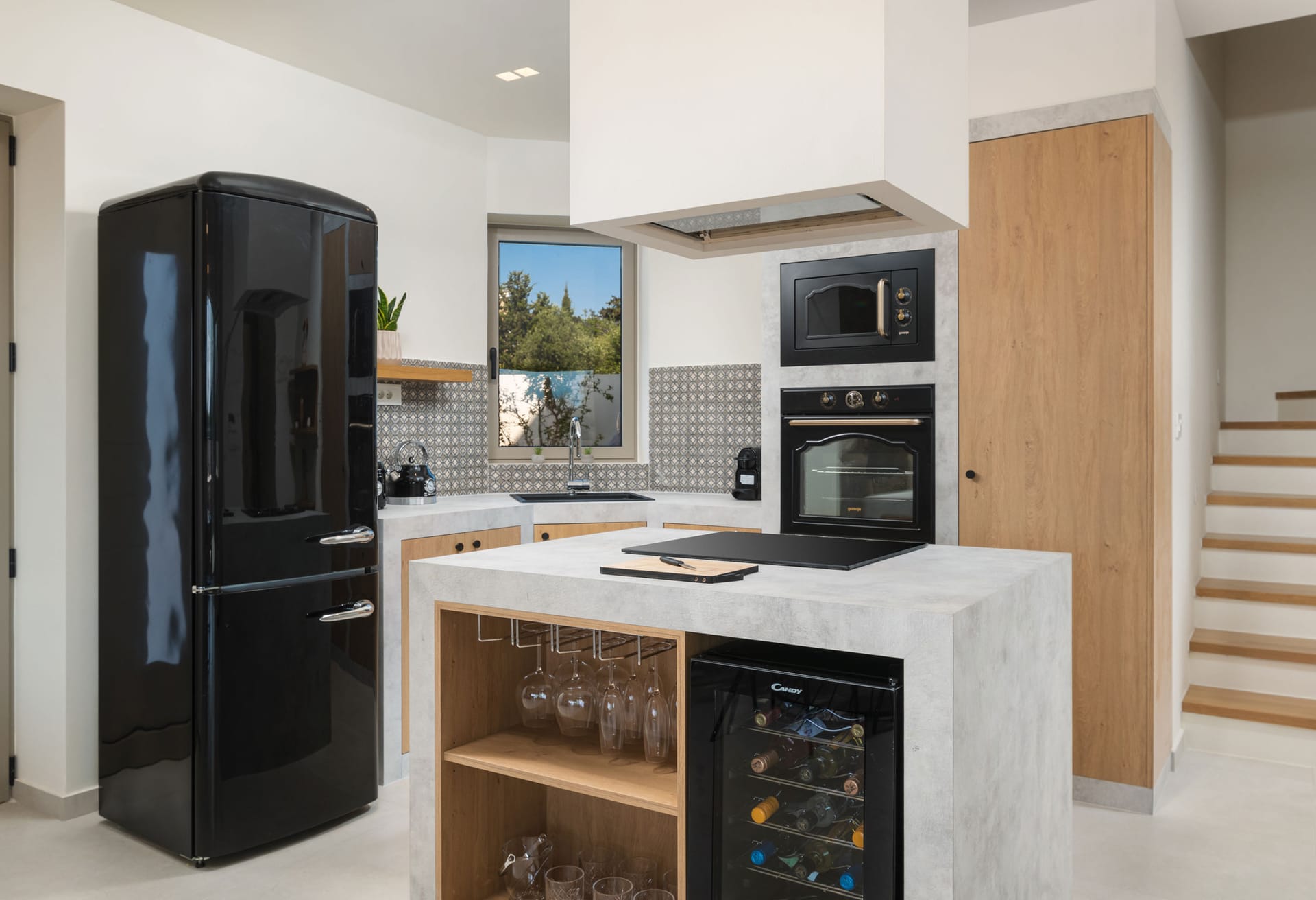 On the ground floor of the villa, you will find a fully equipped kitchen for the preparation of any kind of meal. On the same floor there are 2 bedrooms with double beds. On the second floor, you will find 2 more bedrooms – one with a double bed and the other with two single beds. A practical washing and ironing area adds to the comfort of your stay. In the Roof Garden, a comfortable sitting area invites you to relax and the Jacuzzi invites you to enjoy rejuvenating moments gazing at the breathtaking view of the mountains and the enchanting blue of the sea.