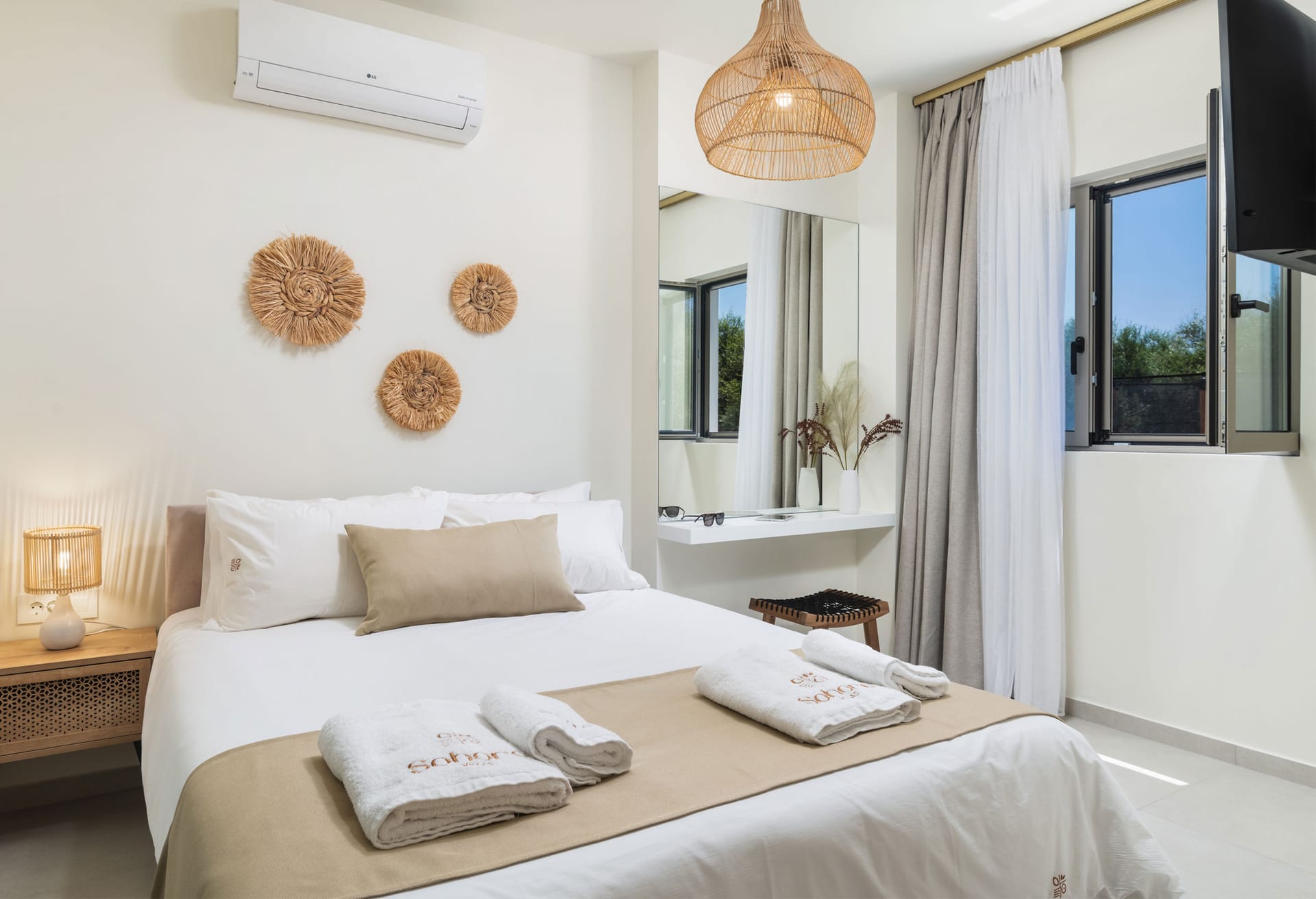 With stunning views of nature from every corner, this luxurious two-storey accommodation is able to accommodate up to 8 people in its 4 bedrooms. Each bedroom offers an en-suite bathroom and has been carefully designed to provide both an aesthetically beautiful environment and a calm and restful retreat, enhanced by the comfort of the anatomical mattresses from the renowned company Cocomat.