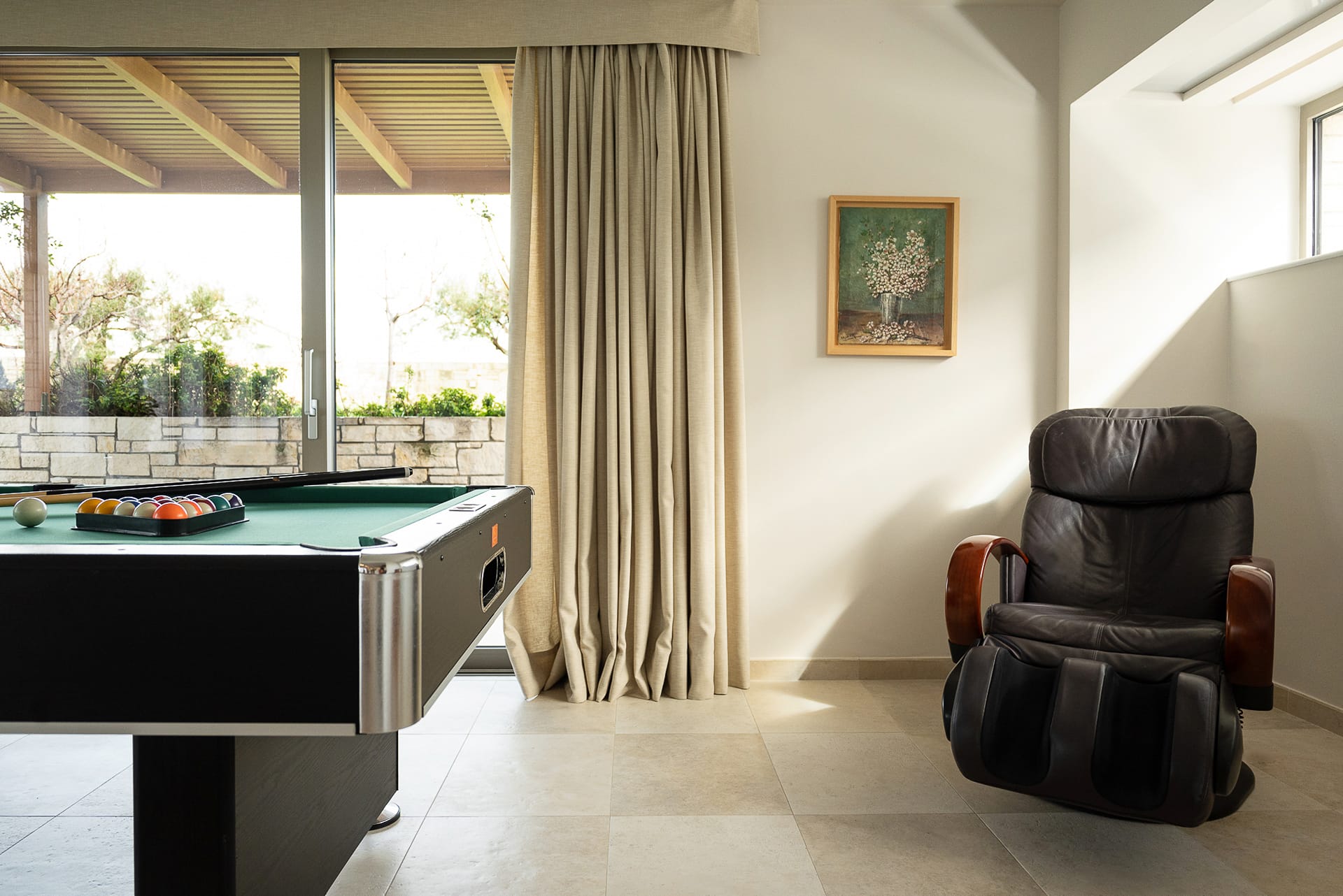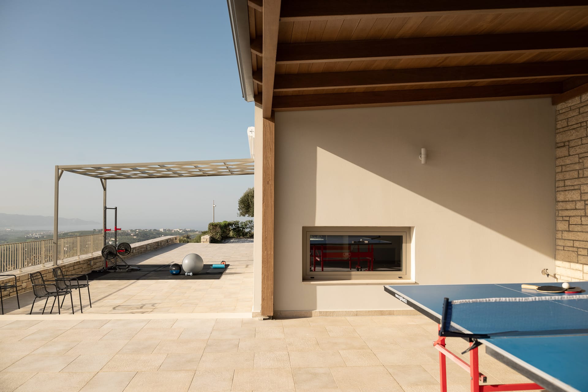 You can play table tennis and pool (billiards) at the villa. If you would like to explore the area, snorkeling, cycling, and fishing are possible in the surroundings, and Crete Villa Nikita can arrange a bicycle rental service. There is also the possibility of using a cellar for wine tasting. The outdoor space offers a gym area with free weights, yoga mats, and an exercise bicycle.