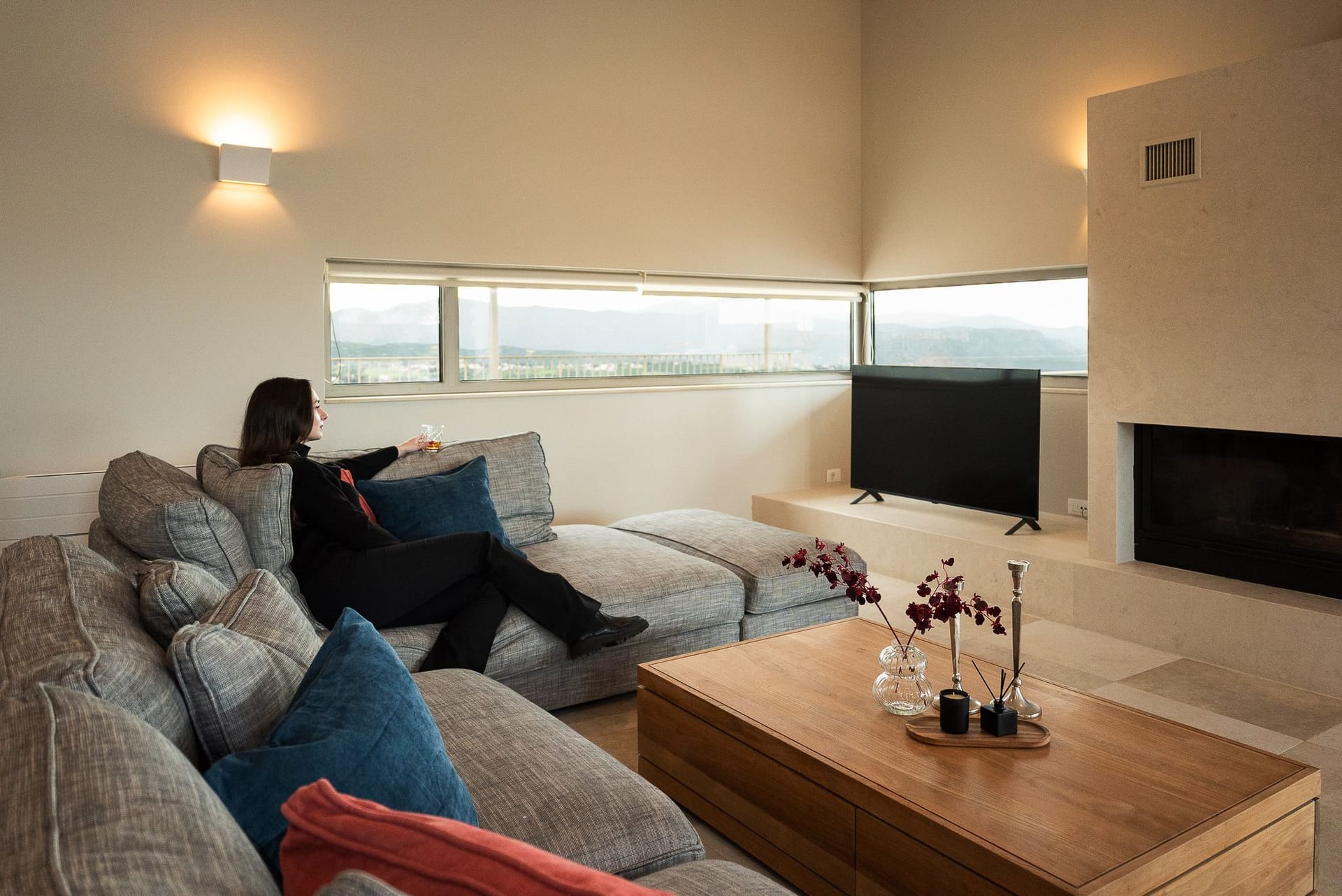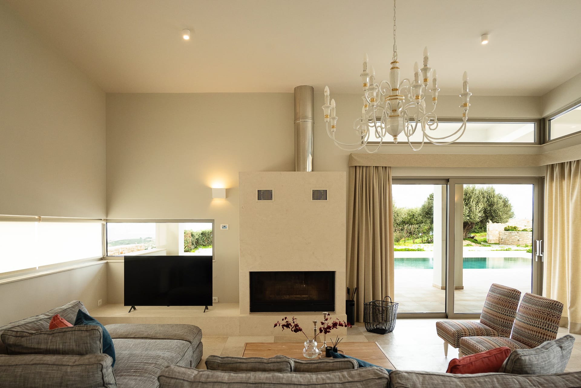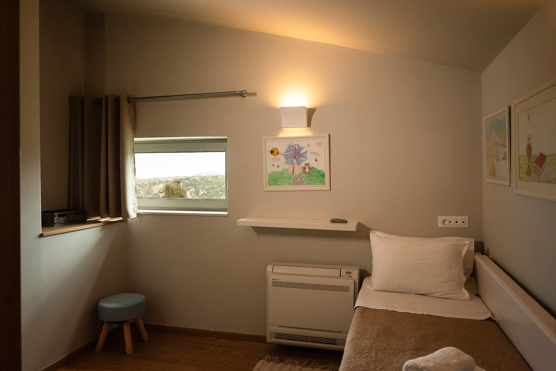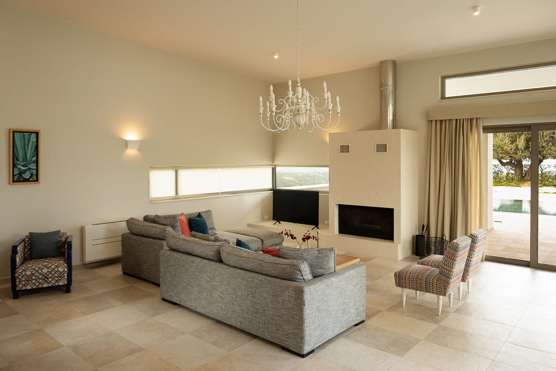 The Crete Villa Nikita with a terrace and sea views has 5 bedrooms, 2 living rooms, two 55’ flat-screen TVs, an equipped kitchen with a dishwasher and an oven, and 4 bathrooms. The parquet floors, fireplace, and peaceful vibe add to the ambiance of the room. This villa is allergy-free and non-smoking.