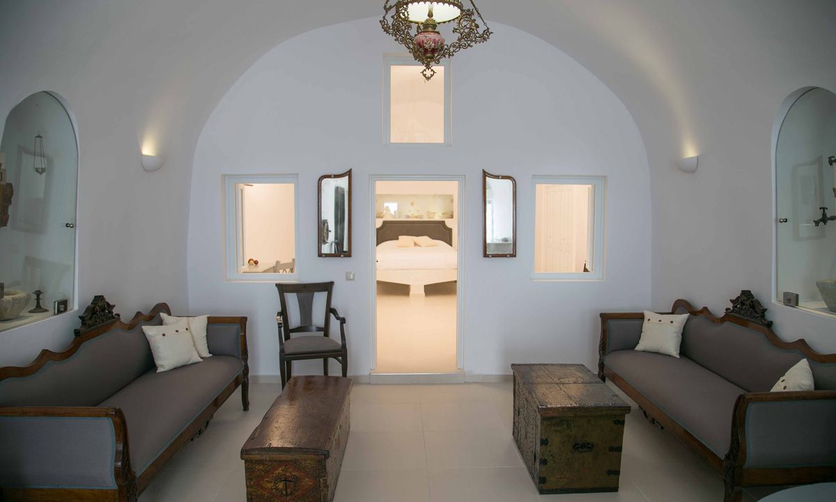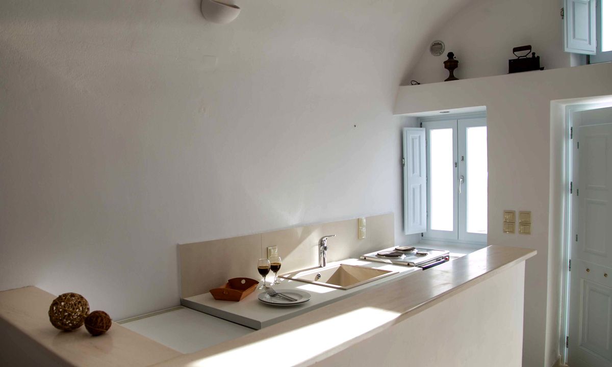 Aleris is a Traditional Cave House located within the heart of Firostefani village, only 1 km away from Fira the capital of Santorini overlooking the Volcano and the Deep Blue Sea of Aegean . Fully renovated with comfort and style, offering a perfect blend of traditional Cycladic architecture with modern facilities and luxuries. Caved into the rock & comprised of one master king size bedroom , one bathroom with shower, spacious living & sitting area & a fully equipped kitchen with an enormous private terrace gaze towards the endless horizon inviting you to embark on a quintessential journey on the world's most romantic island.