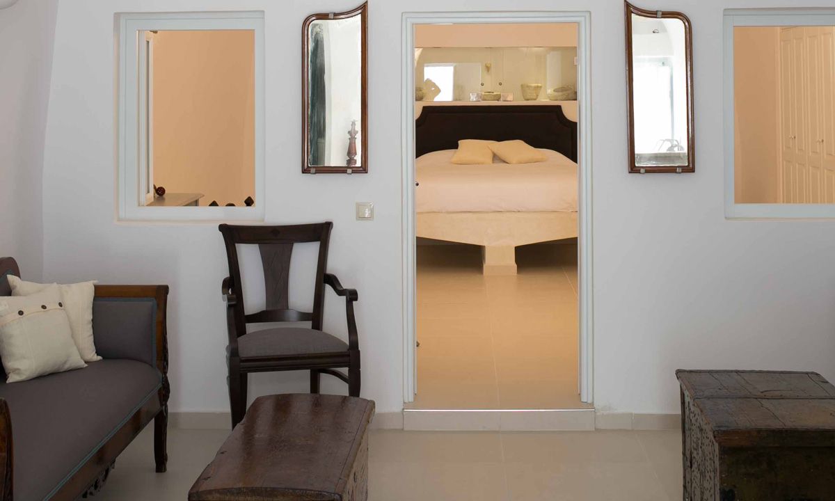 Villa Aleris, is a fully renovated house, built in one flat level with only few steps, a large courtyard and a specious terrace overlooking the beauty of Aegean Sea & the famous Volcano. The House consists of one master bedroom with modern facilities, an ultra-comfy sitting area with direct access to the bathroom area and to the private terrace. The spacious living room can accommodate one more person . A fully equipped kitchen provides you with all services & facilities so you can enjoy your breakfast or candle light dinners at the privacy of your House. A spacious terrace and a courtyard with a large table, chairs and sun loungers invites you to embark on a quintessential journey on the world's most romantic island.