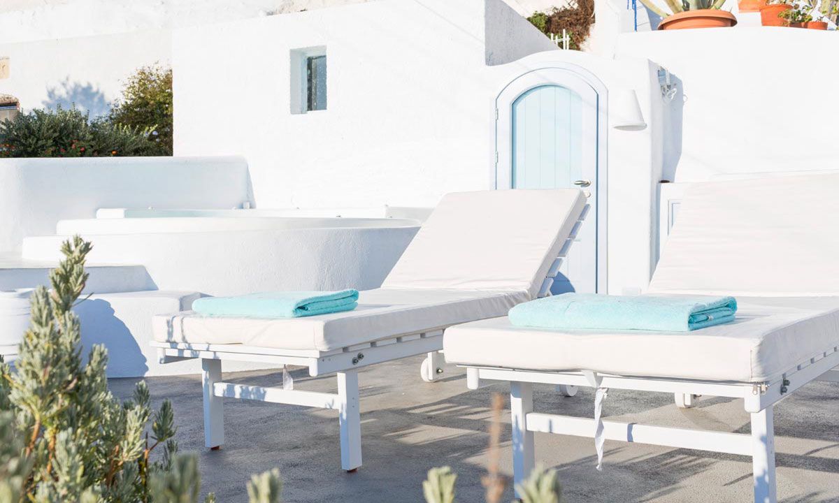 The traditional, cave style Santorini Villa Alexa Two, features a spacious living room area highlighted by local art, one master bedroom with king size bed and a second smaller bedroom with two single beds, each with attached bathroom with shower and dressing area, entertainment system, fully equipped kitchen, a spacious private panoramic veranda and your very own outdoor heated Jacuzzi on the terrace overlooking the volcano, Aegean sea and sunset! It can accommodate up to five guests with one on sofa. Airy open plan. Approximately 70sqm.