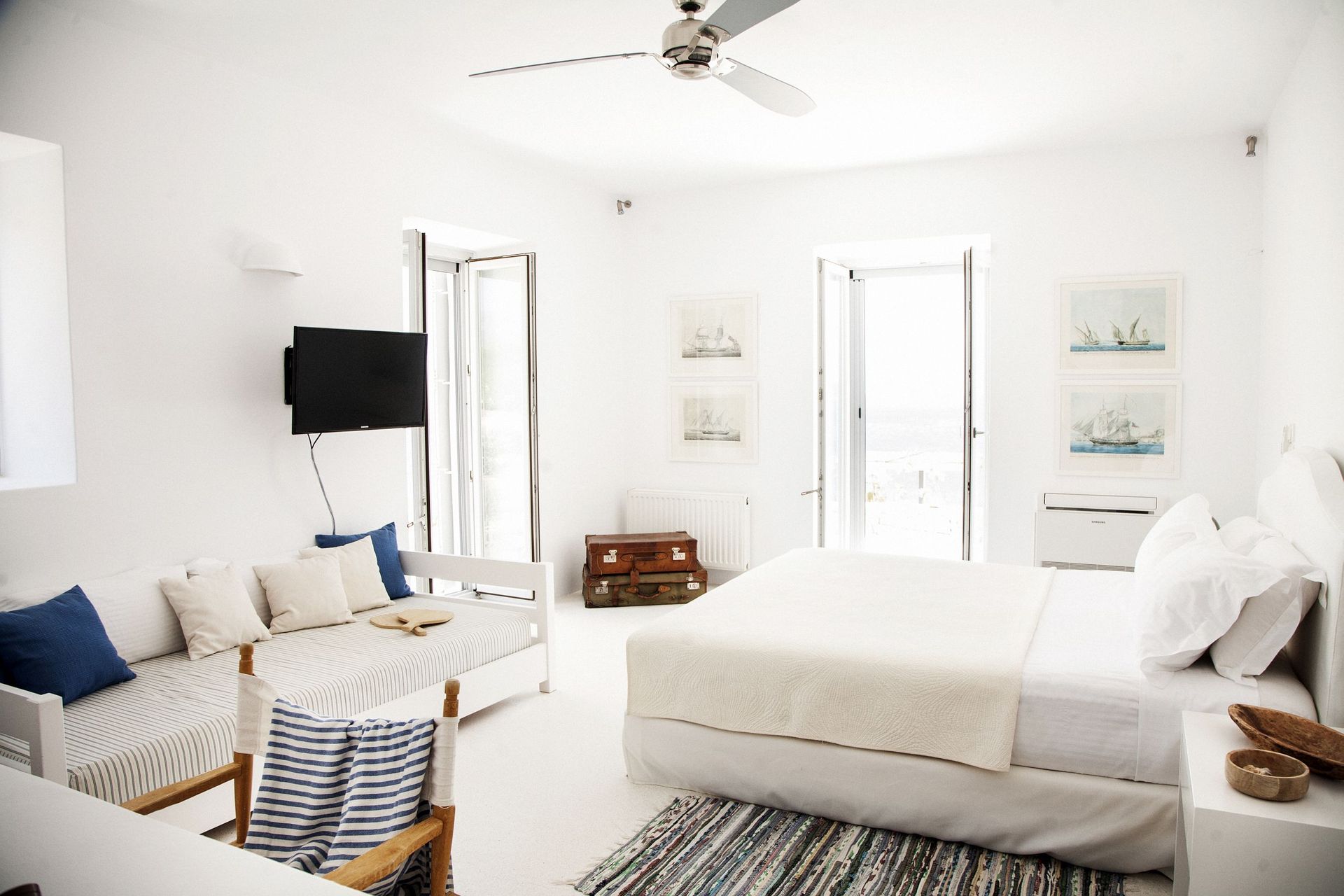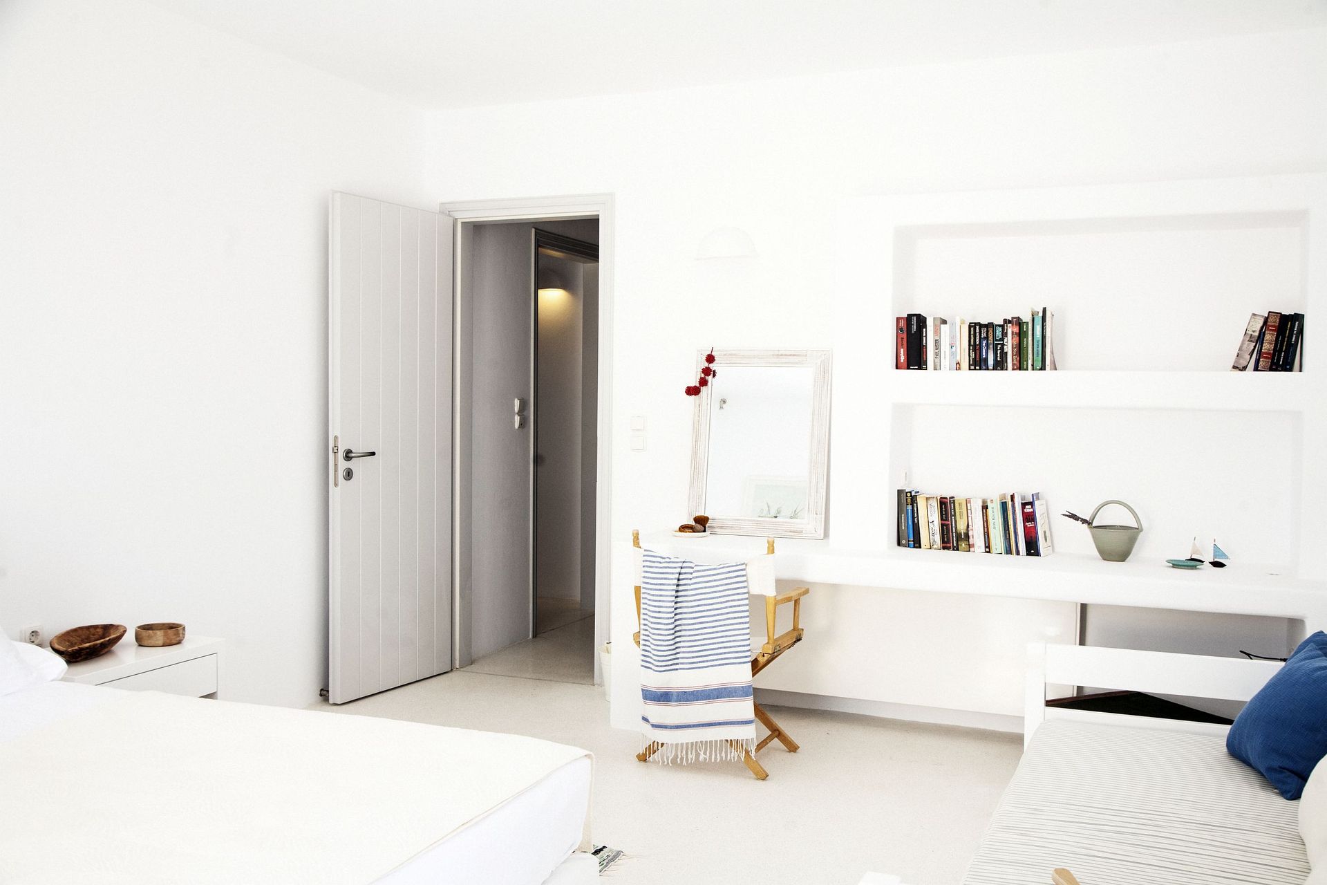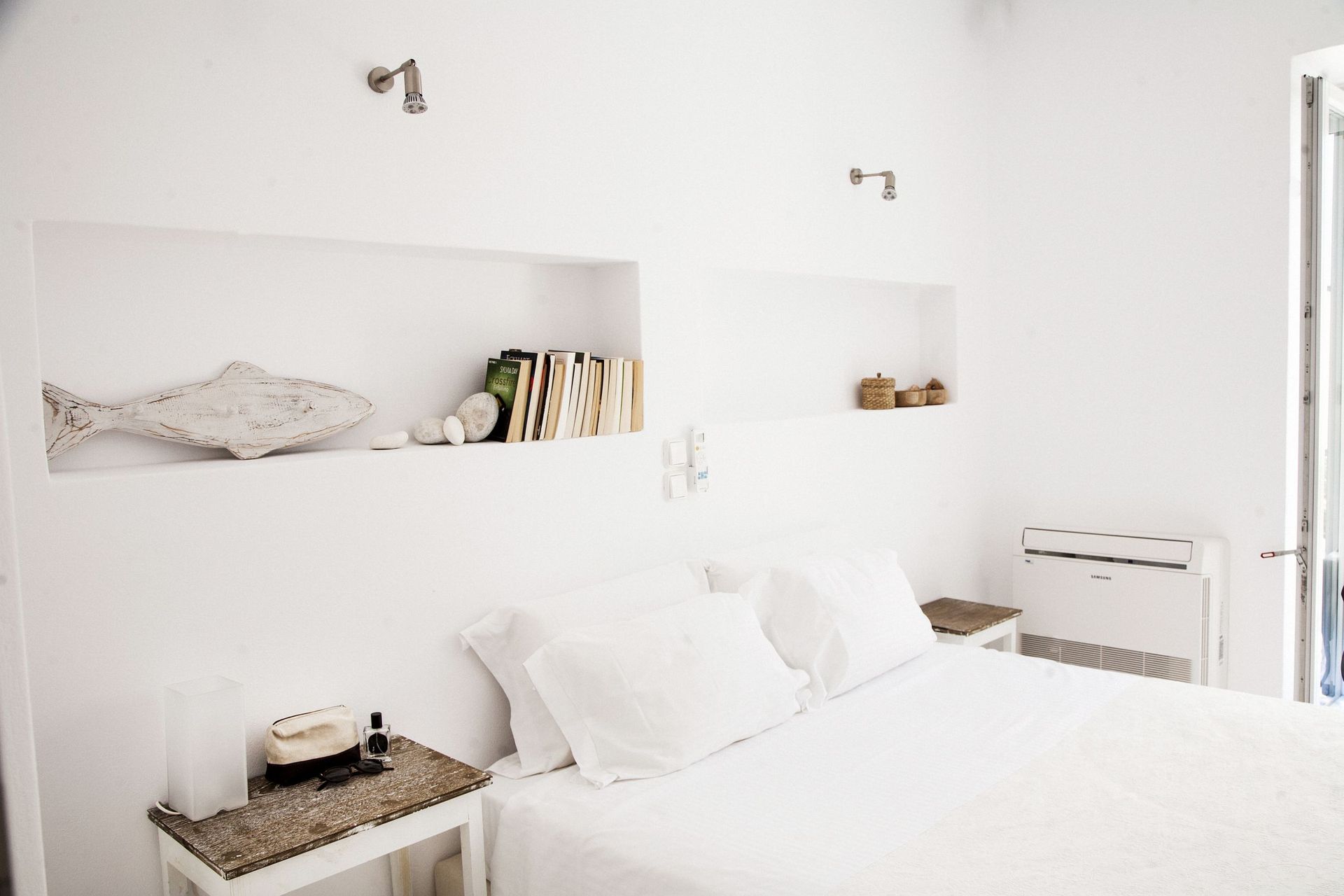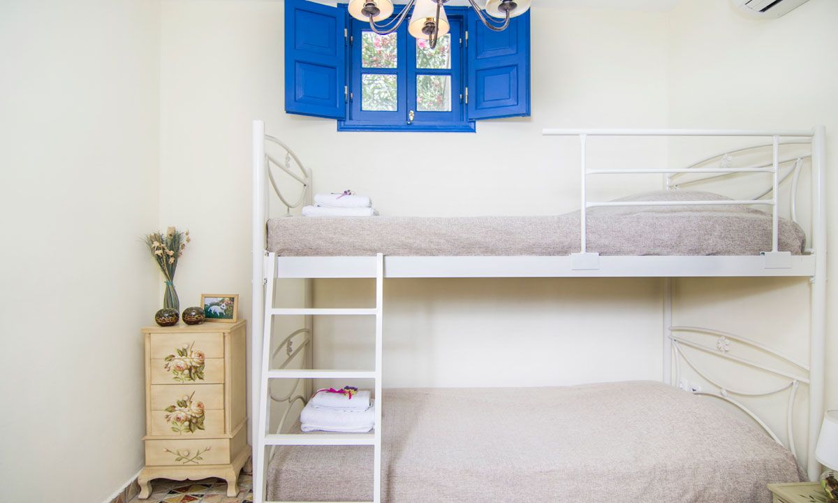 Inside there are 4 bedrooms (2 double king size bed and 1 bunk bed at lower level plus 1 king size bed at the upper level loft, which is separate from the others, with its own bath & living room). All bedrooms have wardrobes and air-conditioning. We provide you eco-friendly mattresses & upper bedclothes, as well as feathered pillows. Also, in case that you needed, there are a baby cot and an extra single folding camp bed.