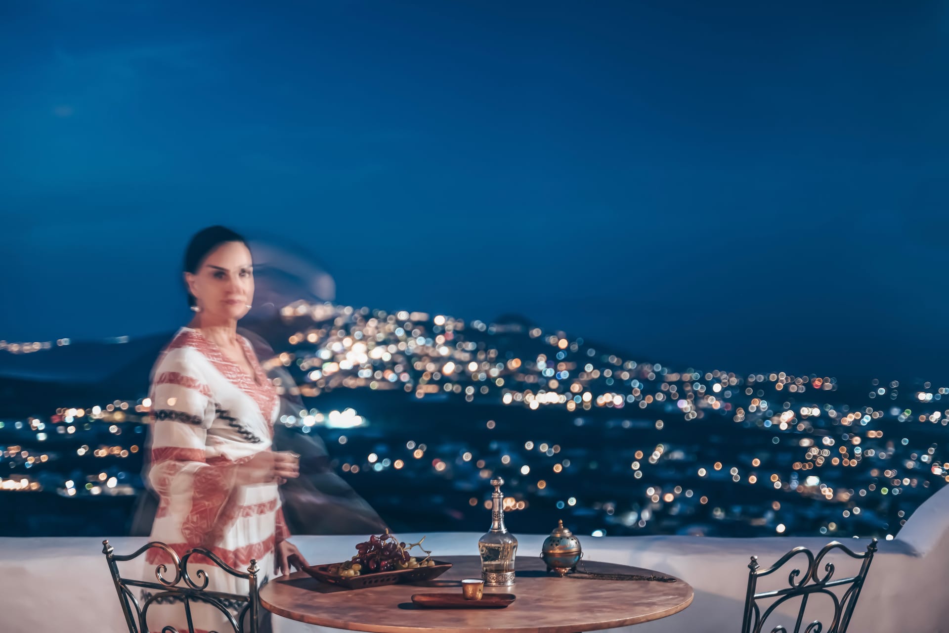 The grand master bedroom, adorned with a bronze double bed and noble handcrafted furnishings, offers a luxurious retreat. Its private copper bath, a symbol of opulence and heritage, provides moments of unparalleled relaxation while gazing upon panoramic views of the island. Two charming mezzanines, once used for food storage, now offer cozy sleeping quarters, adding to the villa's allure.