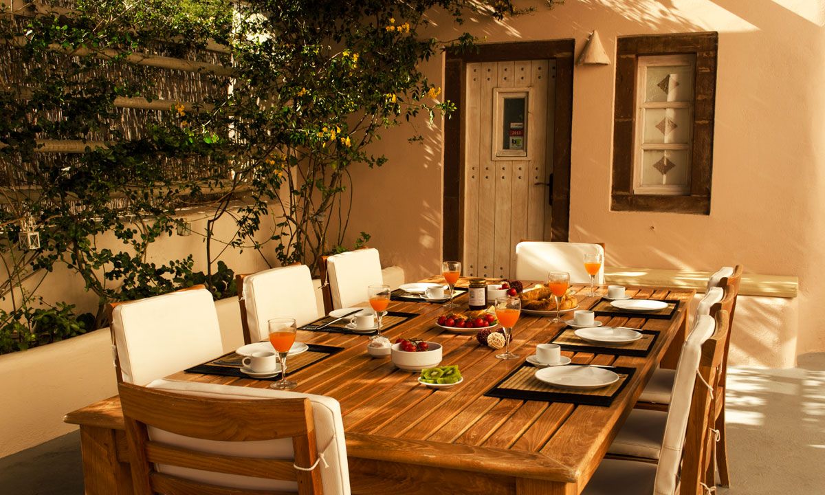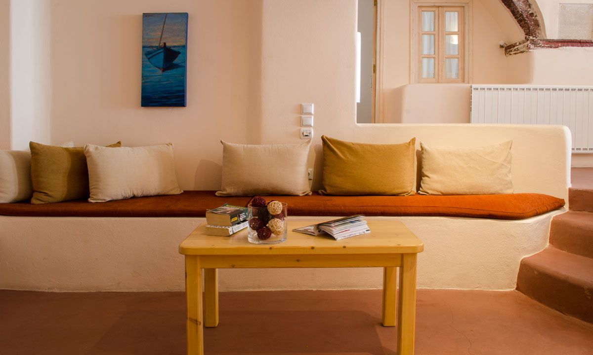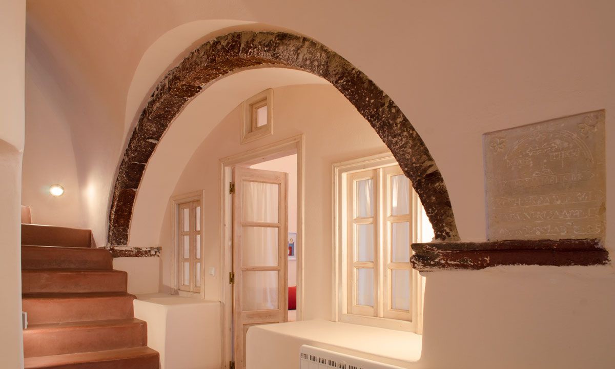 Villa Chryseis may not benefit from direct views over the caldera but instead offer the unique experience of stay in what was originally a traditional Santorinian winery. Built in 1857 and operated as a canava (winery), this old Santorini wine distillery produced traditional sun-dried wine up till the 1980’s. In 2007, the canava was sensitively renovated and was skillfully turned into Villa Chryseis, a brilliant blend of its traditional canava architectural originality with sophisticated luxury influences & modern facilities. With all the amenities of a first class hotel and the intimacy of a beautiful home, the villa reveals a warm & elegant ambience through a rich blend of soft earth nuances on its decoration.