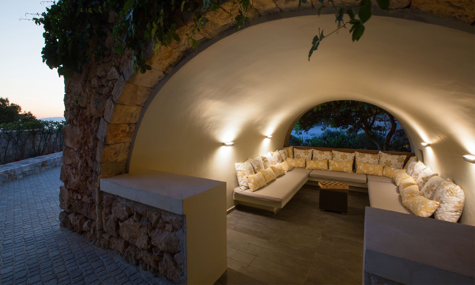 The local style was respected while international engineering standards were used, incorporating state of the art infrastructures. White “Dionysos” marble was used for flooring both indoors and on the terraces.